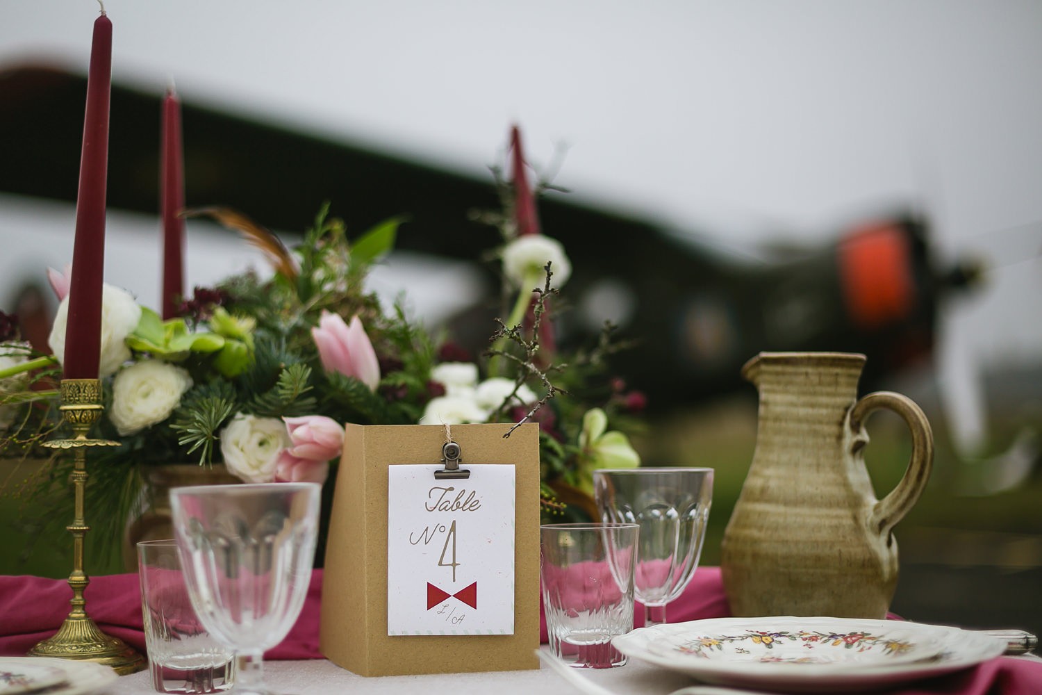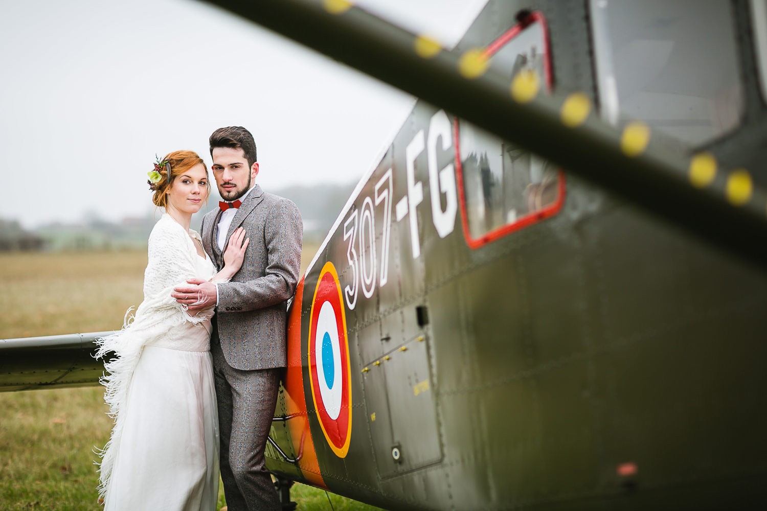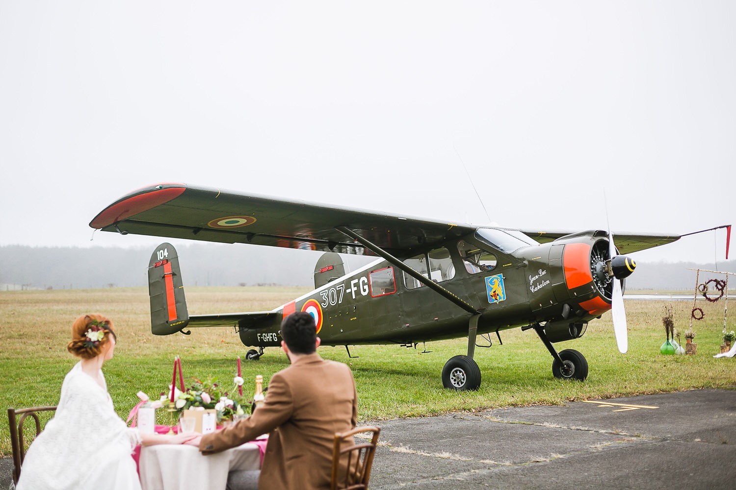 N’est-ce pas magnifique de célébrer son mariage dans un si grand espace, avec une ambiance à mi-chemin entre l’industriel et le vintage des vieux avions ? D’ailleurs, je suis une admiratrice de ce très beau monoplan des années 50, qui offre à ce mariage le romantisme digne de Pearl Harbor (j’en profite au passage pour écouter la musique si émouvante de ce film, qui me fait encore pleurer !)