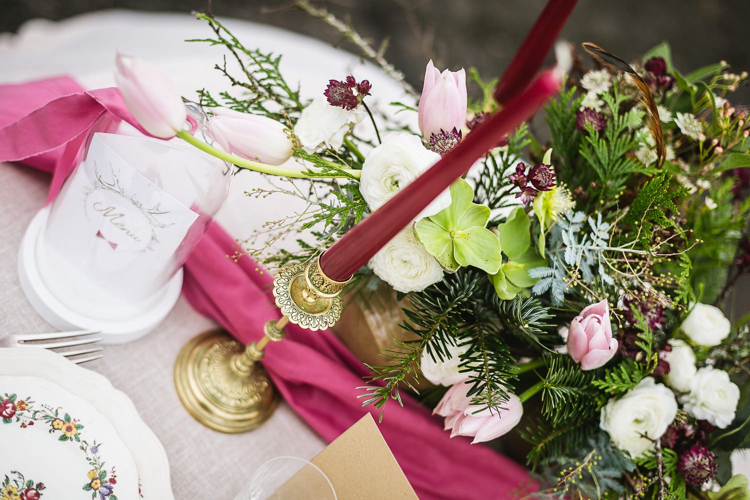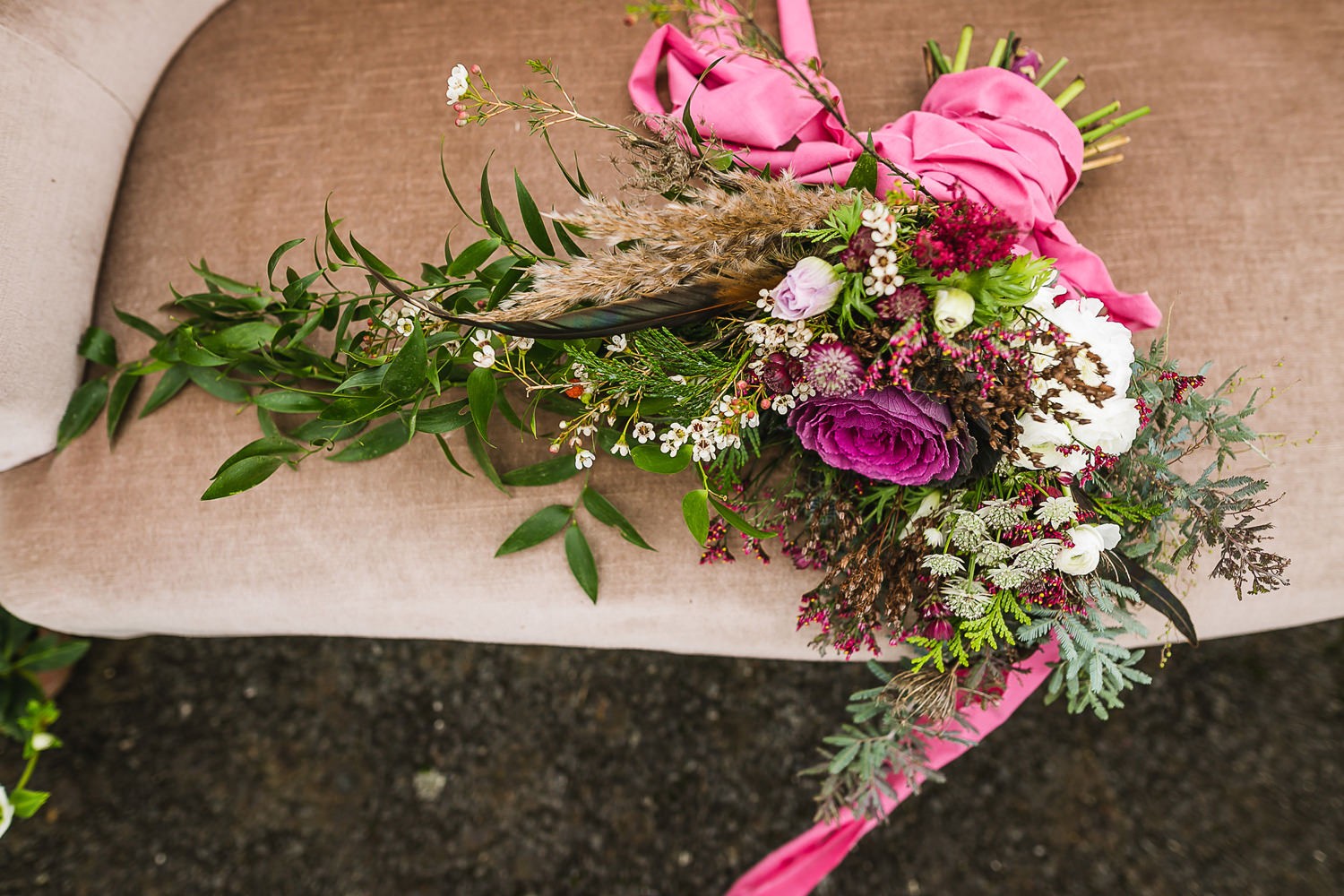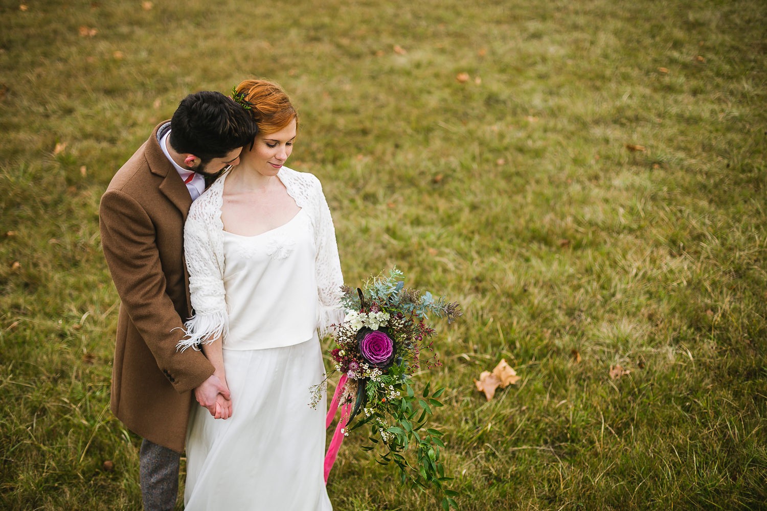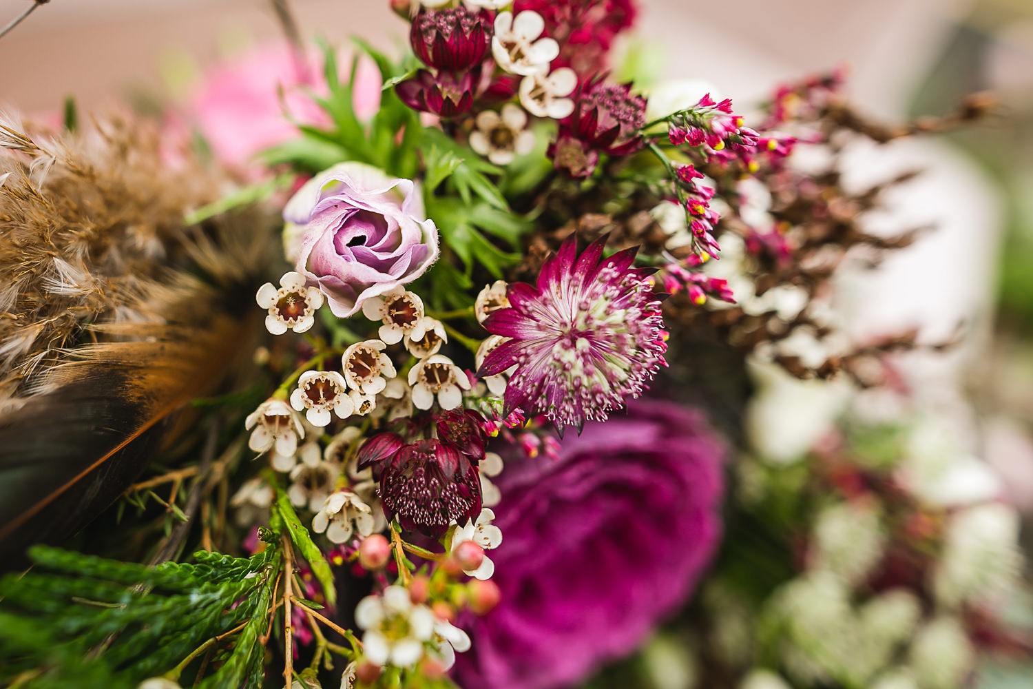Qui dit mariage en hiver, dit aussi choix restreint pour les fleurs fraîches. Flavia a donc opté pour des fleurs et des végétaux de saison dont…le chou ! Et oui, le grand végétal rose que vous pouvez voir au centre du bouquet de la mariée est un chou qui apporte beaucoup de couleurs à la création et ne gâche en rien le pouvoir des fleurs… bien au contraire !