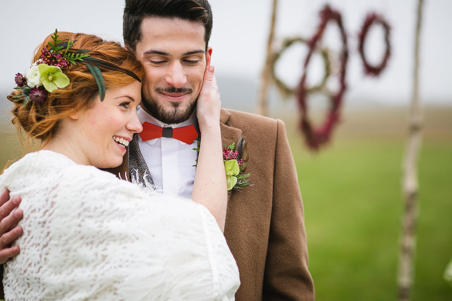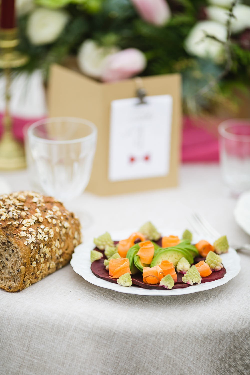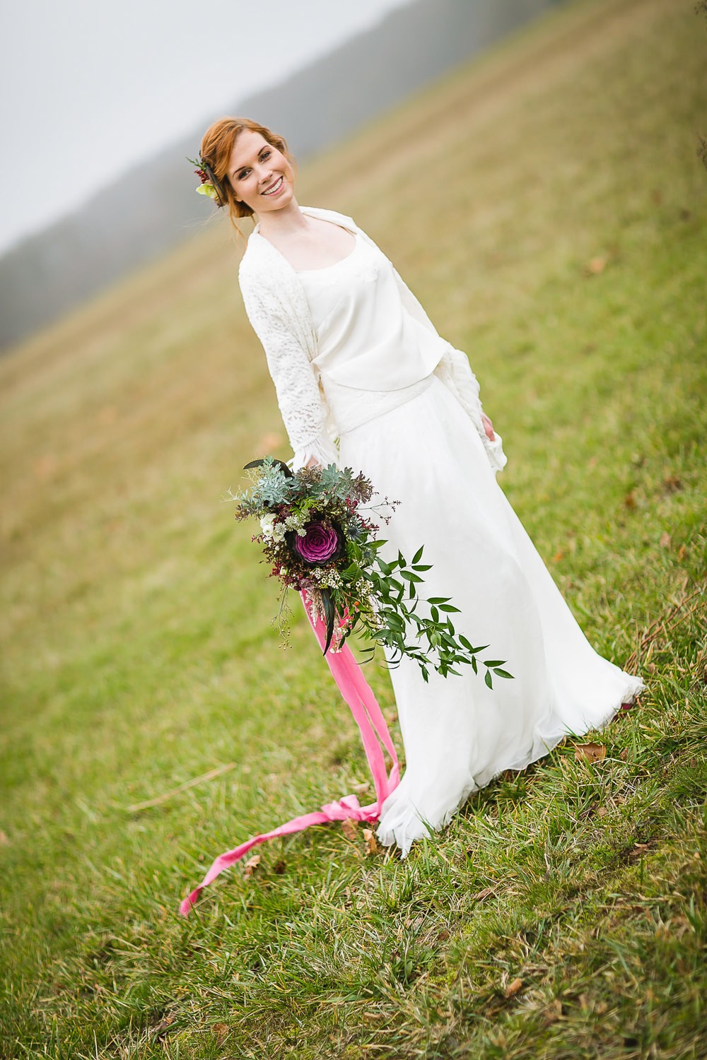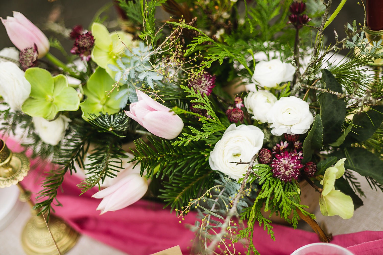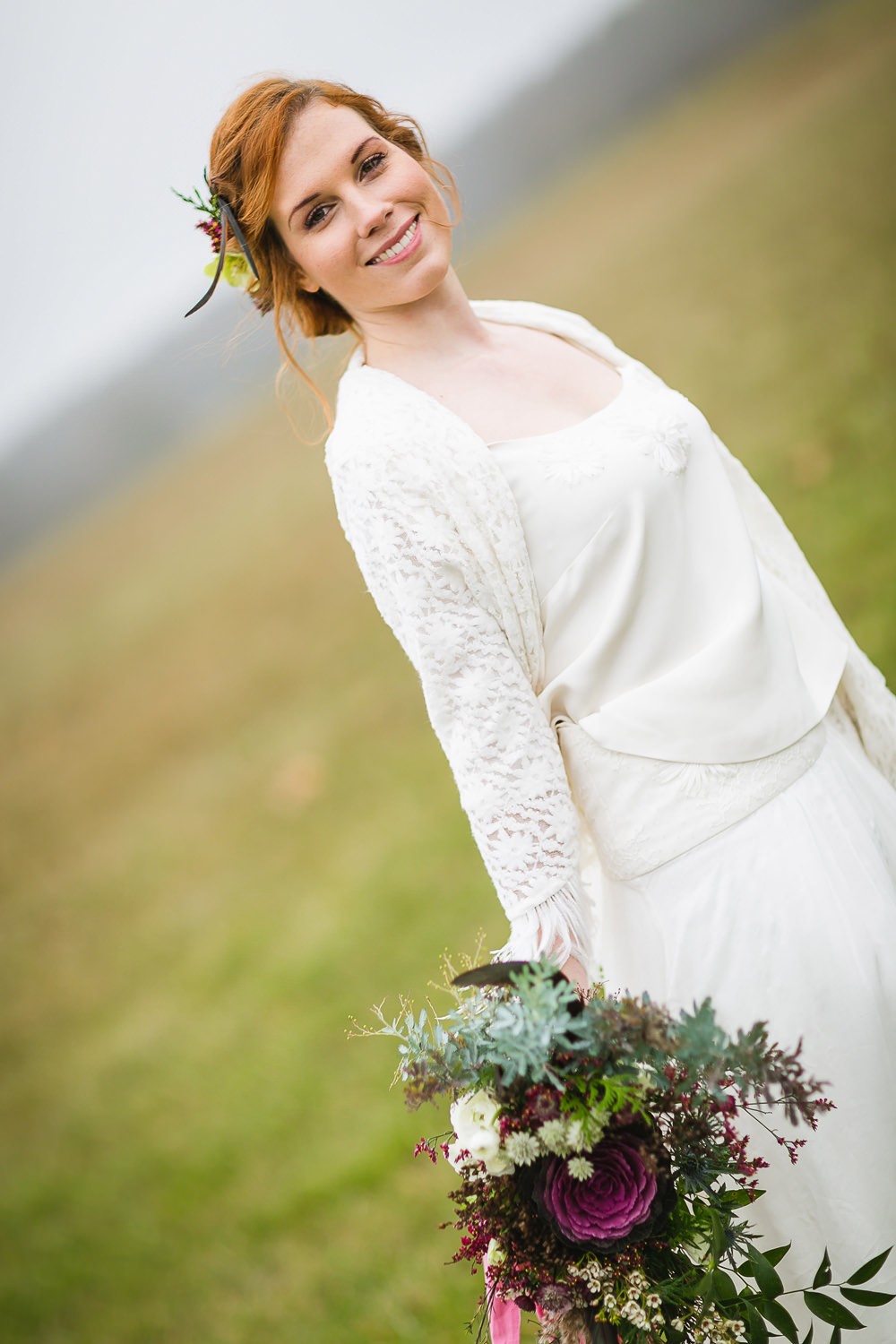 Qui dit mariage en hiver, dit aussi choix restreint pour les fleurs fraîches. Flavia a donc opté pour des fleurs et des végétaux de saison dont…le chou ! Et oui, le grand végétal rose que vous pouvez voir au centre du bouquet de la mariée est un chou qui apporte beaucoup de couleurs à la création et ne gâche en rien le pouvoir des fleurs… bien au contraire !