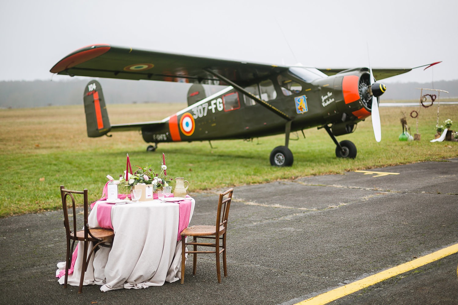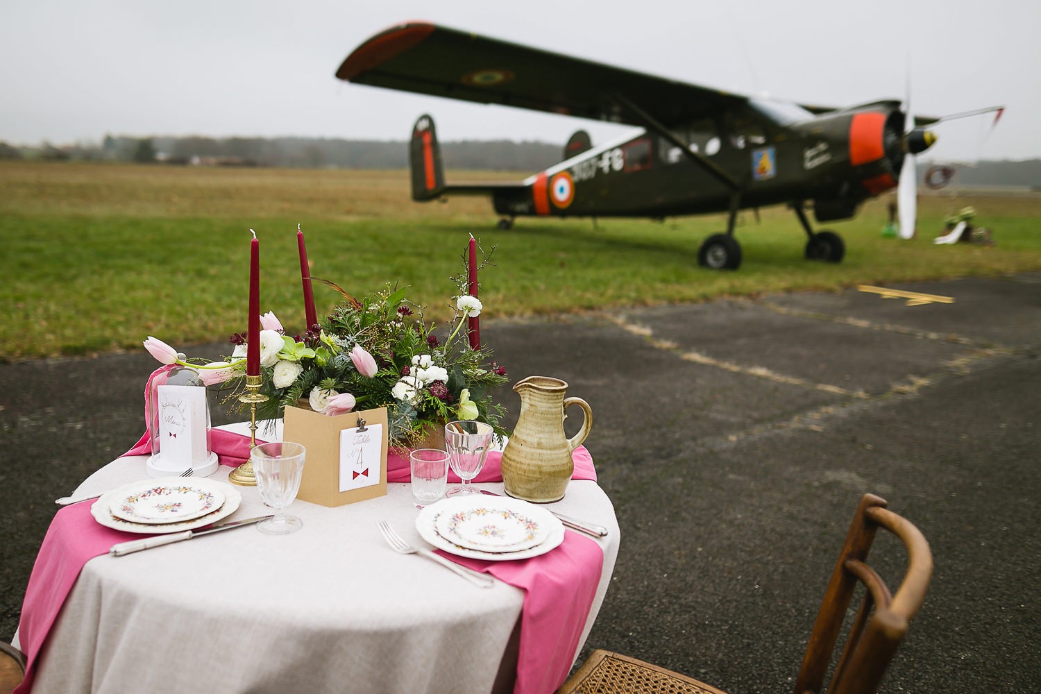 Vous êtes à la recherche d’un lieu original pour votre mariage ? J’ai la solution pour vous… Un aérodrome ! Véritable invitation à l’aventure, ce mariage sur le tarmac est une idée signée Flavia, scénographe et designer floral pour FleuritSourit en Bourgogne.