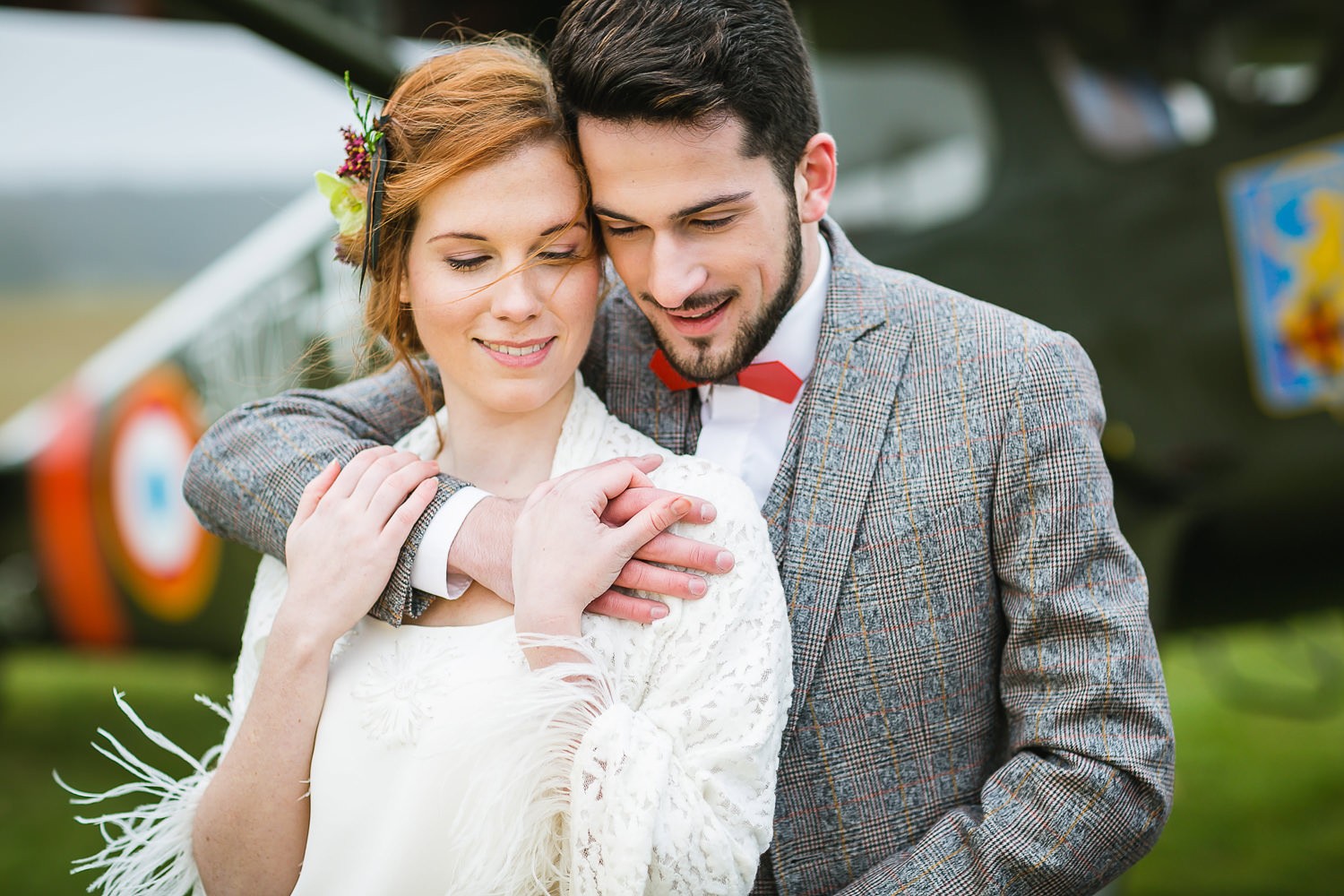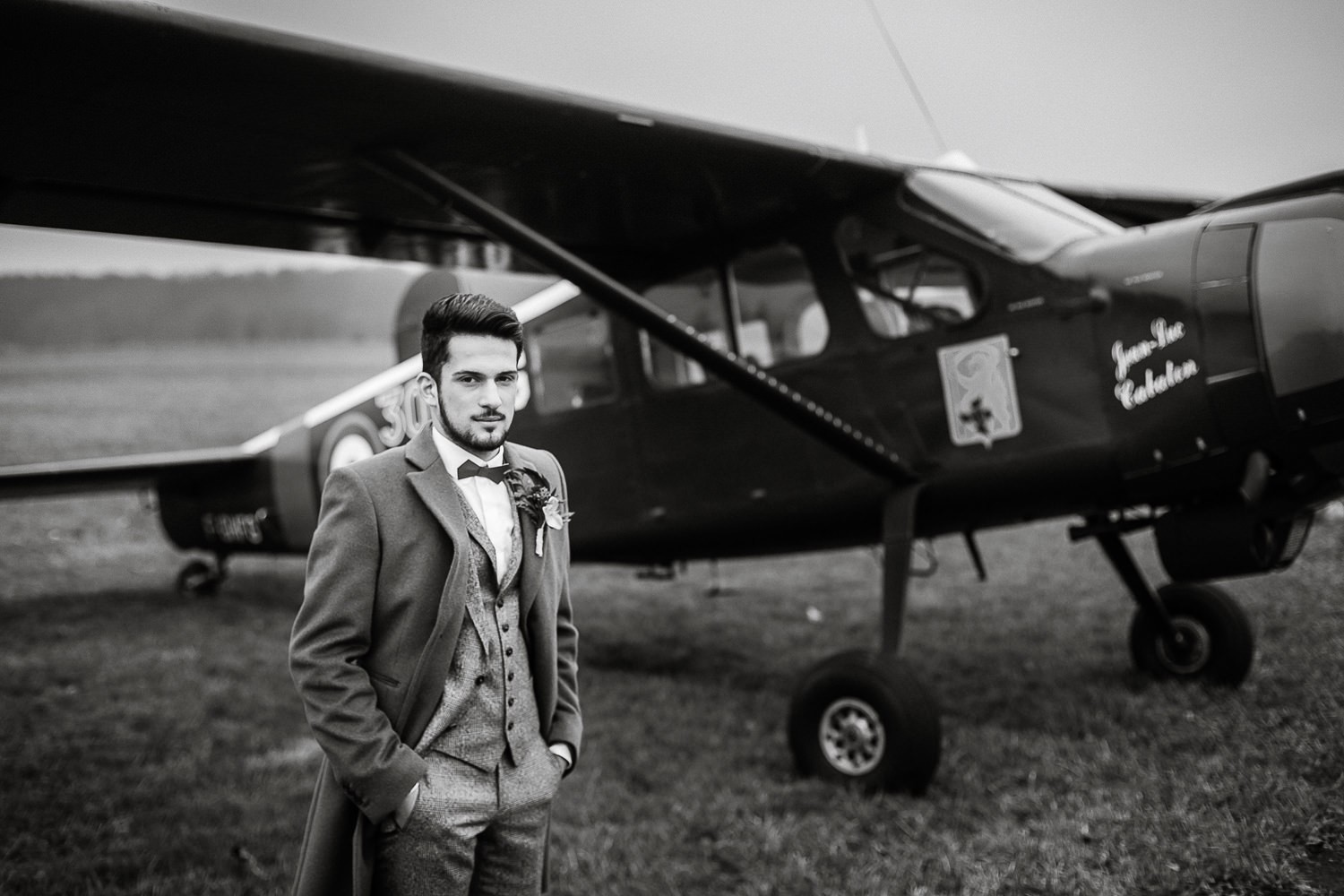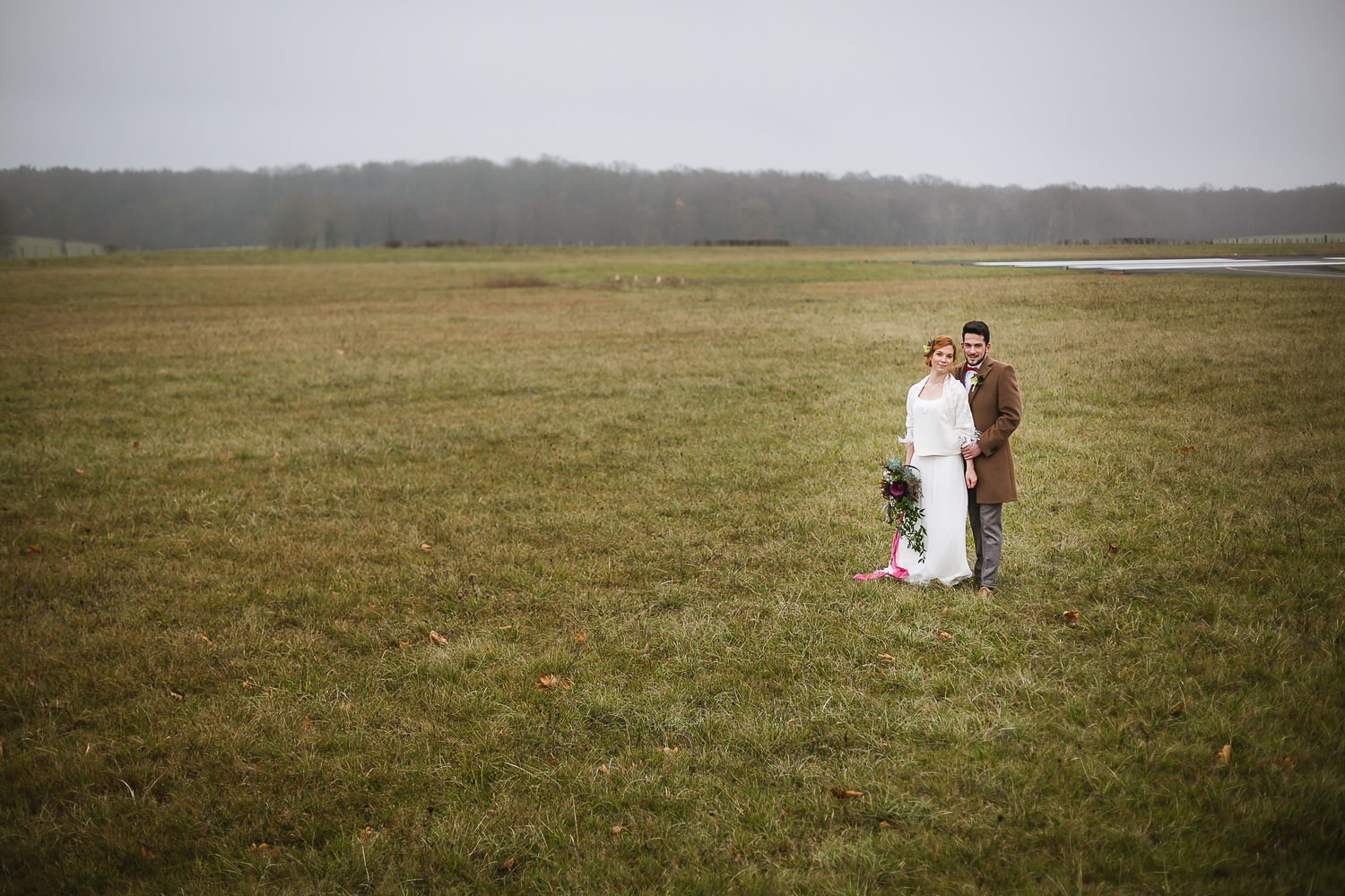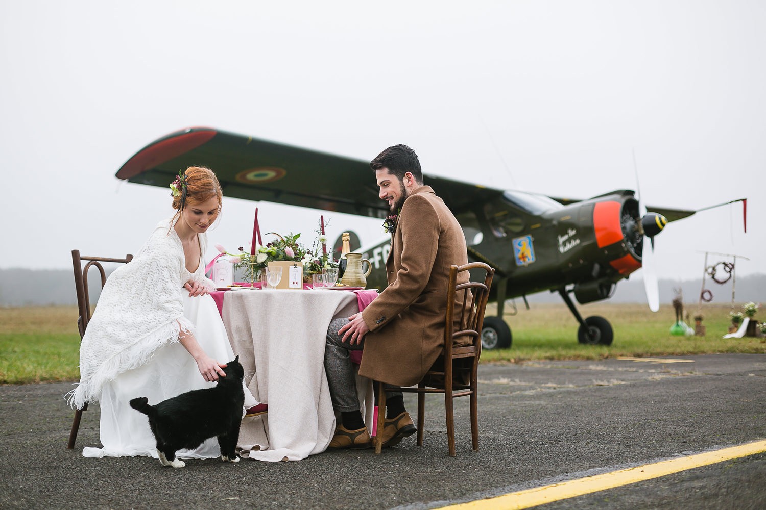 C’est sur ces mots que Flavia, de passage à l’aérodrome de Pouilloux pour un vol en famille, a décidé de créer ce shooting d’inspiration. Avec une belle équipe, ils ont décidé de créer un mariage sur le tarmac de l’aérodrome, le tout dans une ambiance hivernale.