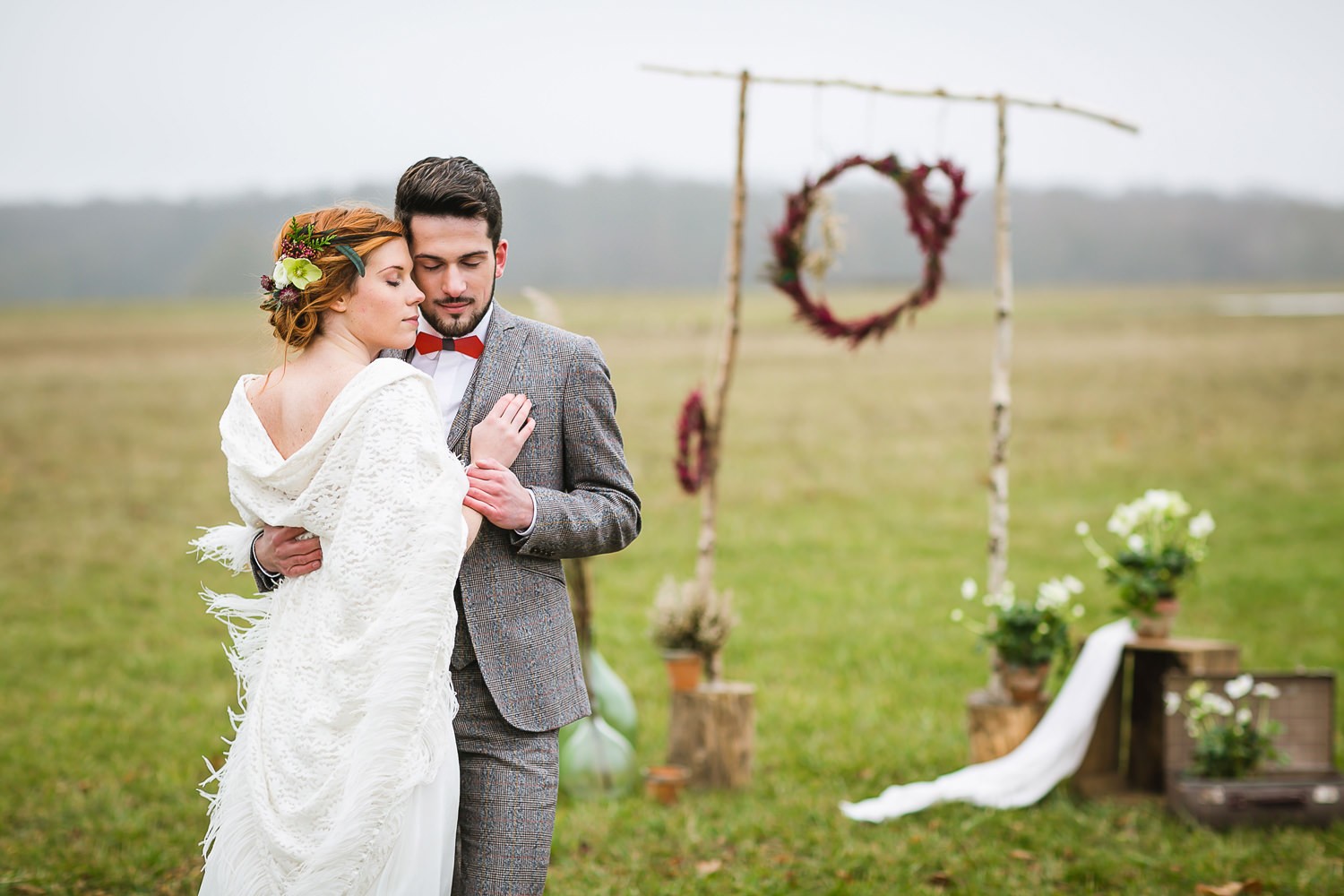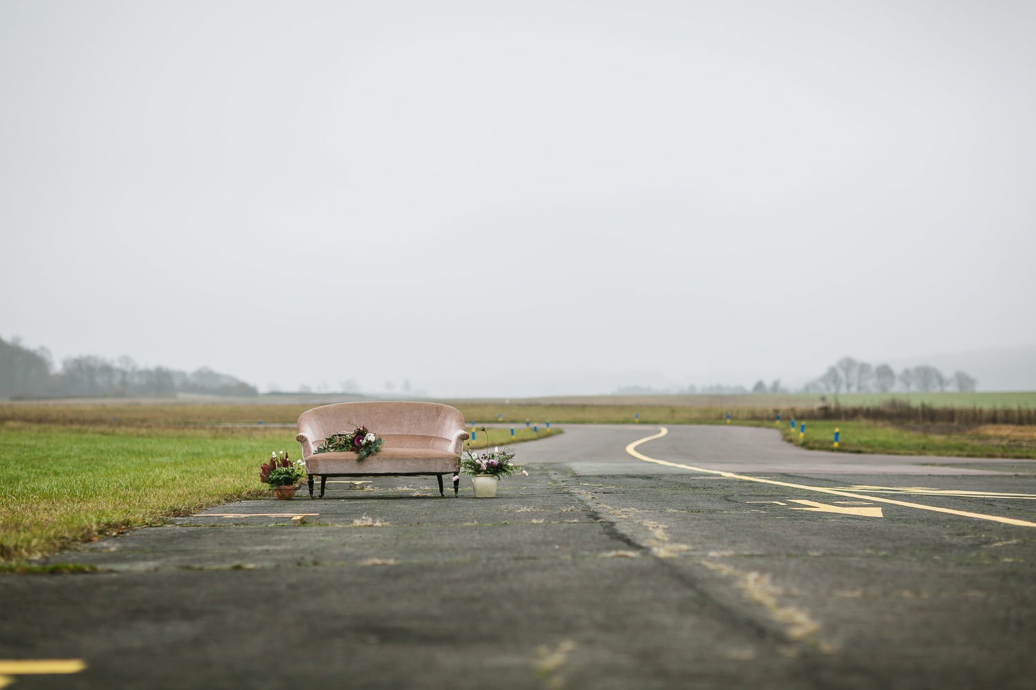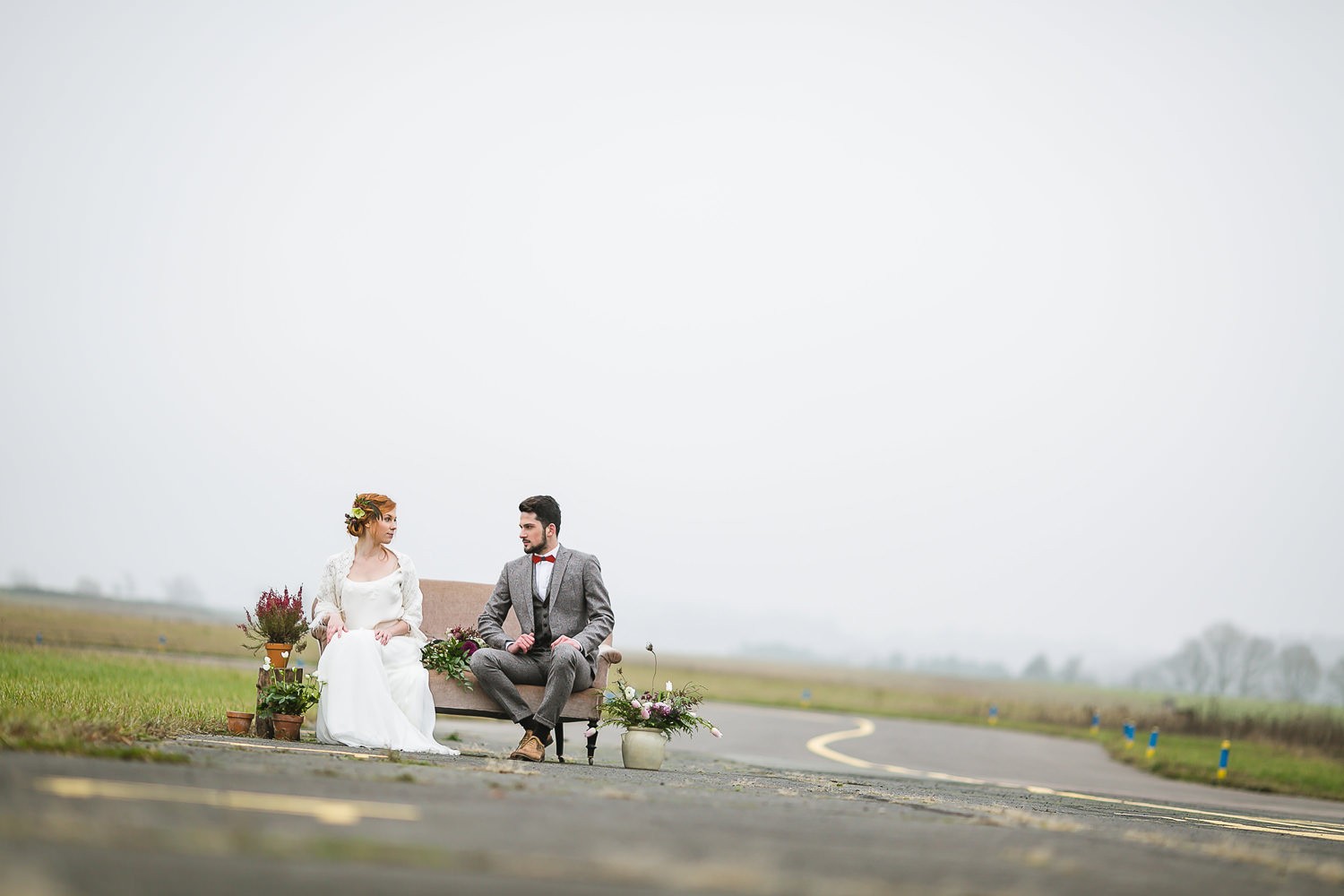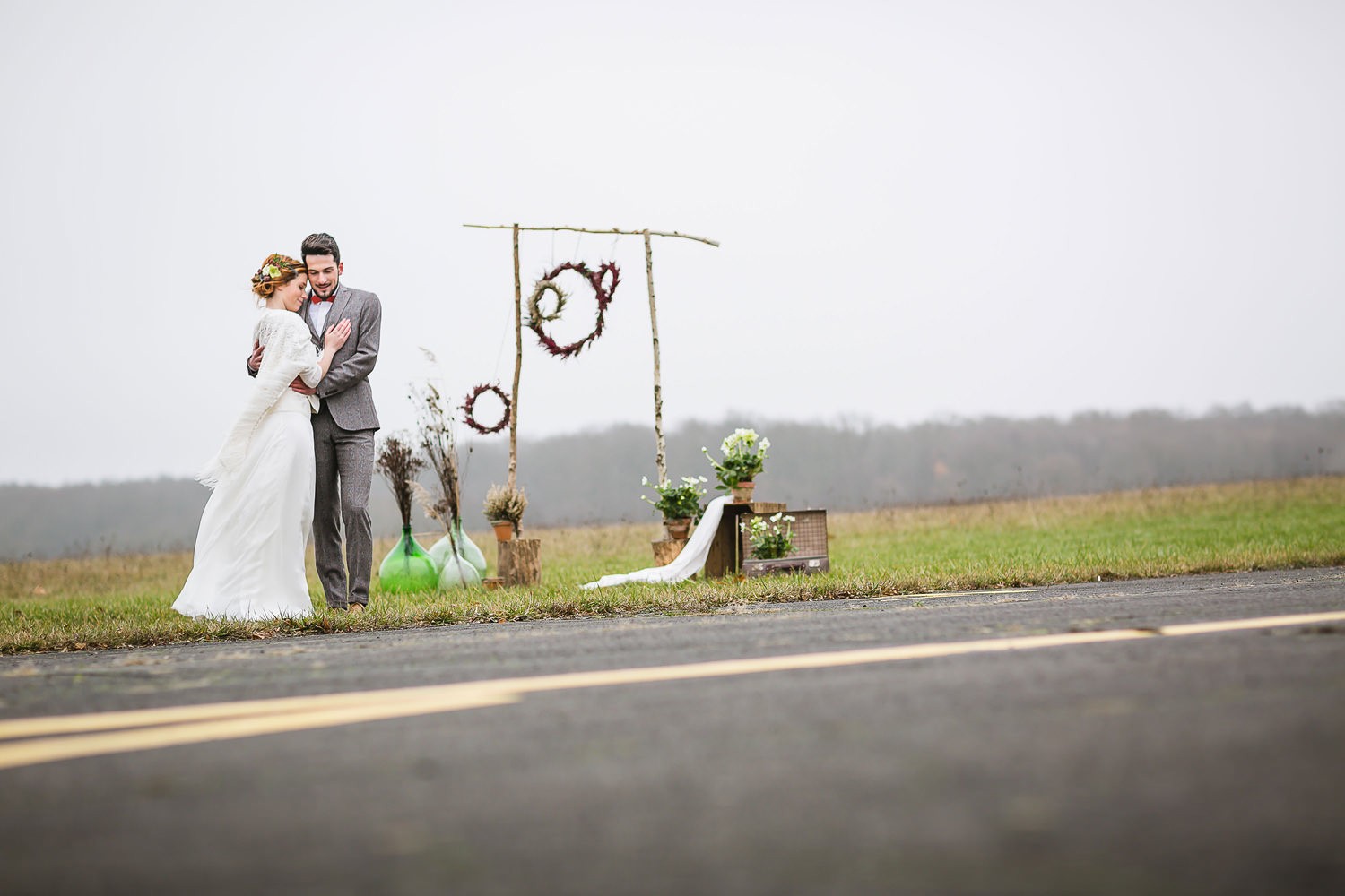 C’est sur ces mots que Flavia, de passage à l’aérodrome de Pouilloux pour un vol en famille, a décidé de créer ce shooting d’inspiration. Avec une belle équipe, ils ont décidé de créer un mariage sur le tarmac de l’aérodrome, le tout dans une ambiance hivernale.