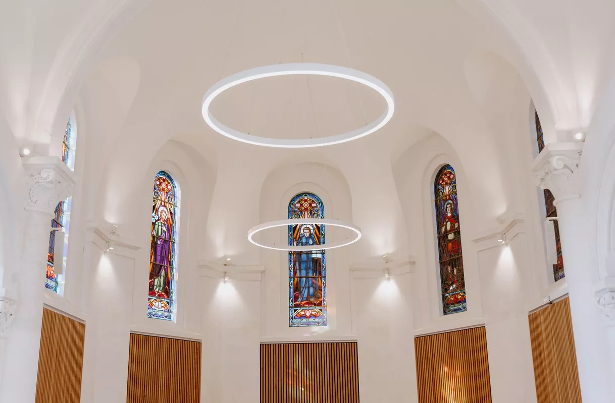 - pour la beauté majestueuse : vitraux, moulures, hauteurs des plafonds, balcon magistral surplombant la réception, la Chapelle offre un cadre unique pour votre mariage. Par une journée ensoleillée, les rayons du soleil se reflètent dans les vitraux et offrent un spectacle incroyable.