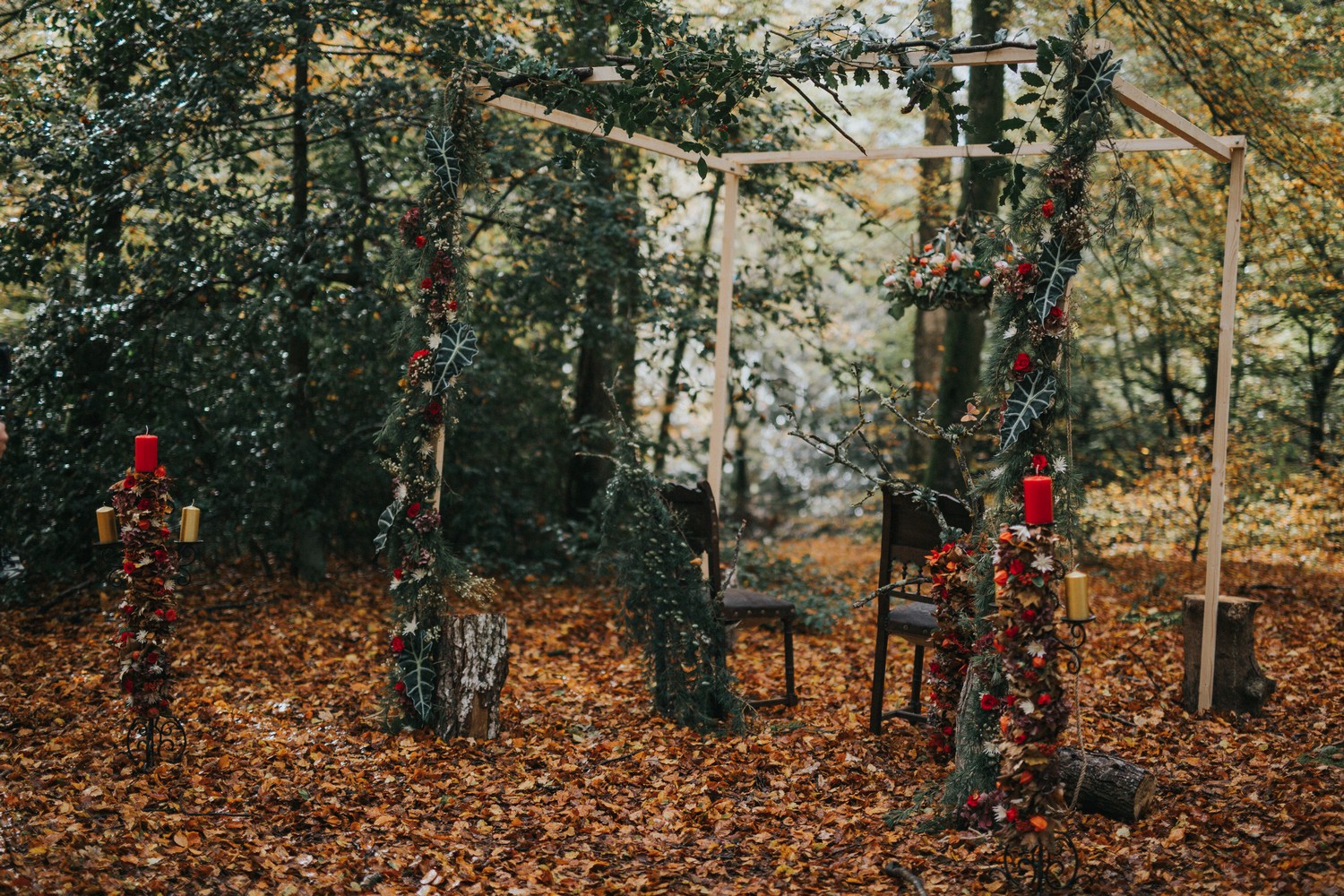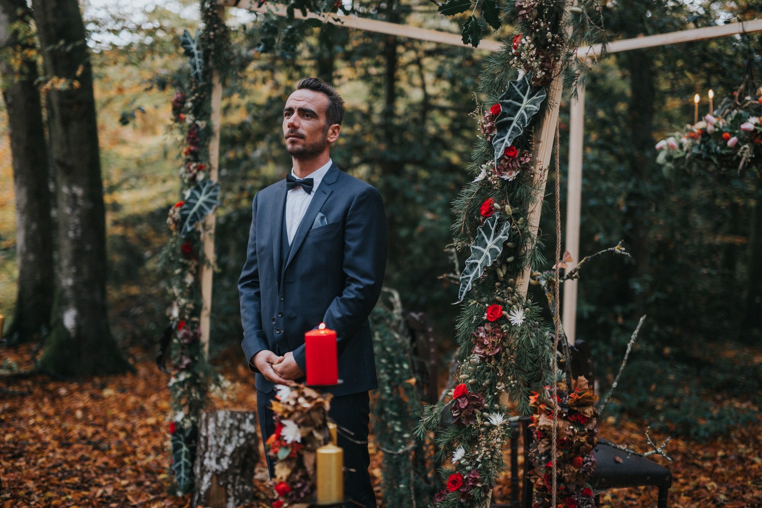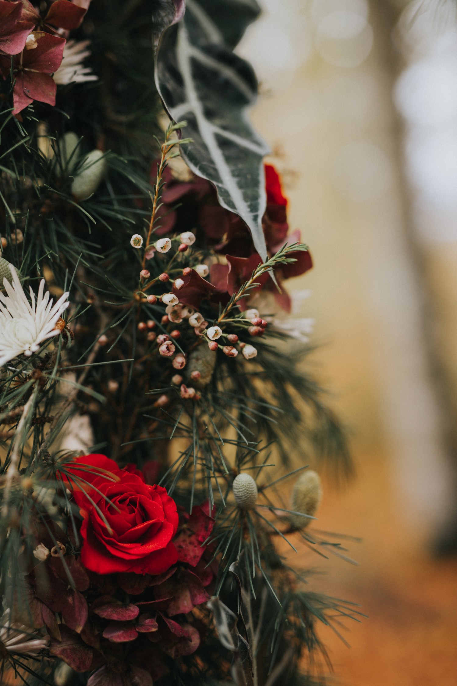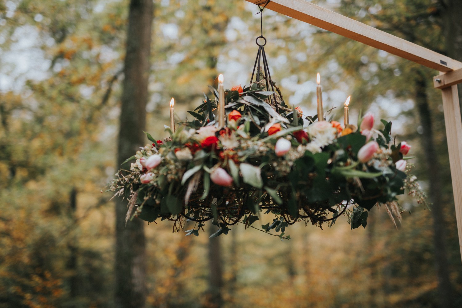J’adore la traîne de fleurs de la mariée avec ce doux mélange de lierre et de houx. Mais aussi le lâcher de feuilles mortes à la place des confettis (je vous en parlais déjà dans mon article dédié aux 5 inspirations pour un mariage automnal). Le must ? Cette balançoire si romantique ! C’est l’idée à prendre de ce shooting ! Que ce soit pour votre cérémonie laïque ou pour le photobooth de votre mariage, cette balançoire est un atour charme incontestable !