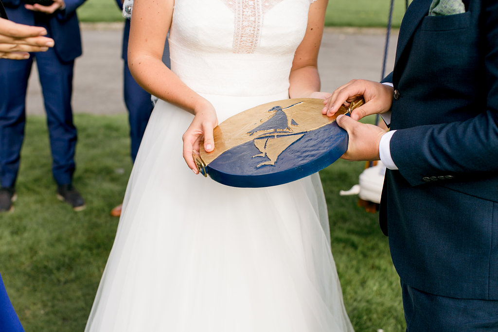 - Prendre des vacances et se couper des préparatifs quelques semaines avant le jour J. Nous sommes partis faire deux semaines de bateau en amoureux avec notre chien dans le Golf du Morbihan au mois d’août et ça nous a fait un bien fou de se retrouver et de ne penser qu’à nous ! Après ce séjour, j’ai vécu plus sereinement la fin des préparatifs et surtout j’ai été hyper zen le jour J car je voulais vraiment vivre l’instant présent et ne pas passer à côté de ces moments de partage (Carpe diem : c’est la devise de mes grands-parents maternels) et d’intégrer tout l’amour qui nous entourait dans notre bulle.