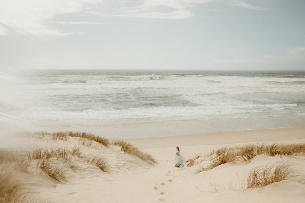 Qui n’a jamais rêvé de se dire « oui » sur le sable chaud d’une plage ? Les pieds nus, les cheveux aux vents et les embruns de la mer comme seul parfum… Avec les cérémonies laïques, c’est désormais possible ! Accompagné de votre officiant, de quelques éléments de décor comme une arche, vous pouvez désormais vous marier en bord de mer. Et c’est sur une plage sauvage du Cap Ferret que je vous emmène aujourd’hui pour découvrir ce très beau shooting d’inspiration d’Enjoy Evénements.