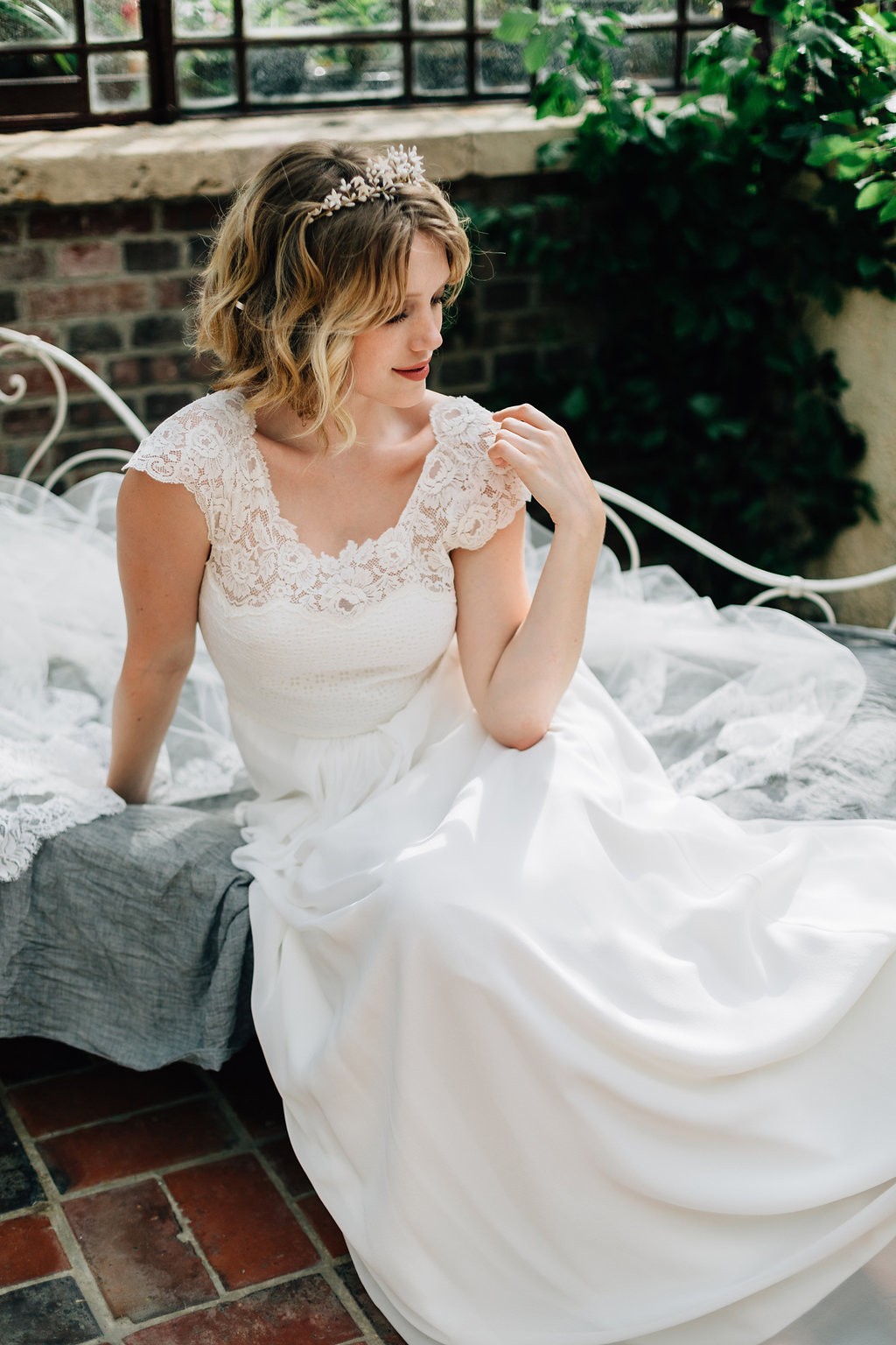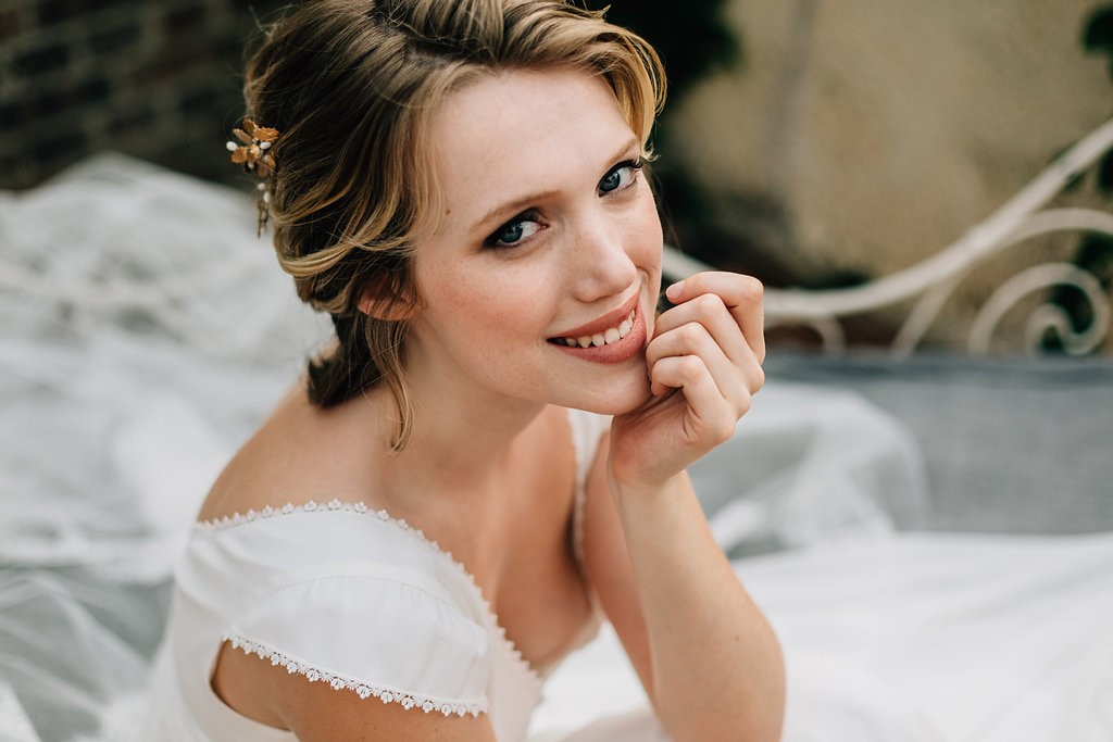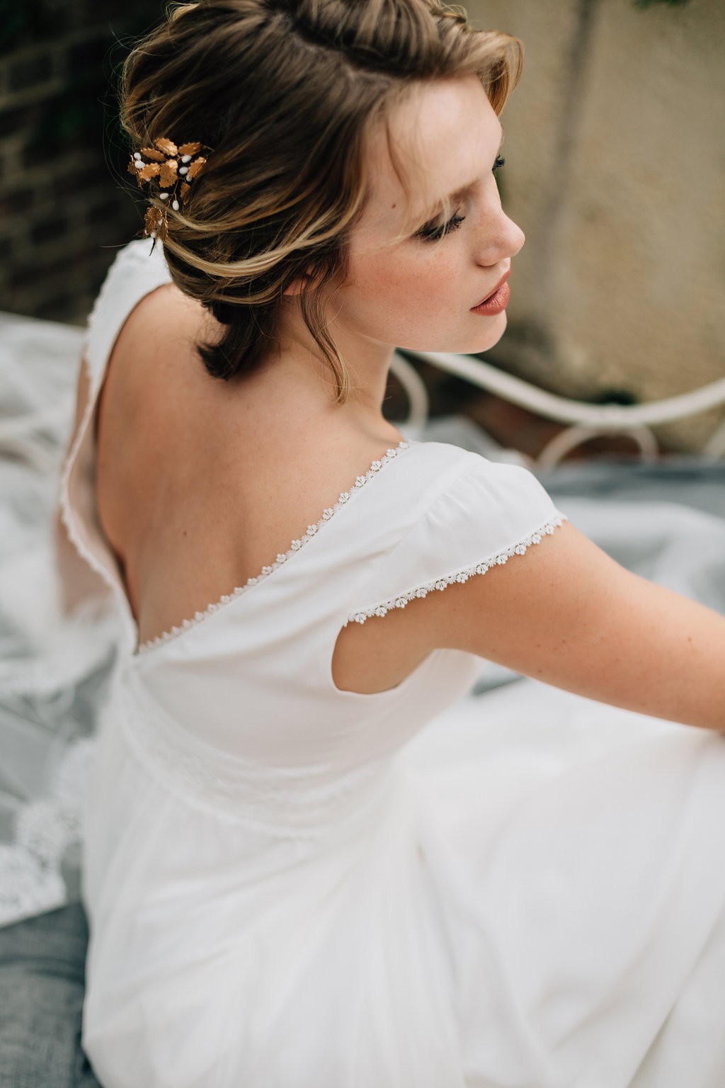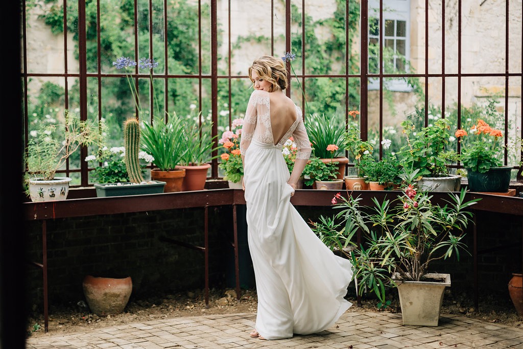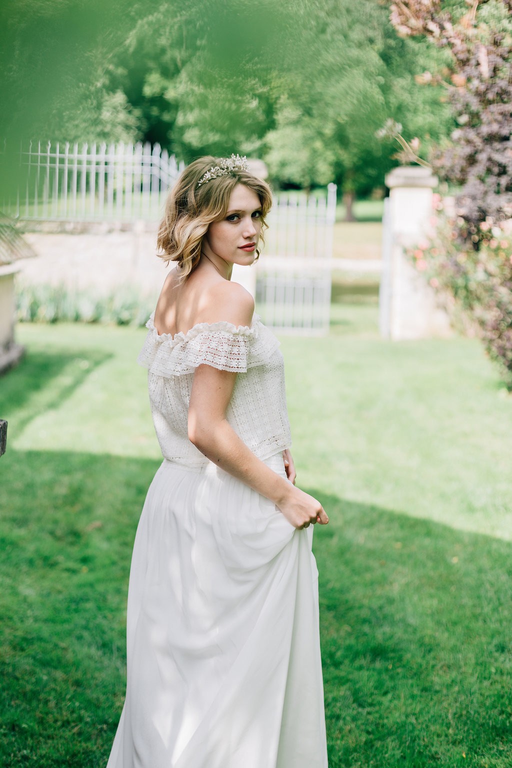 Lieu : Domaine de Verderonne – Photos : Pierre Atelier – Bijoux de cheveux : Lizeron – Coiffure : Florence Dottel – Maquillage : Ludivine Maquille – Modèle : Lilas Marchand – Organisation et scénographie : Parisian Inspired – Végétal : Drissia