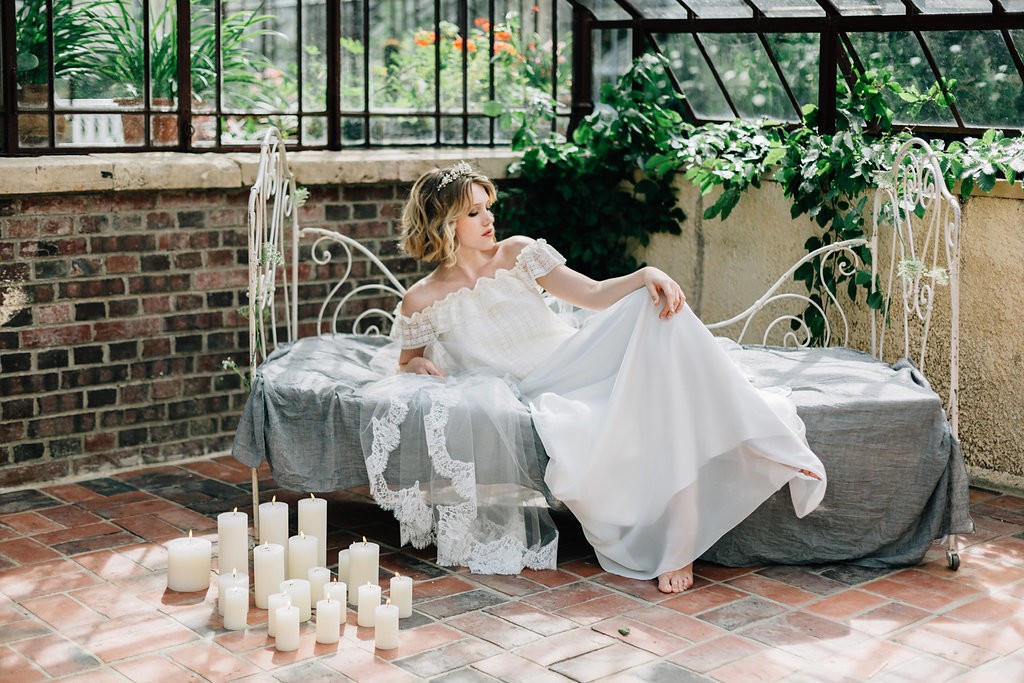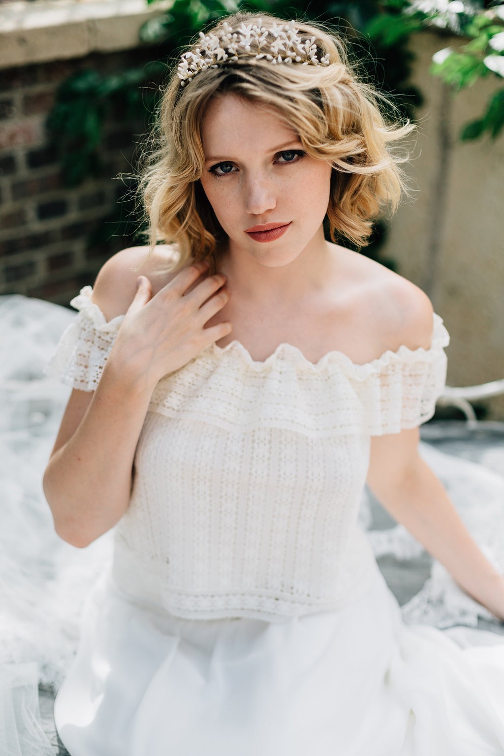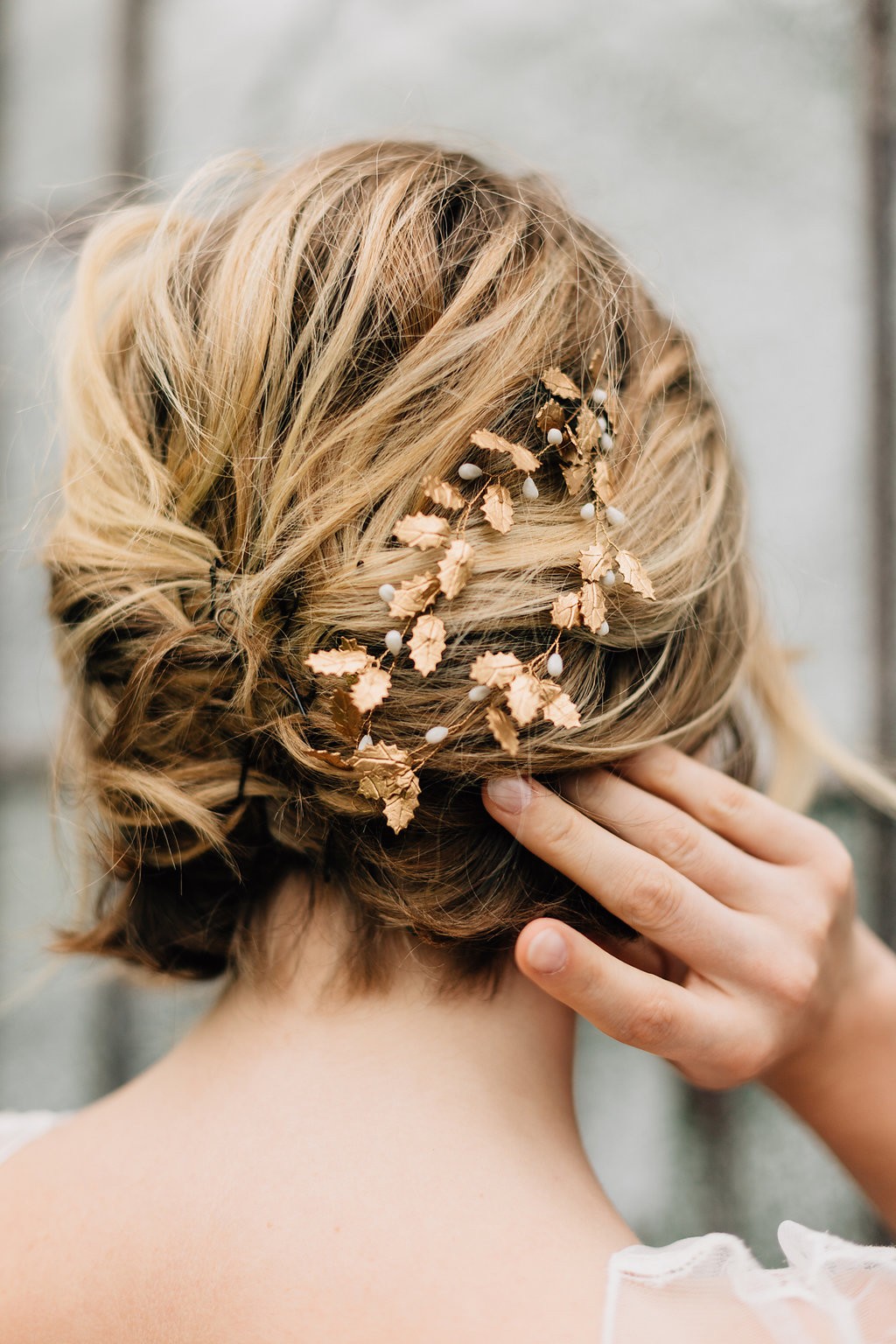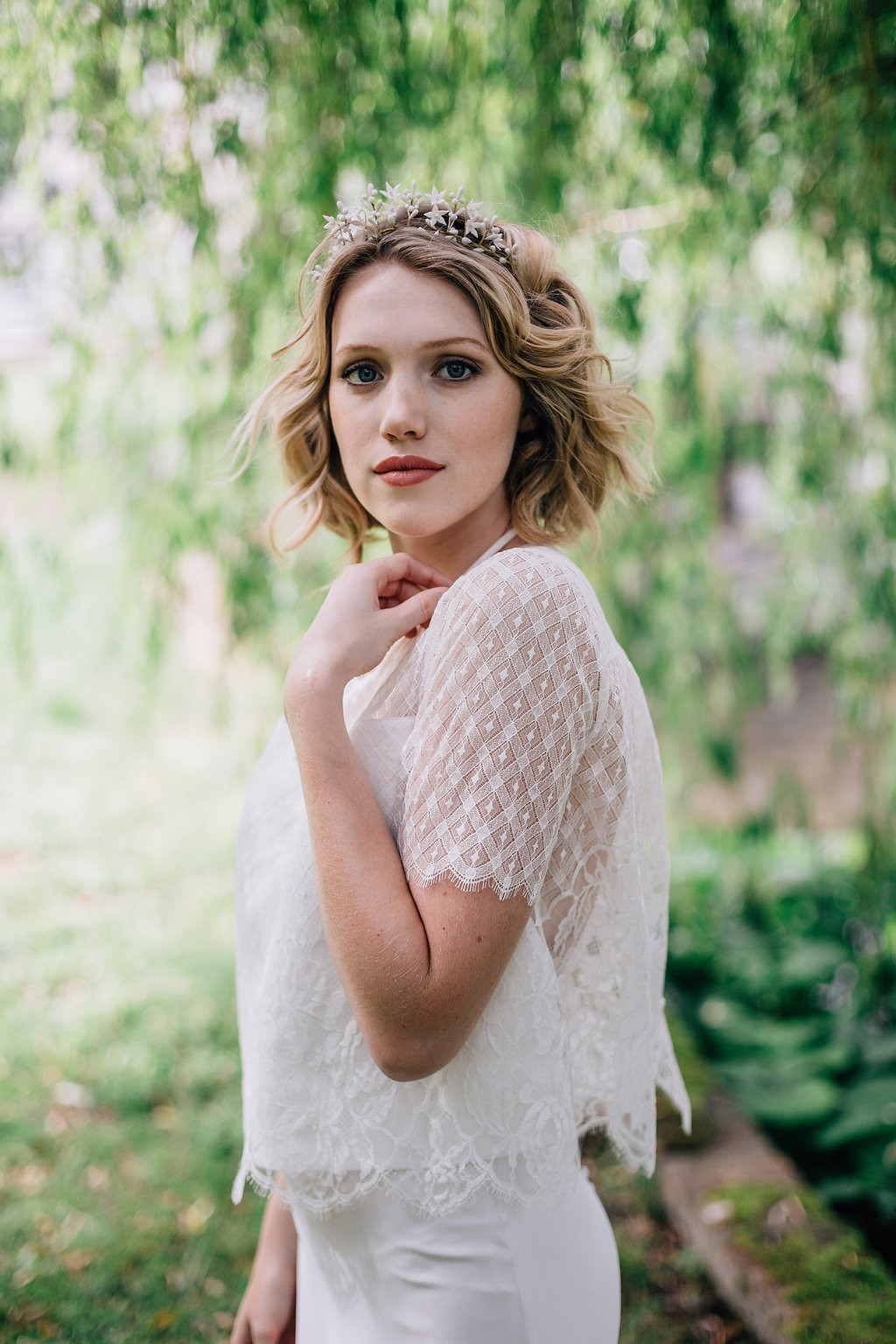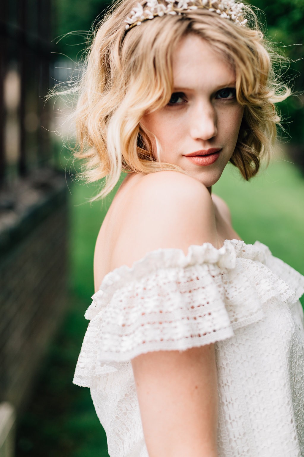 Lieu : Domaine de Verderonne – Photos : Pierre Atelier – Bijoux de cheveux : Lizeron – Coiffure : Florence Dottel – Maquillage : Ludivine Maquille – Modèle : Lilas Marchand – Organisation et scénographie : Parisian Inspired – Végétal : Drissia