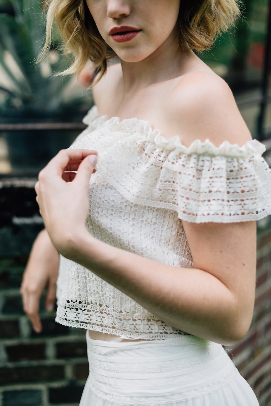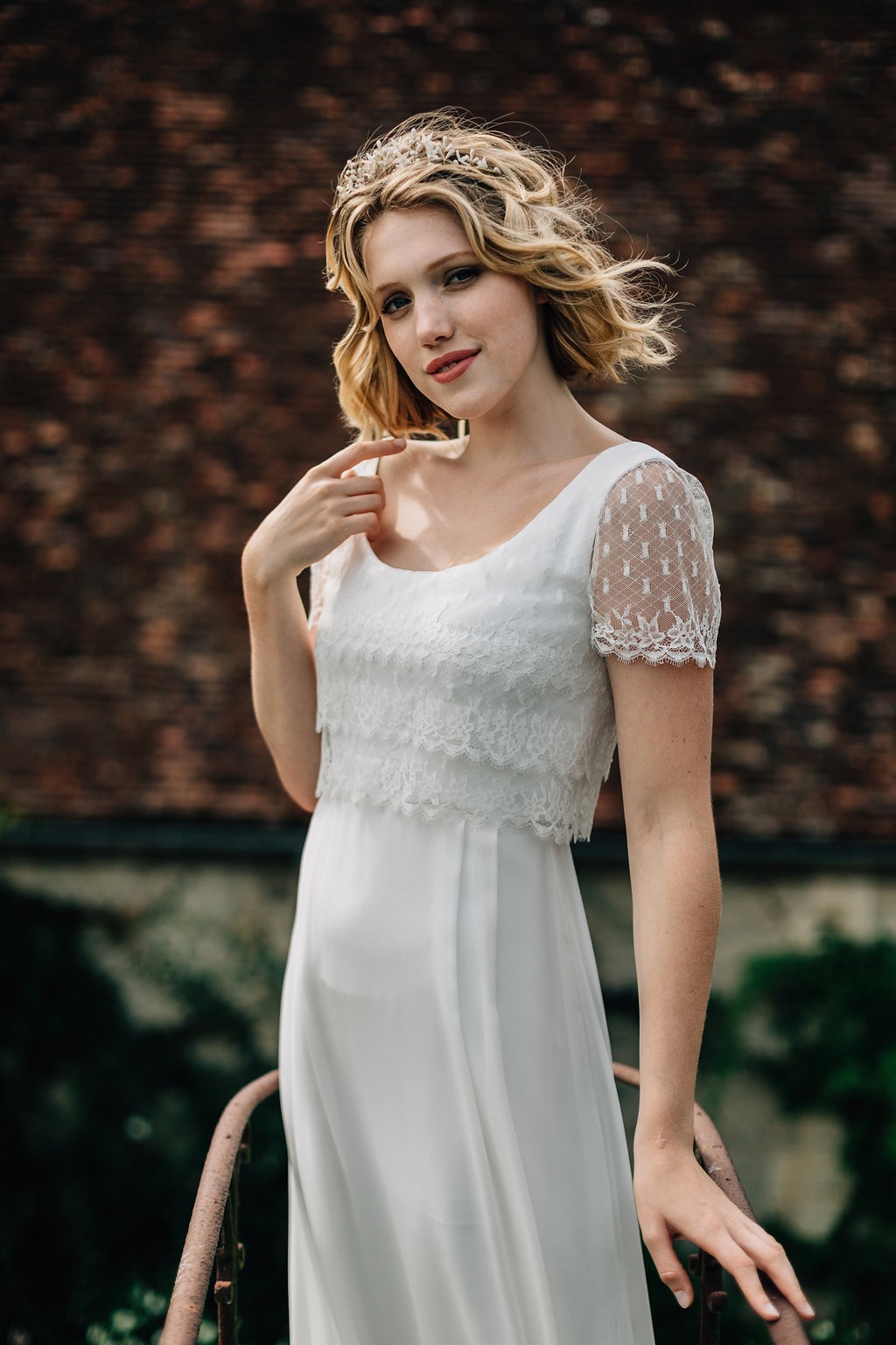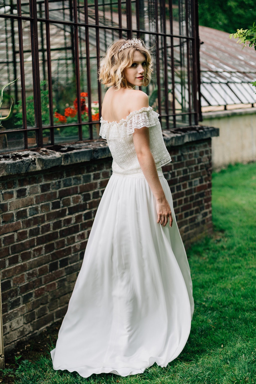 Brigitte, la créatrice, nous propose huit créations à la personnalité bien assumée. La grande nouveauté ici est la combinaison de top, de jupe ou de cape permettant de multiplier les styles. Les tops au look bohème et hippie peuvent même être reportés après le mariage !