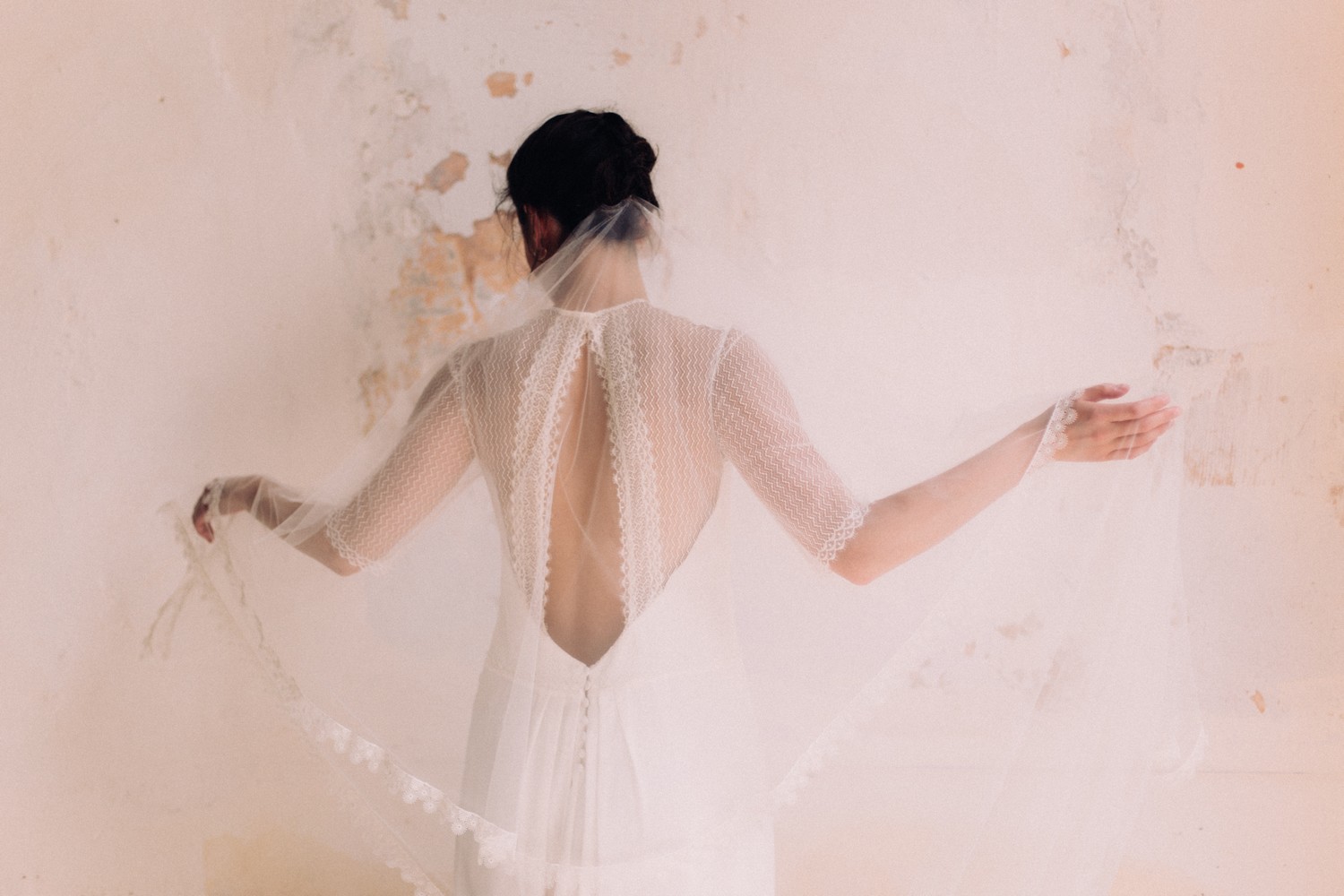 Dentelle et mousseline de soie tourbillonnent en un mouvement et épousent les formes de la future mariée avec un subtil jeu de transparence. Baptisée « Le Ballet », cette nouvelle collection puise son processus créatif de l’harmonie des mouvements d’une danseuse.