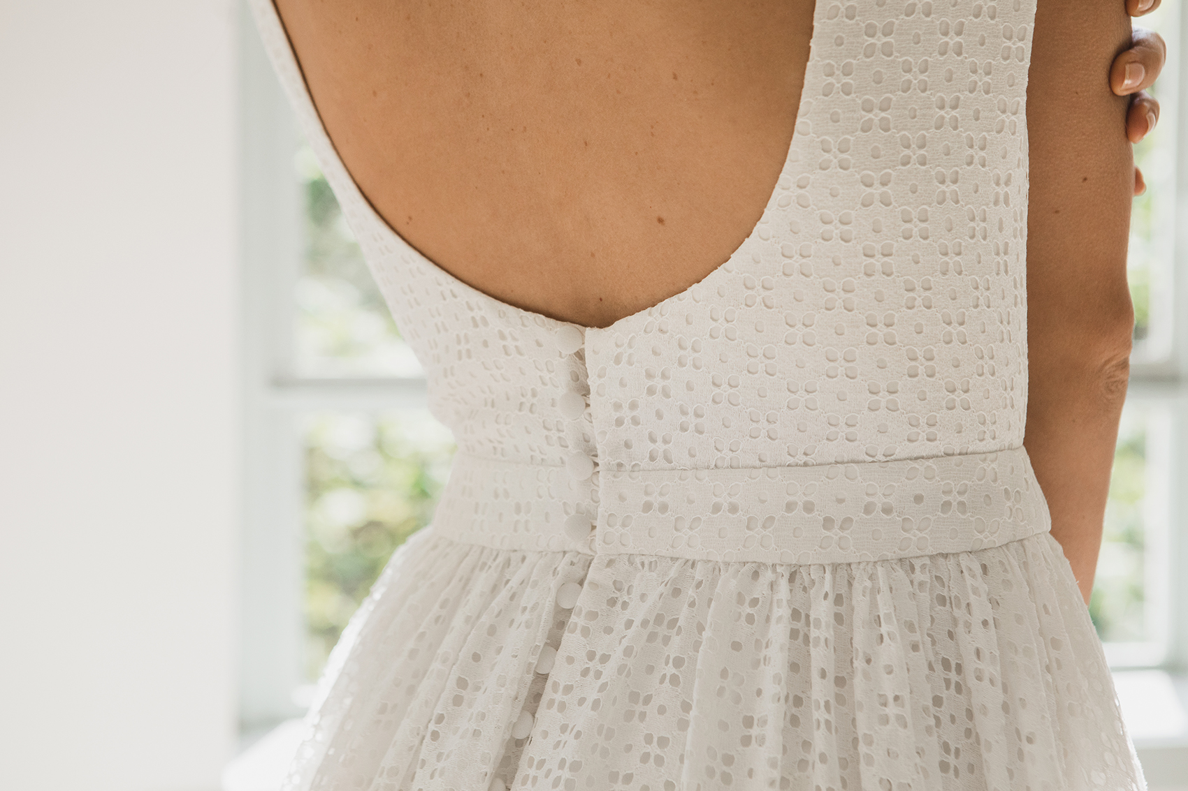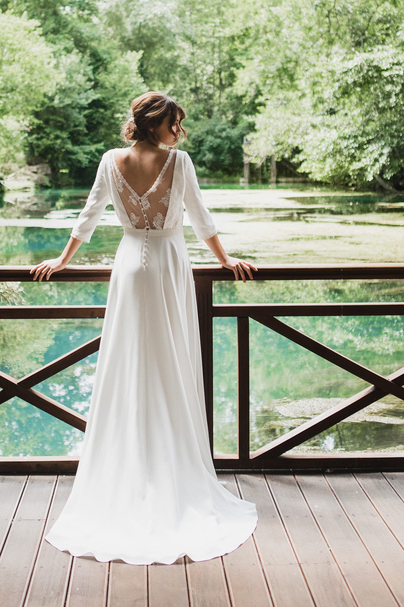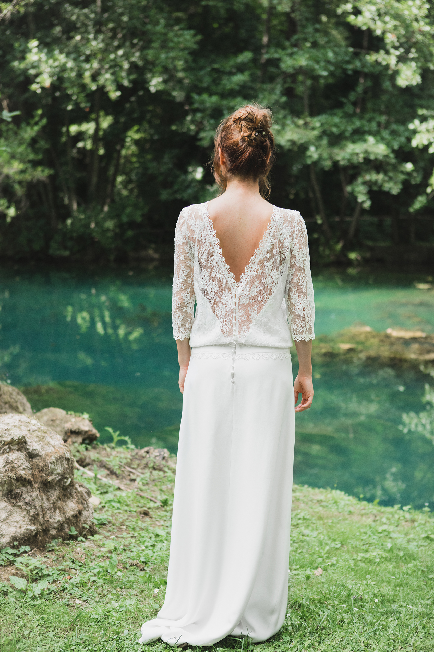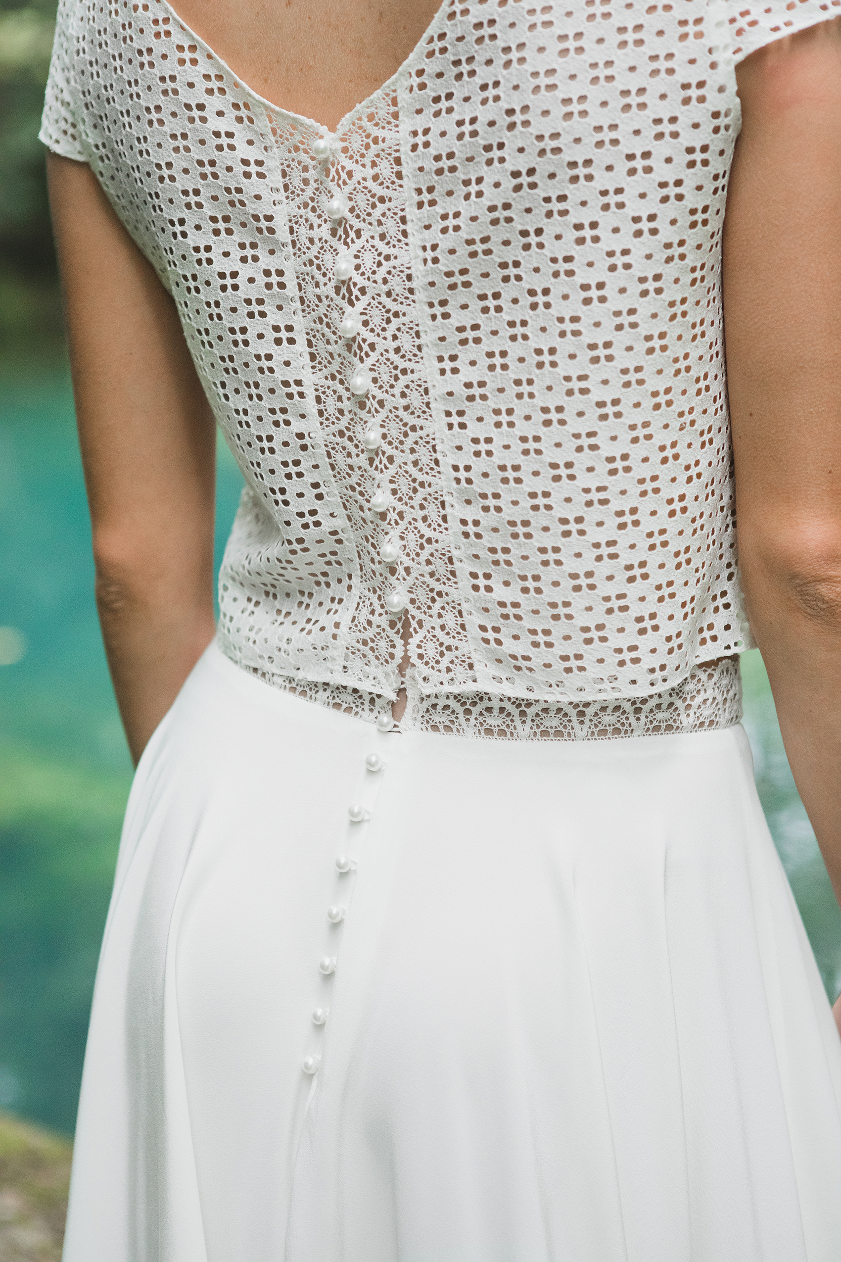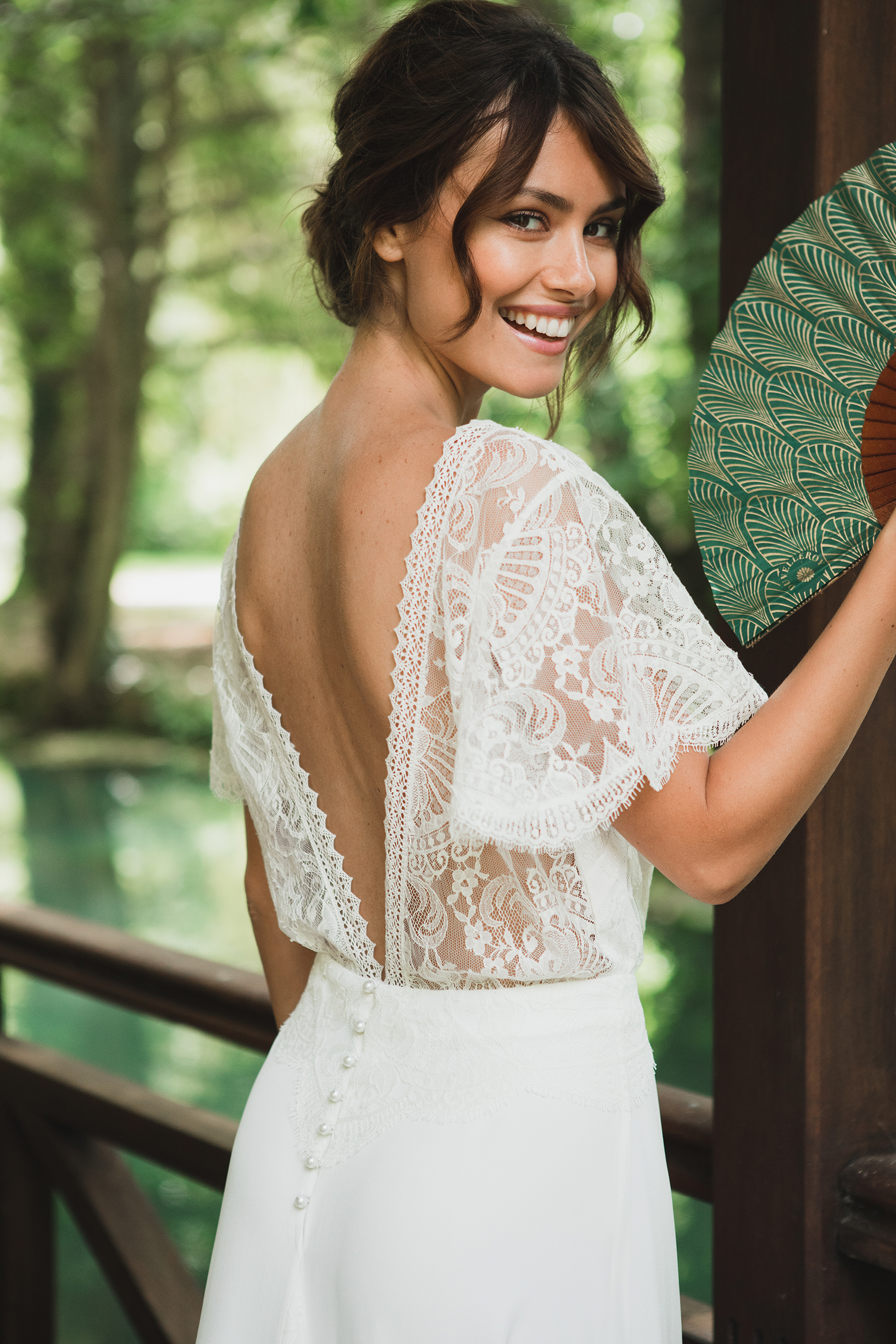 Le souci du détail est toujours aussi bien travaillé, avec des petits boutons de perle nacrée pour sublimer la cambrure ou encore des dentelles pour habiller un décolleté. Cette année, la créatrice s’est inspirée d’un compagnon d’antan : l’éventail. On le retrouve dans ces très beaux clichés mais aussi dans les motifs des robes de cette nouvelle collection (et dans le top Luce de la collection 2018 que vous pouvez retrouver ici).