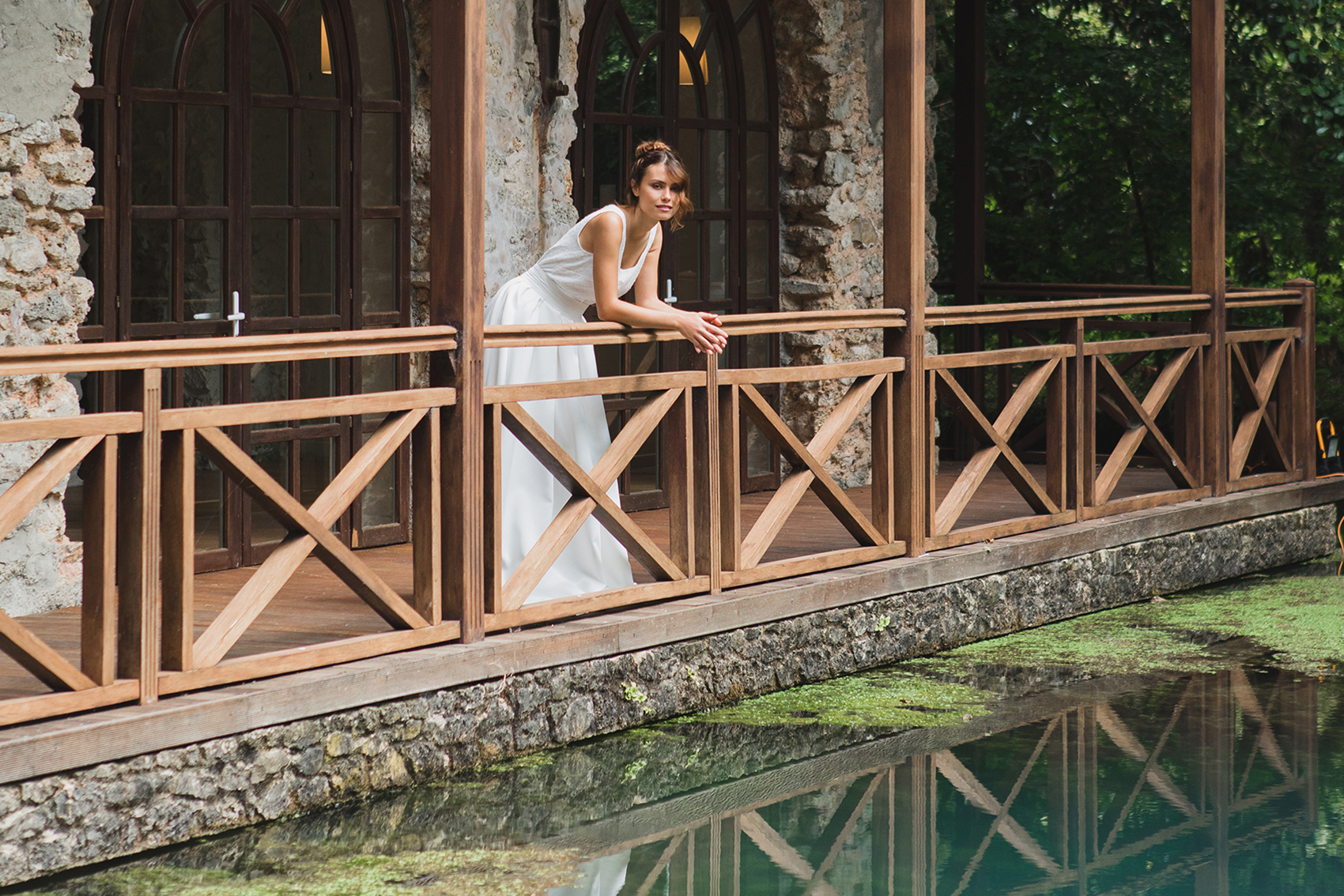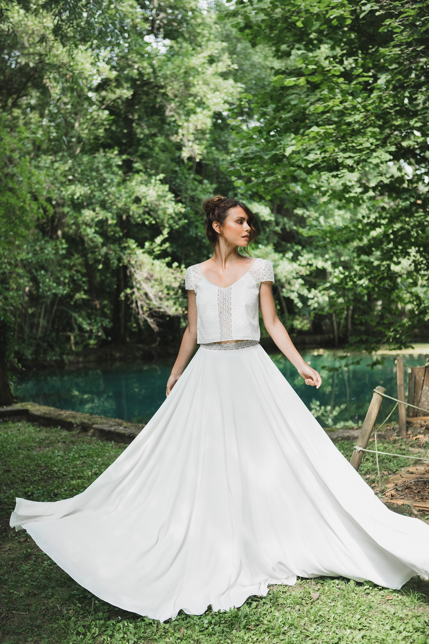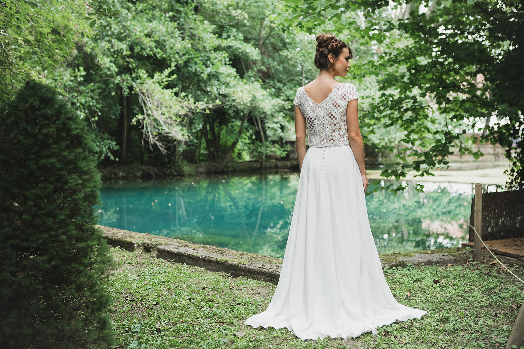 Photographe : Charlotte Navio – Maquillage/coiffure : Rika Bitton – Accessoires de cheveux : La Chambre Blanche – Modèle : Yasmine Ravel – Lieu : Les Sources chez Magnificia