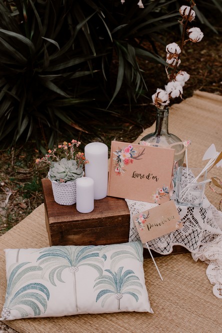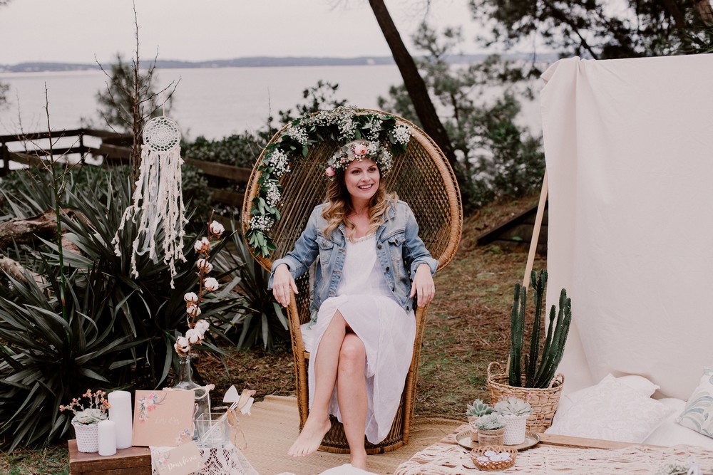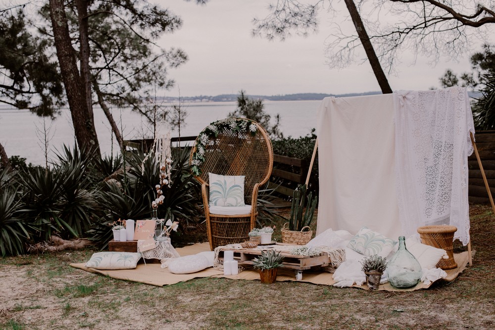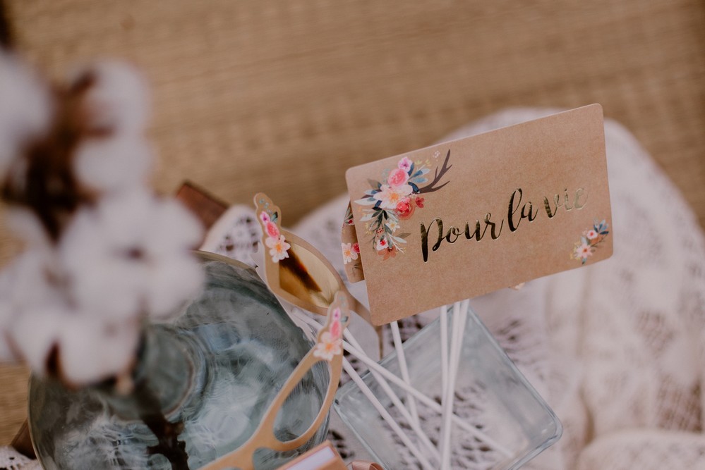 - Décoration du photobooth : à chiner ou à louer. Pour ces photos, c’est la décoratrice Nelly Sesame qui a créé tout l’univers bohème.