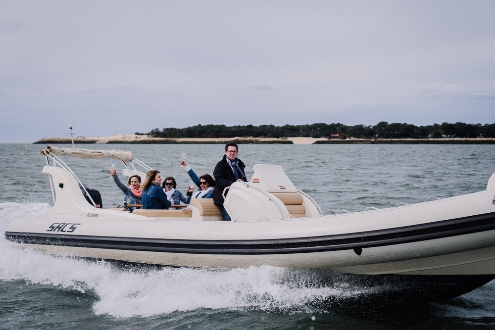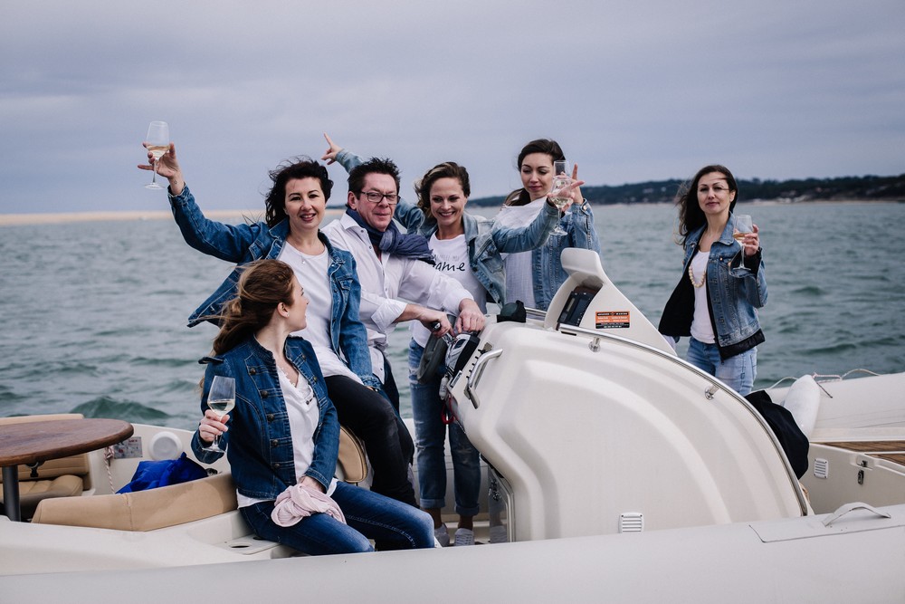 Avec le bassin d’Arcachon comme cadre pour son EVJF, il aurait été dommage de ne pas profiter de ce lieu idyllique pour faire une virée en mer ! De quoi démarrer la journée en faisant le plein de sensations et profiter du paysage avant de continuer la journée. Ici, les filles en ont profité pour boire un bon verre à bord et trinquer* à la santé de la future bride to be !