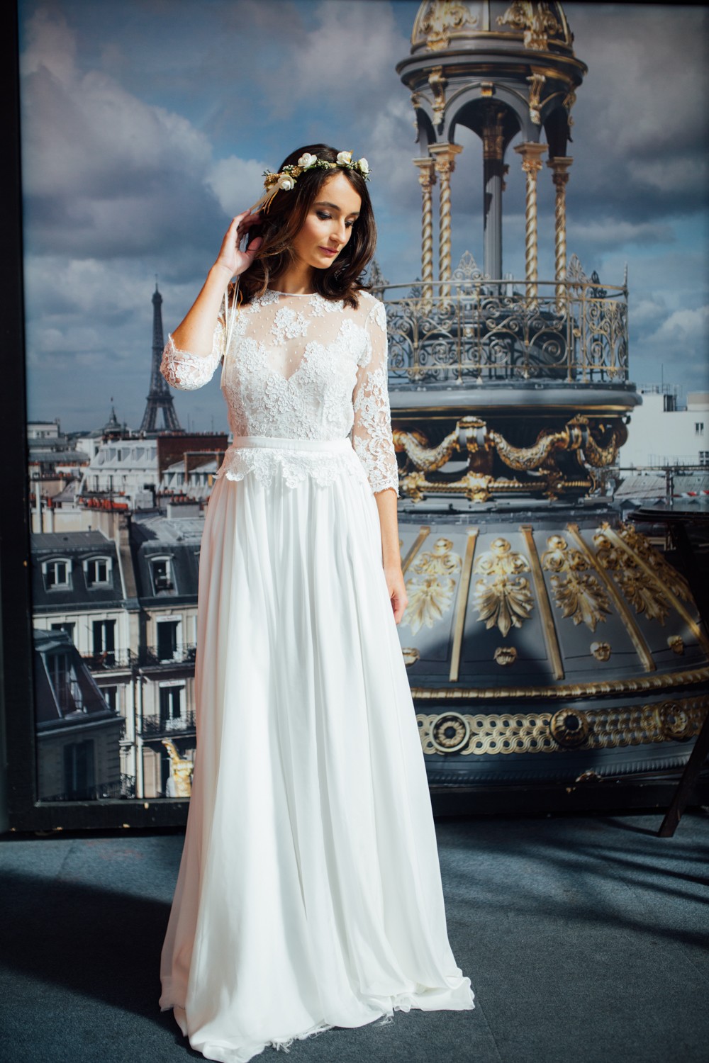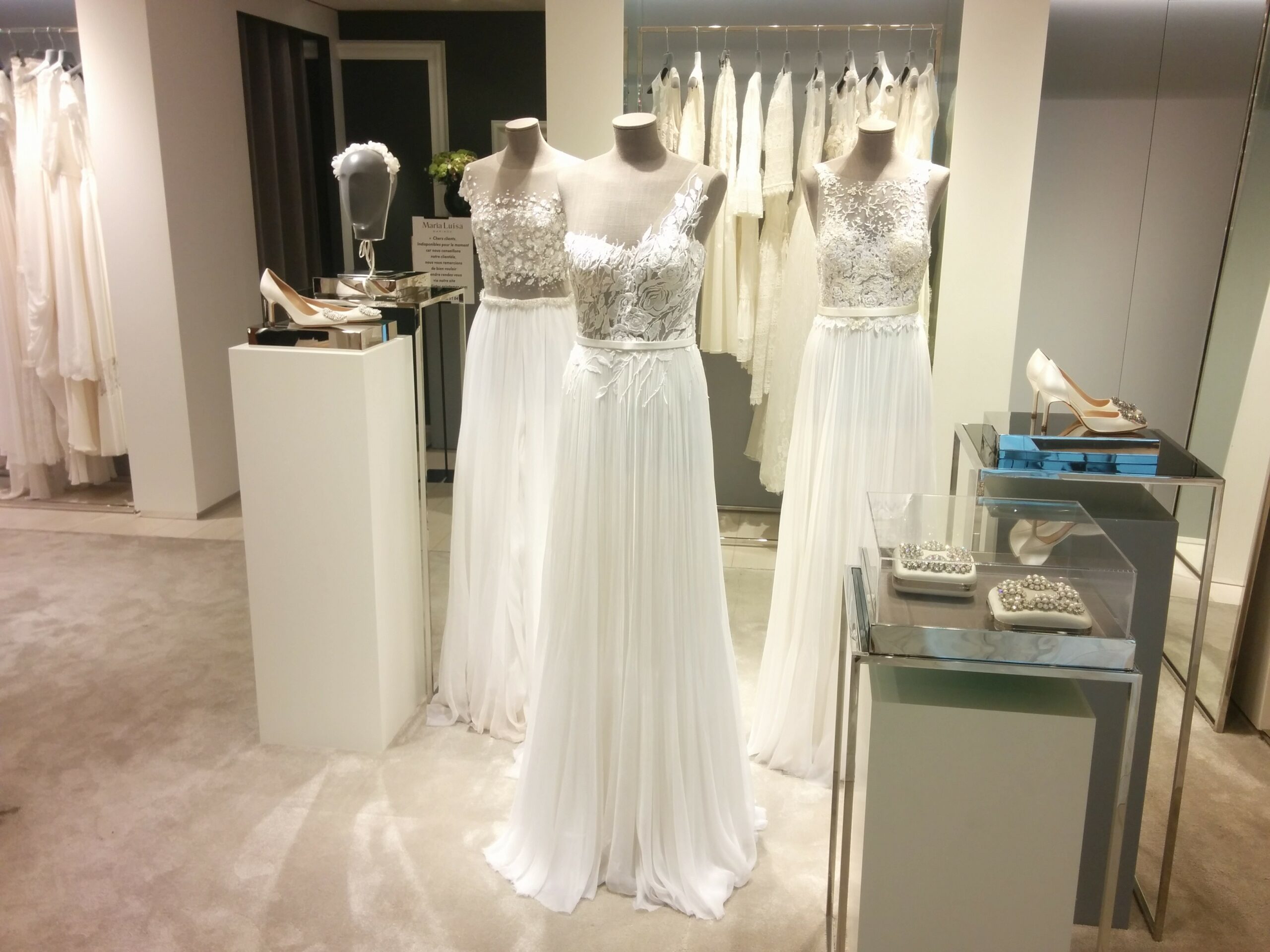 Sur place, on y trouve les collections de Laure de Sagazan, d’Elise Hameau, d’Elie Saab, de Lila de Saint Louis, de Rue de Seine et dernièrement, de Marie Laporte qui vient tout juste de rajouter son nom à la liste des occupantes de ce temple du mariage. Les accessoires de Sidonie Lemaître sont aussi de la partie, nous ne parlerons pas des chaussures ou de la lingerie, qui m’ont juste fait pâlir d’envie… (mais la réalité du portefeuille m’a rapidement ressaisie).