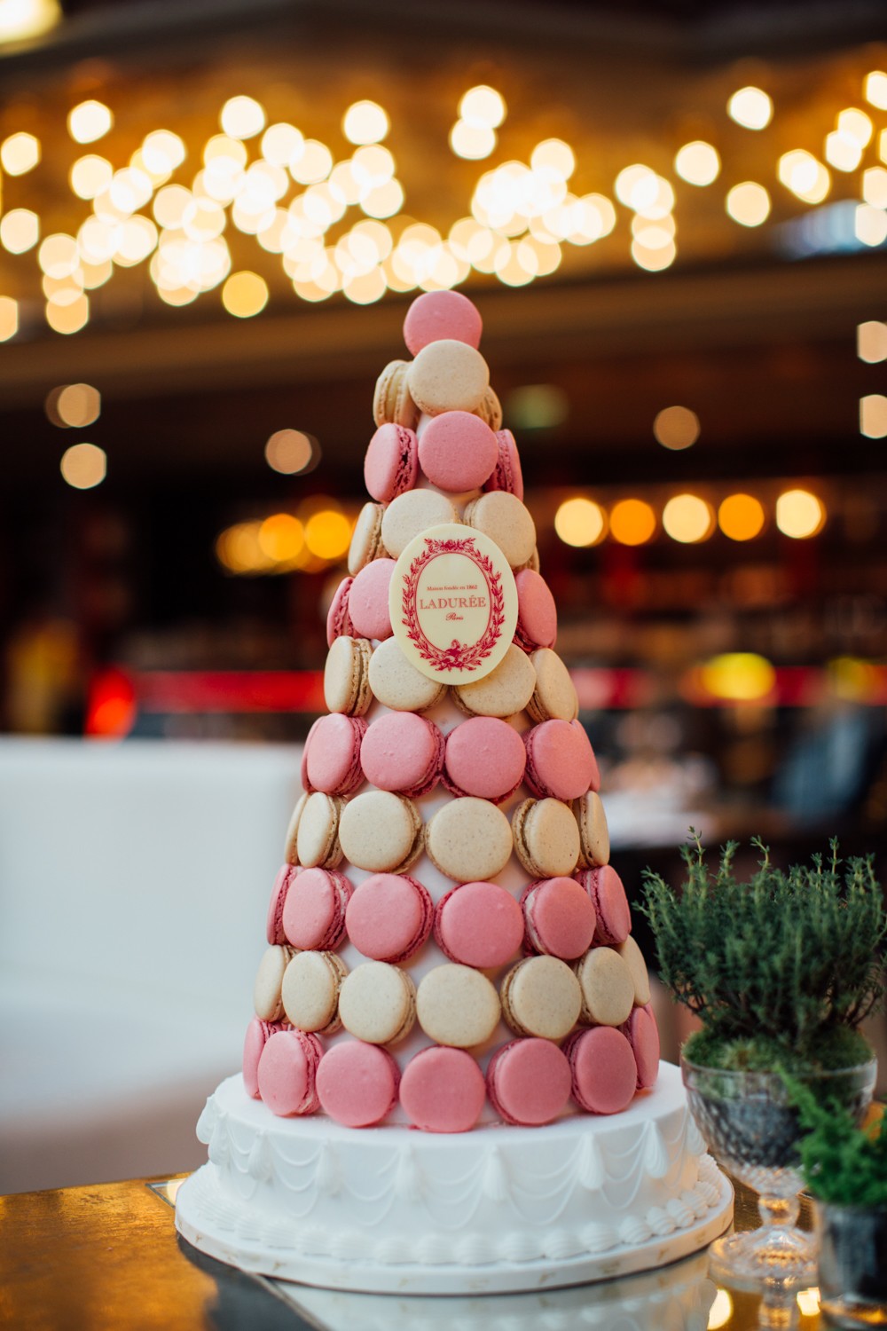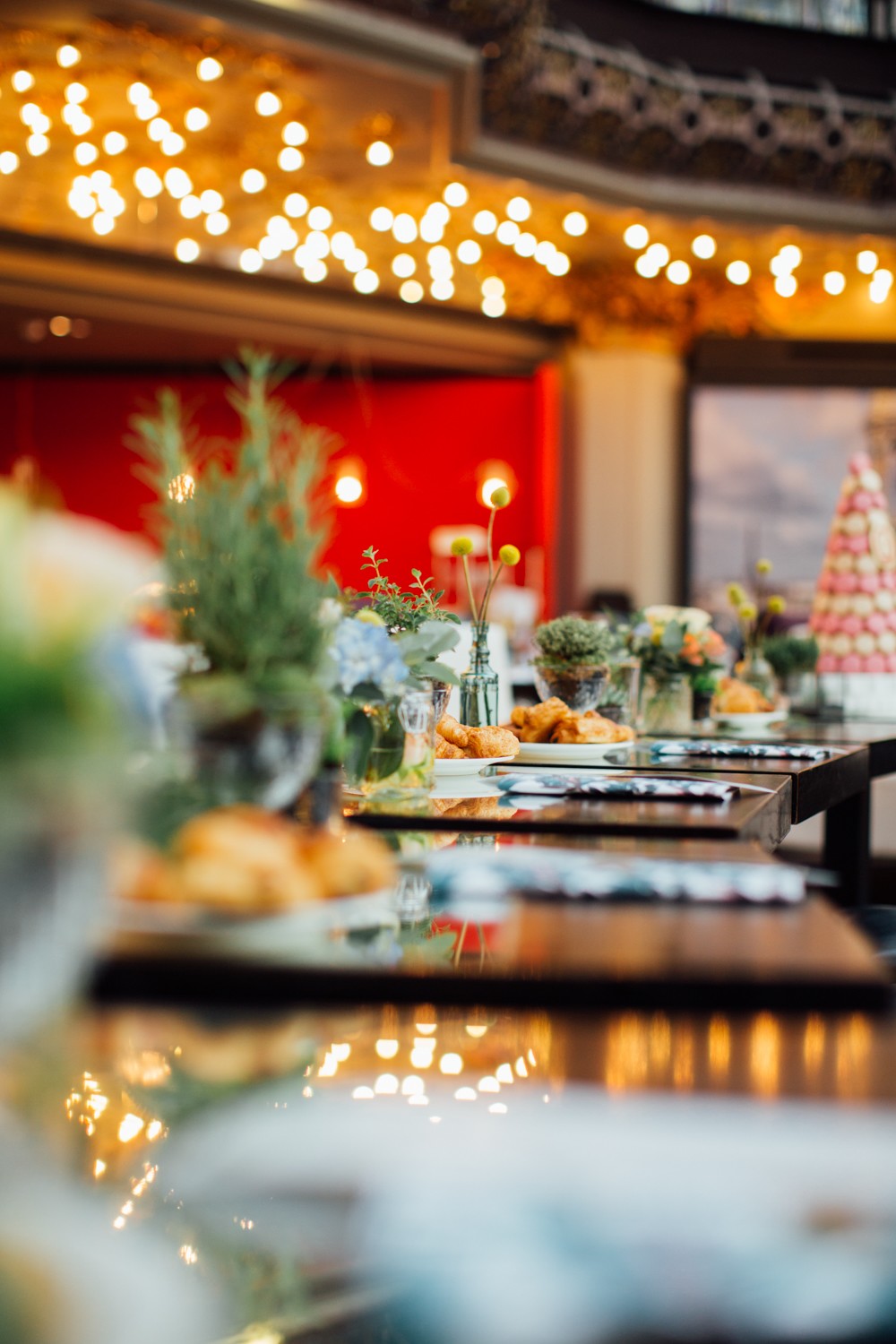 Pour cette deuxième édition du Breakfast Wedding Club, j’ai été conviée à partager un petit déjeuner tout en douceur à la brasserie du 6ème étage du Printemps Mode. Un lieu féerique où réside une superbe coupole et où se tiendra le 15 octobre prochain, le défilé des nouvelles robes de mariée de Maria Luisa Mariage, l’espace mariage du Printemps Haussmann. Sur place, nous attendaient des viennoiseries sur des tables superbement décorées par Mélanie Miguel et une pyramide de macarons Ladurée qui m’a fait faire 100 entorses à mon régime. Je pense que cette pyramide hante encore les souvenirs gourmands de toutes les convives.