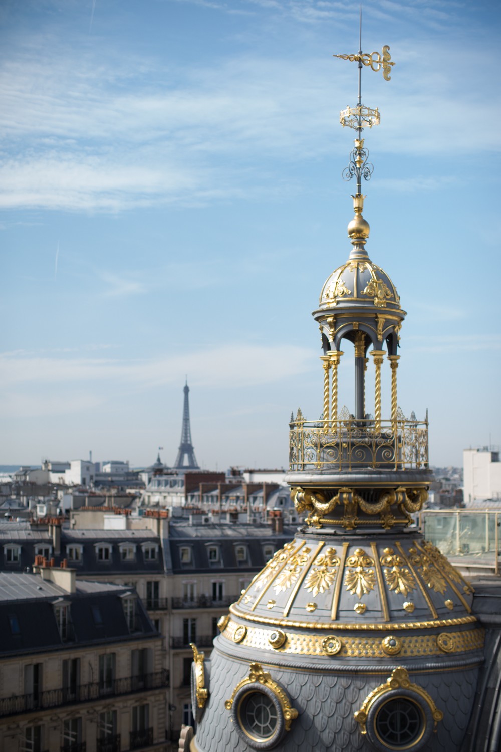 Notre escapade parisienne s’est achevée sur l’une des plus belles vues de Paris : les toits du Printemps Haussmann. On y voit en un clin d’œil l’Opéra de Paris, la Tour Eiffel, les Invalides. Rappelez-vous, c’est d’ici qu’a été réalisé le shooting de la collection 2016 d’Elise Hameau. De quoi finir cette matinée riche en inspirations et idées pour nos futures mariées !