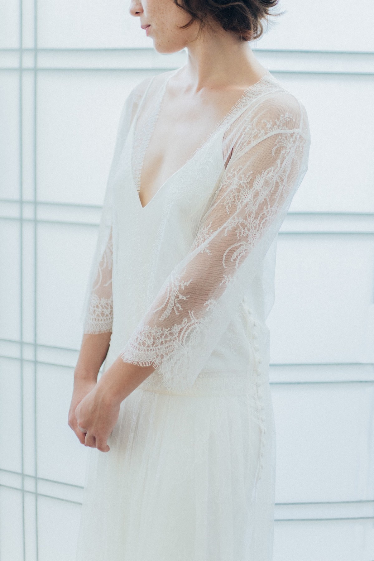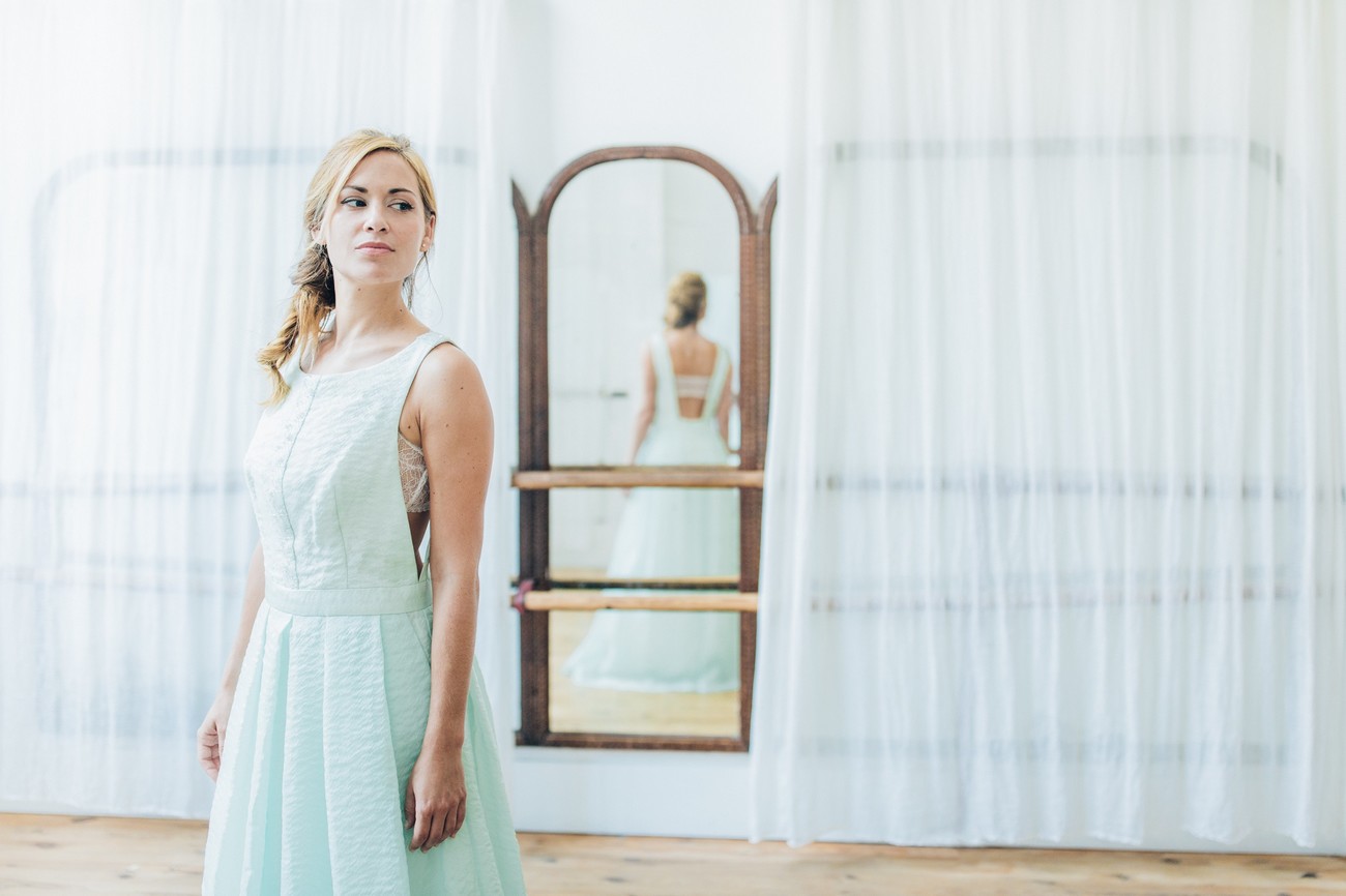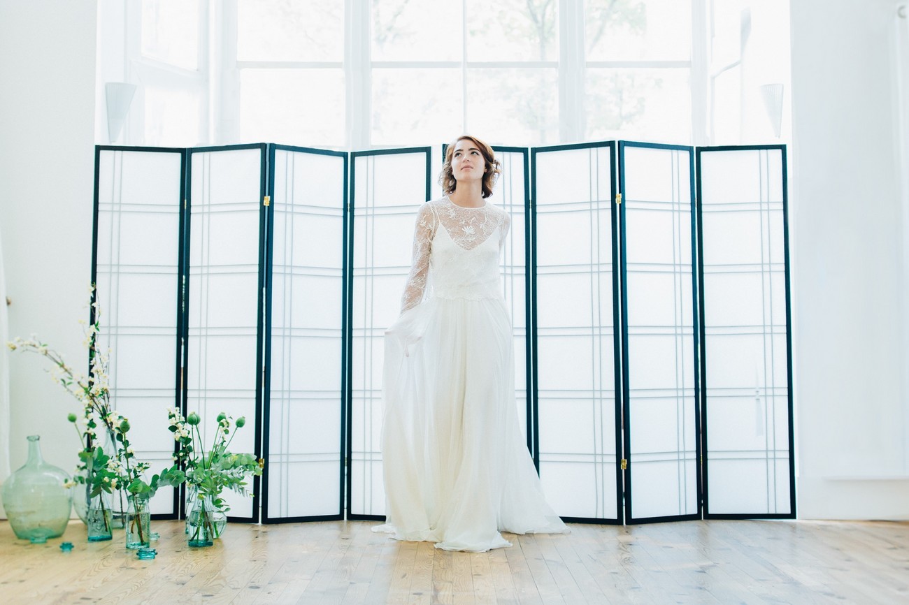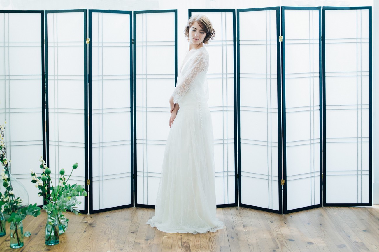 Pour 2017, Atelier Swan signe également l’apparition de robe de couleur avec un modèle en vert pastel et élargit sa gamme avec de la lingerie, parfait pour compléter sa tenue du jour J.