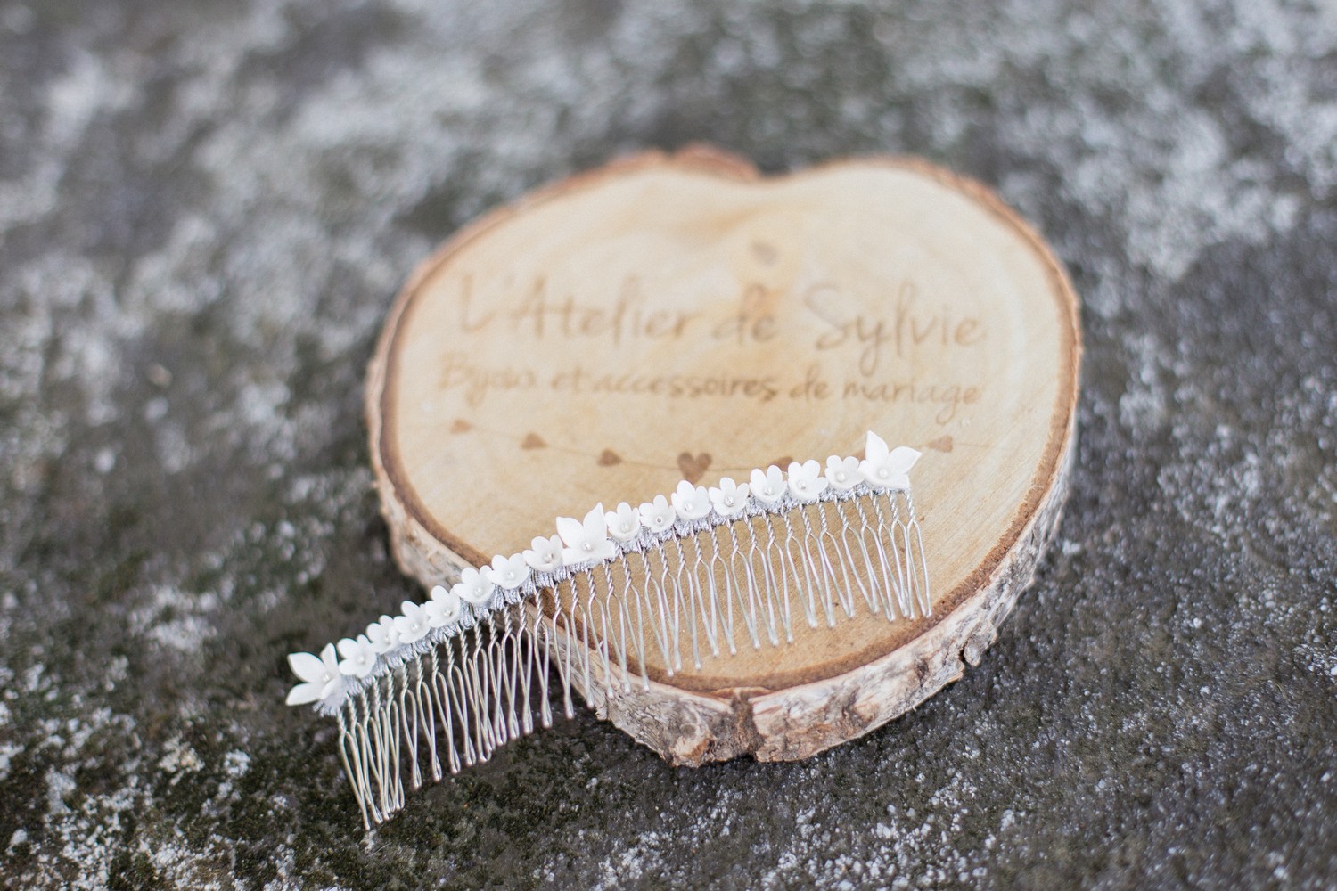 C’est depuis son atelier lyonnais que Sylvie conceptualise, dessine et créé chacun de ses bijoux. Totalement faits mains et made in France, les bijoux et accessoires de mariage sont emprunts d’une très belle délicatesse. On y retrouve des cristaux, des perles d’eau douce mais aussi de belles petites fleurs en porcelaine froide qui apportent une touche si poétique aux créations.