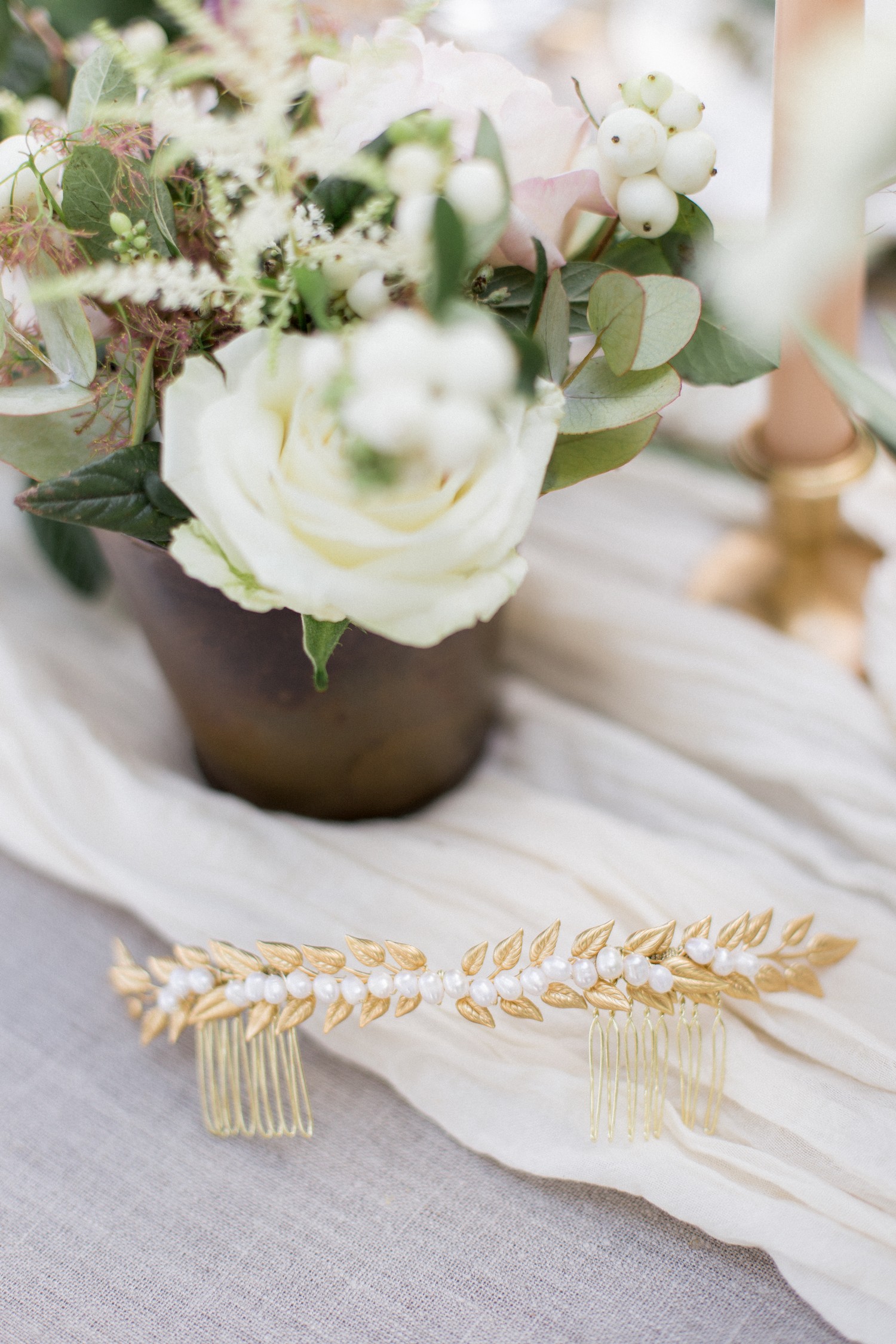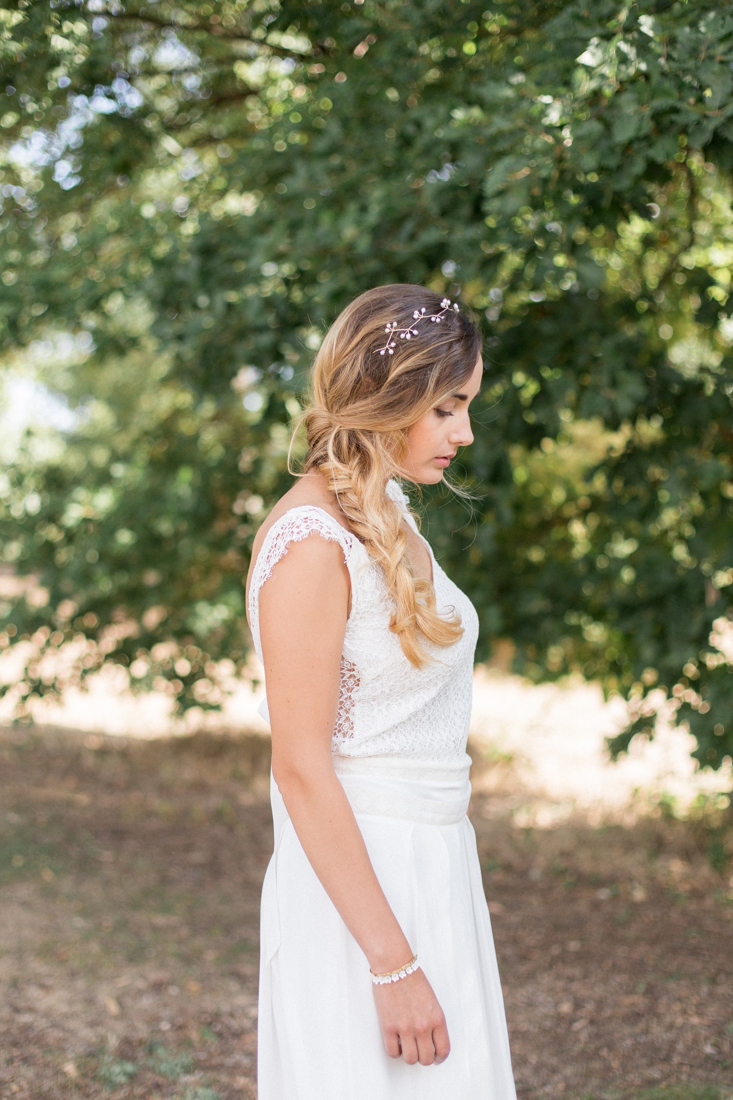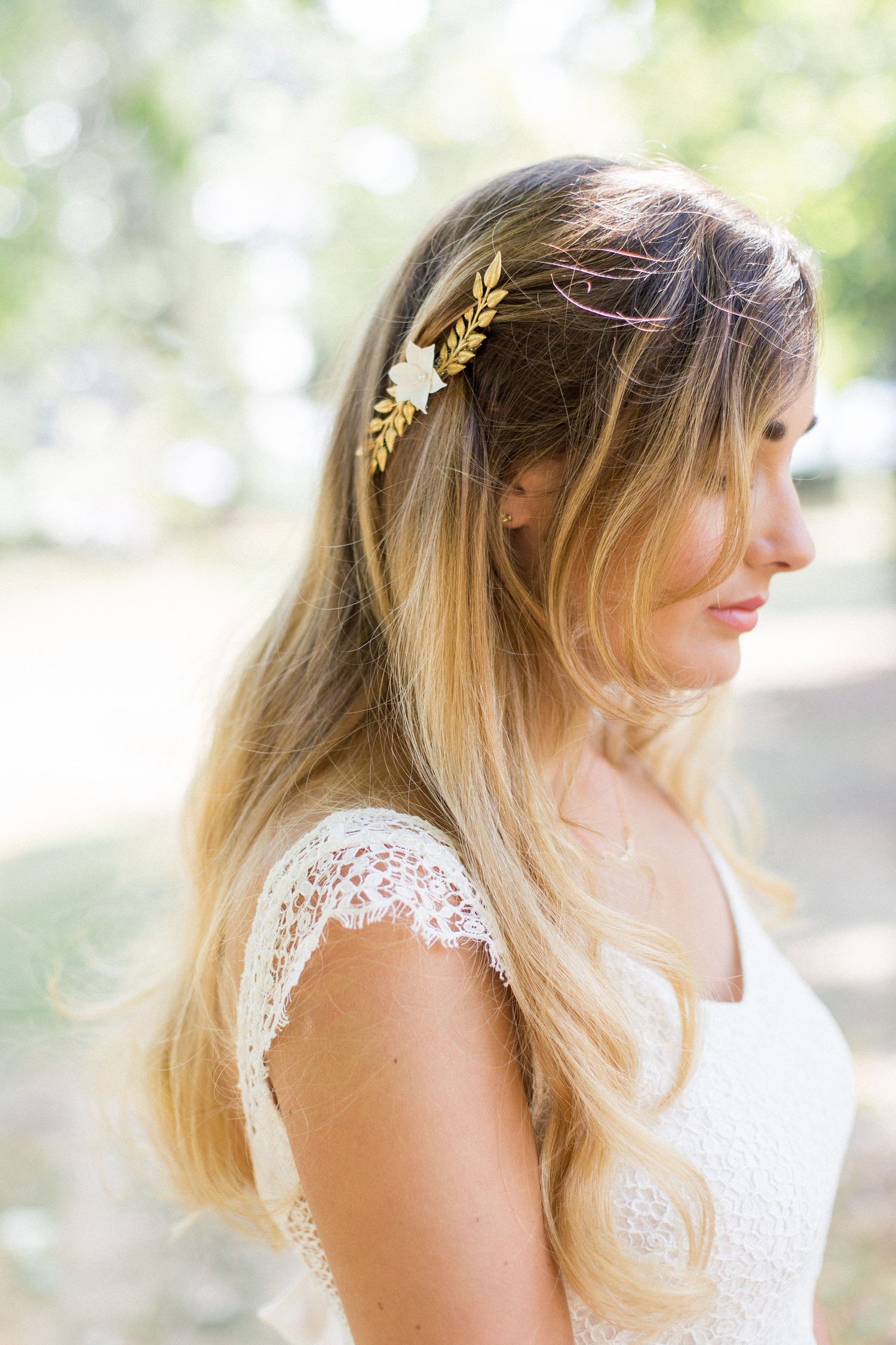 Dans le même style, j’adore le peigne « Nilla » dont le feuillage et les petites fleurs constituent un très bel ornement de chignon.