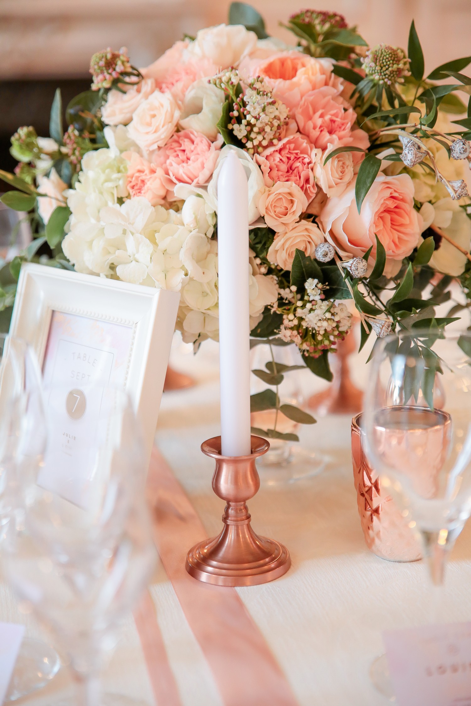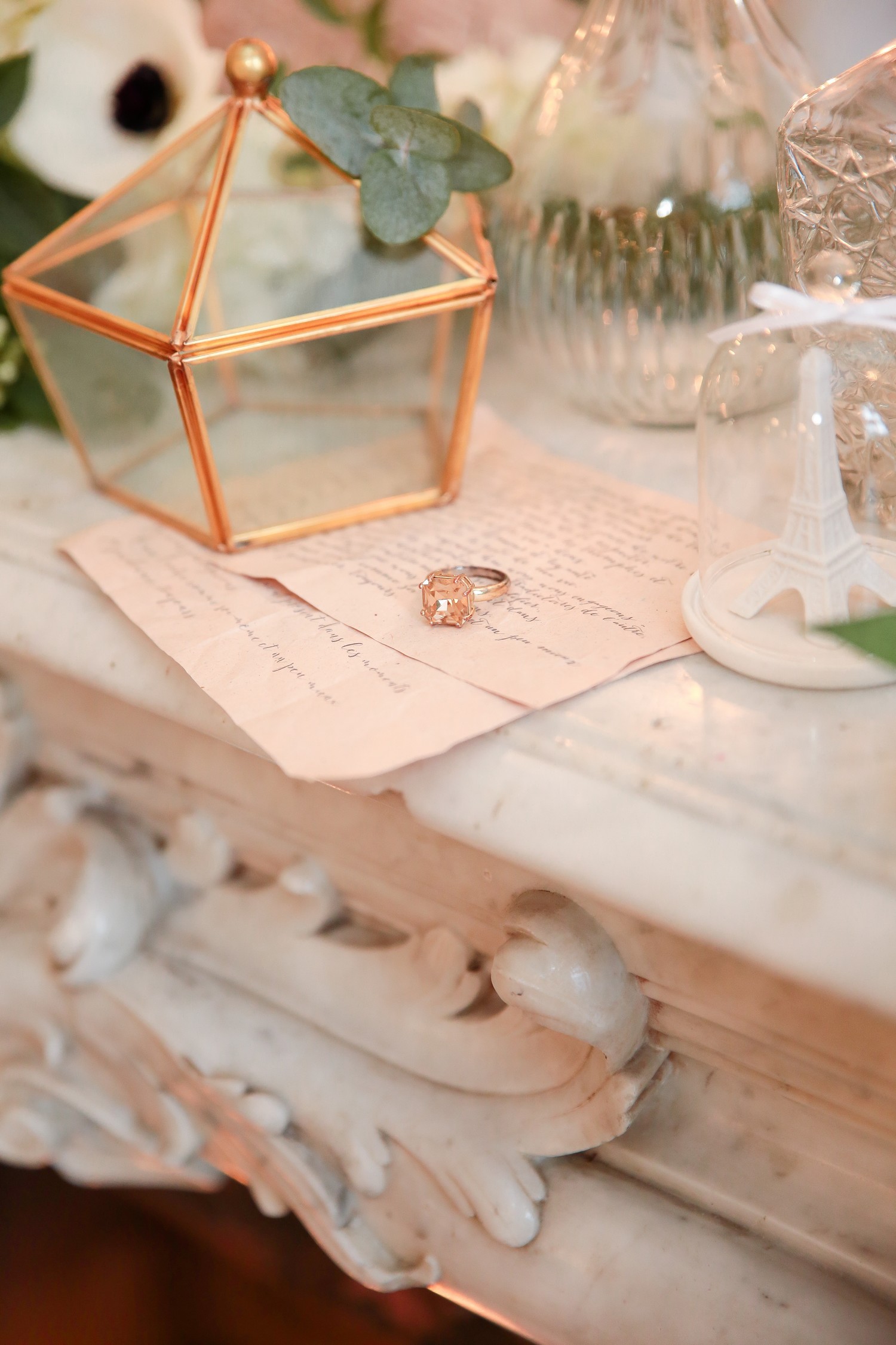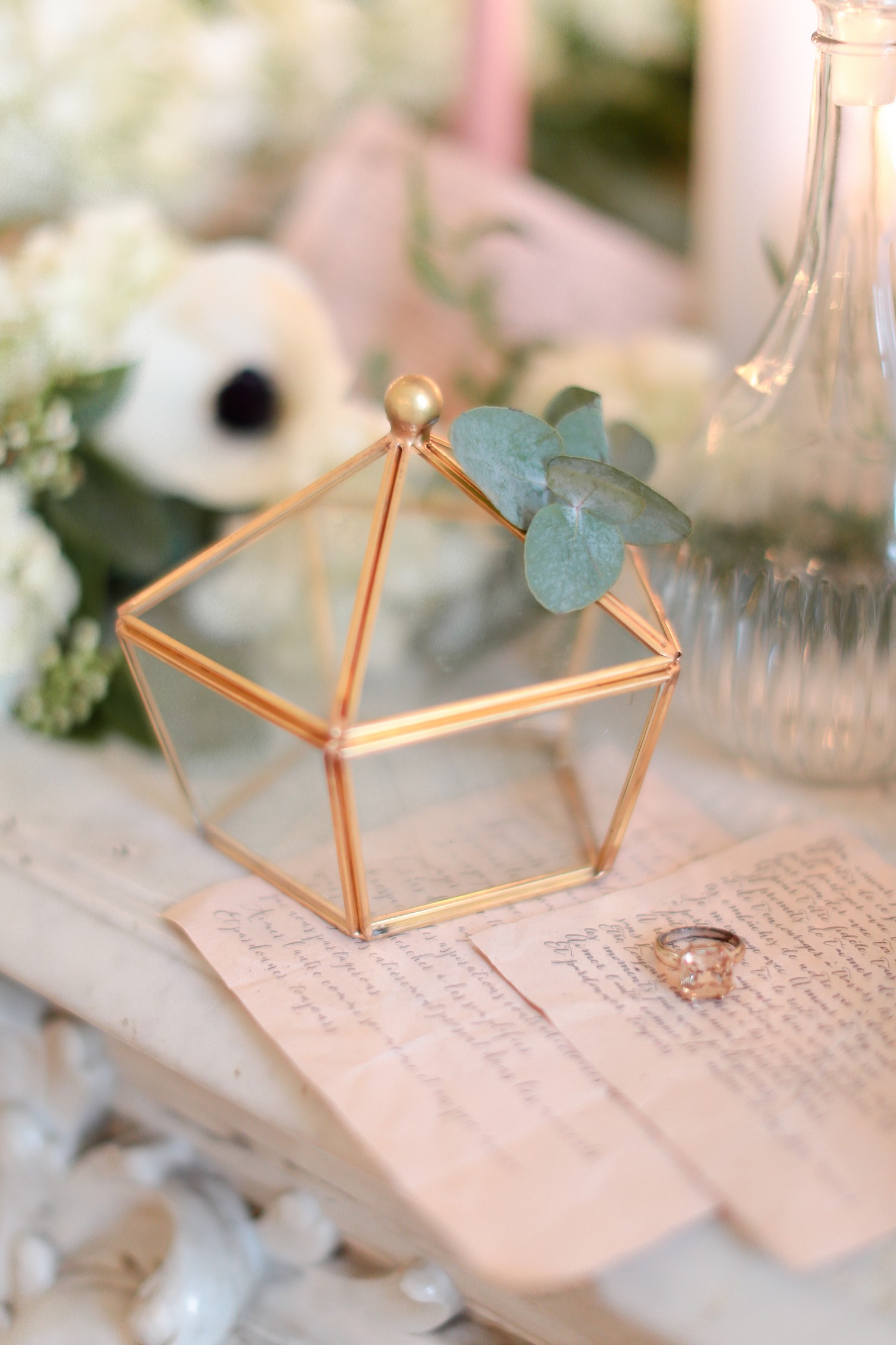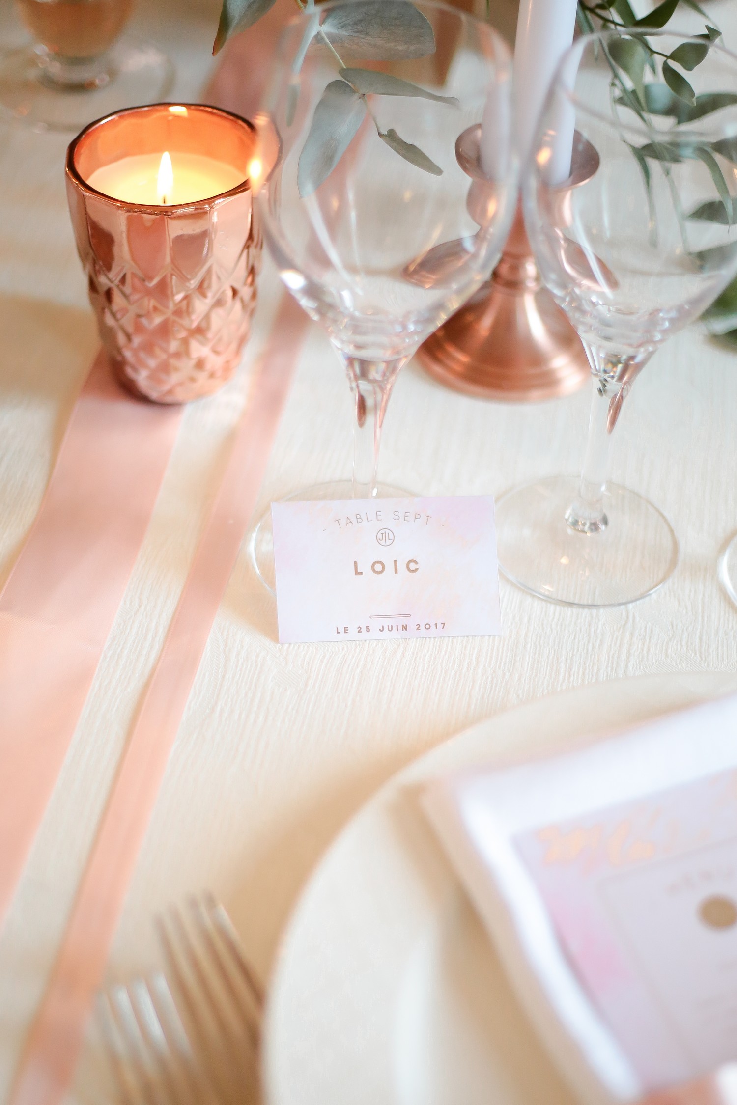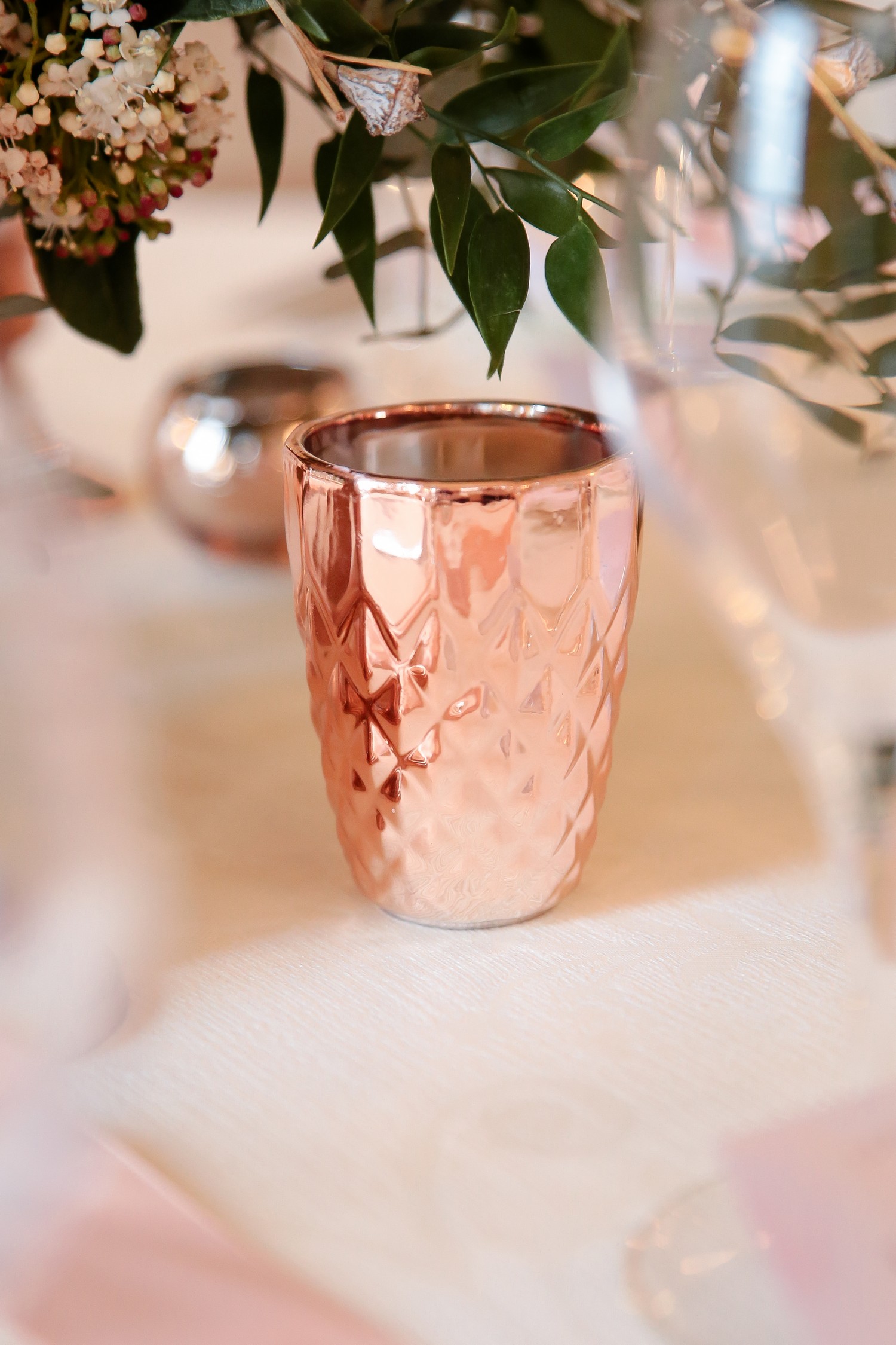 J’apprécie particulièrement les accessoires en métal rose gold qui fleurissent actuellement nos magasins de décoration et de mode. L’or rose est une matière que je trouve très belle et qui a longtemps été boudée… à tort ! Je suis très heureuse de la voir réapparaître dans les palettes de tendances mariage pour un résultat raffiné et très contemporain.