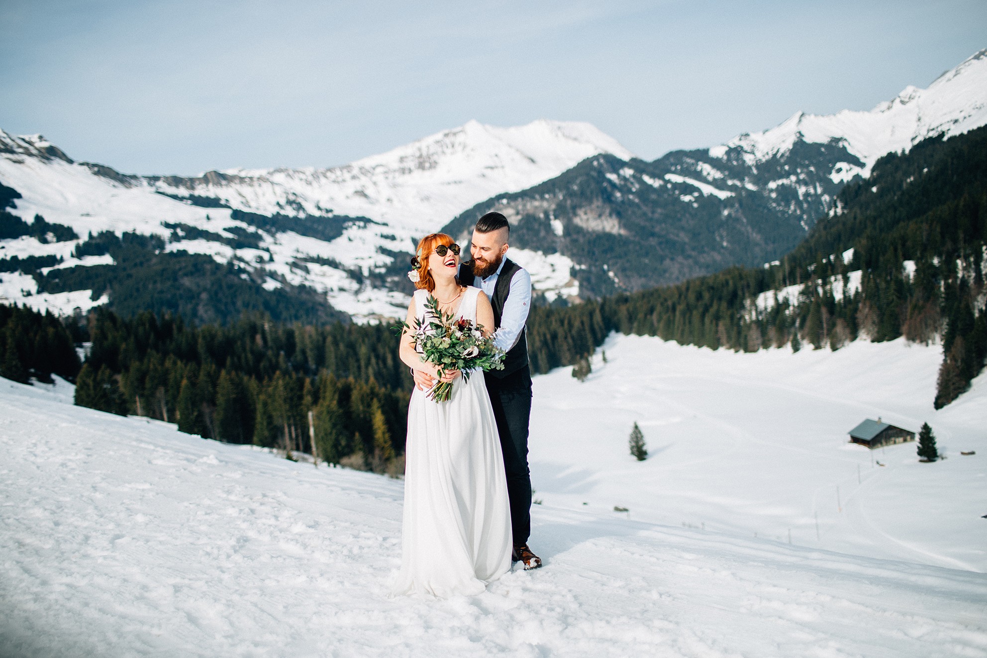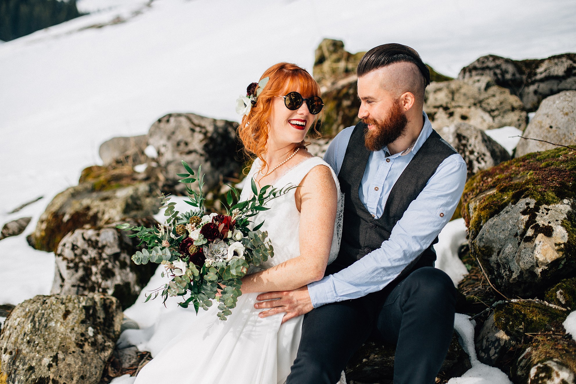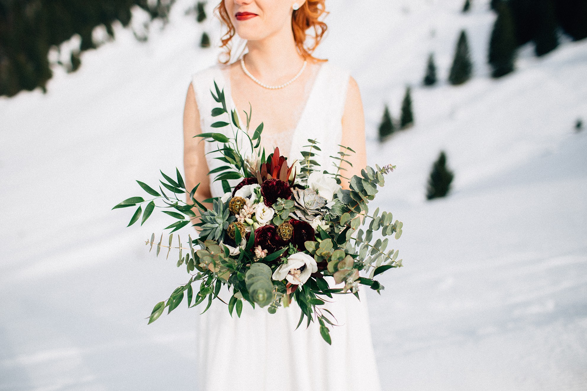 Certes, il ne faut pas être frileux mais il faut avouer qu’une cérémonie au milieu des montagnes est aussi magique d’un mariage en bord de mer. La beauté sauvage des monts, la pureté de la neige, la chaleur douce du bois… Encore mieux si une belle journée s’annonce, comme ici pendant ce shooting, où notre jolie mariée a pu revêtir des lunettes de soleil ! L’accessoire ultime lorsque l’on est un peu hipster.