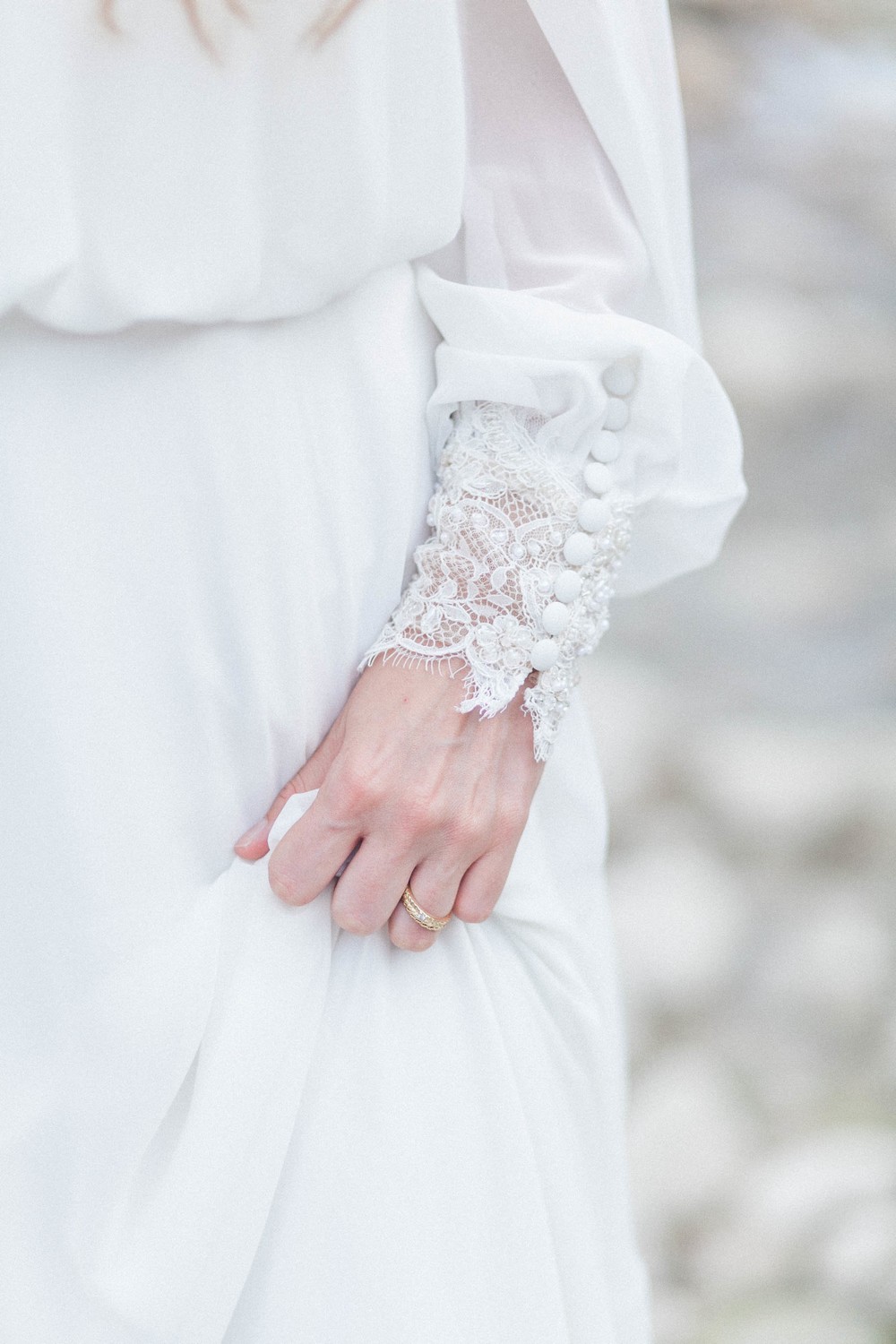 Je trouve la mariée magnifique avec sa coiffure wavy sublimée par une barrette de fleurs fraîches. La robe de mariée boho chic offre beaucoup de féminité à notre future madame avec les épaules nues, les boutons suivant les courbes et les jolies dentelles. Enfin, les compositions florales mêlent jolies roses et fleurs bohèmes dans un doux mélange de couleurs.