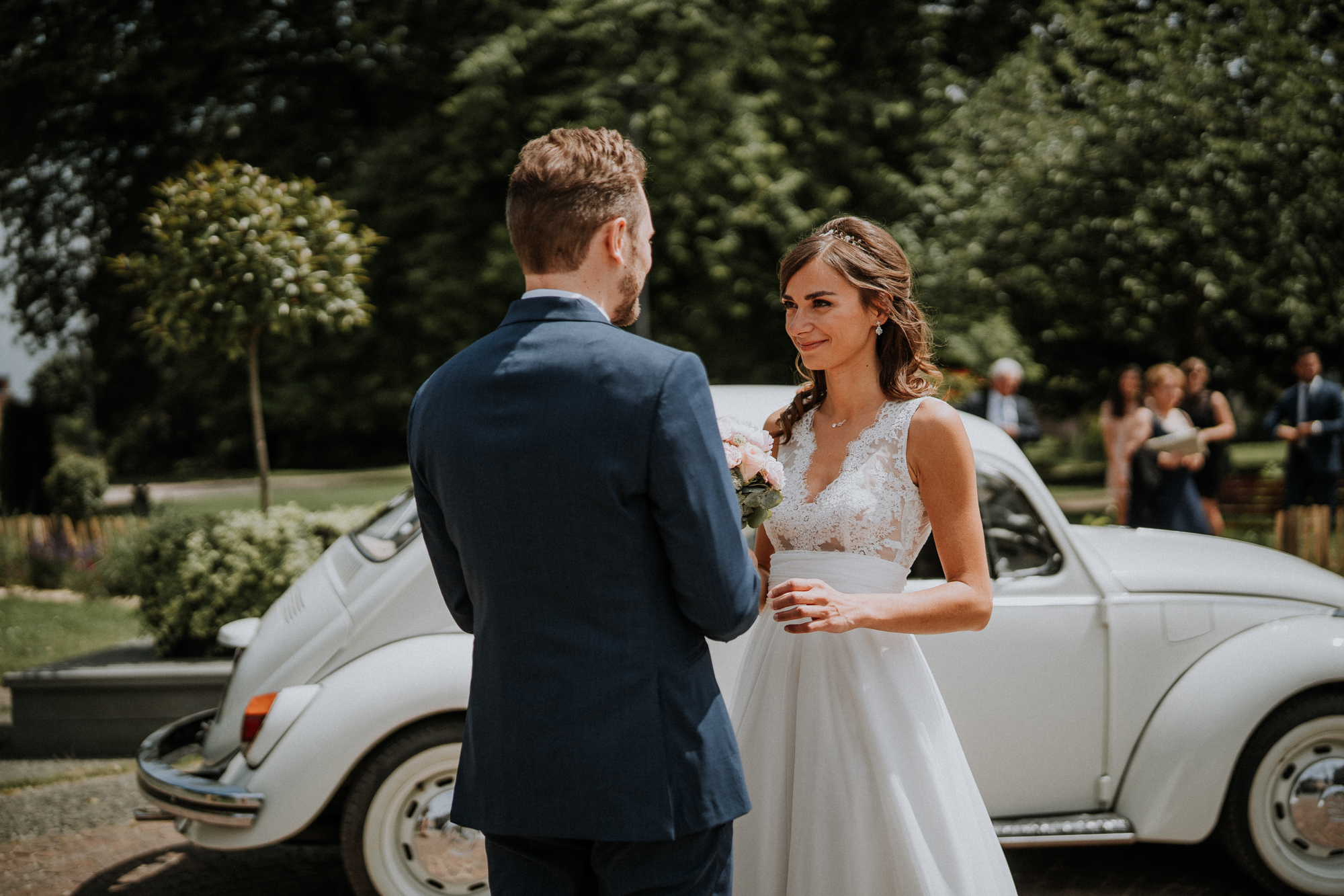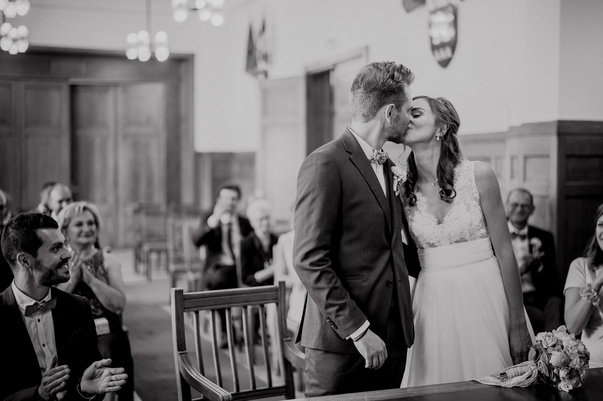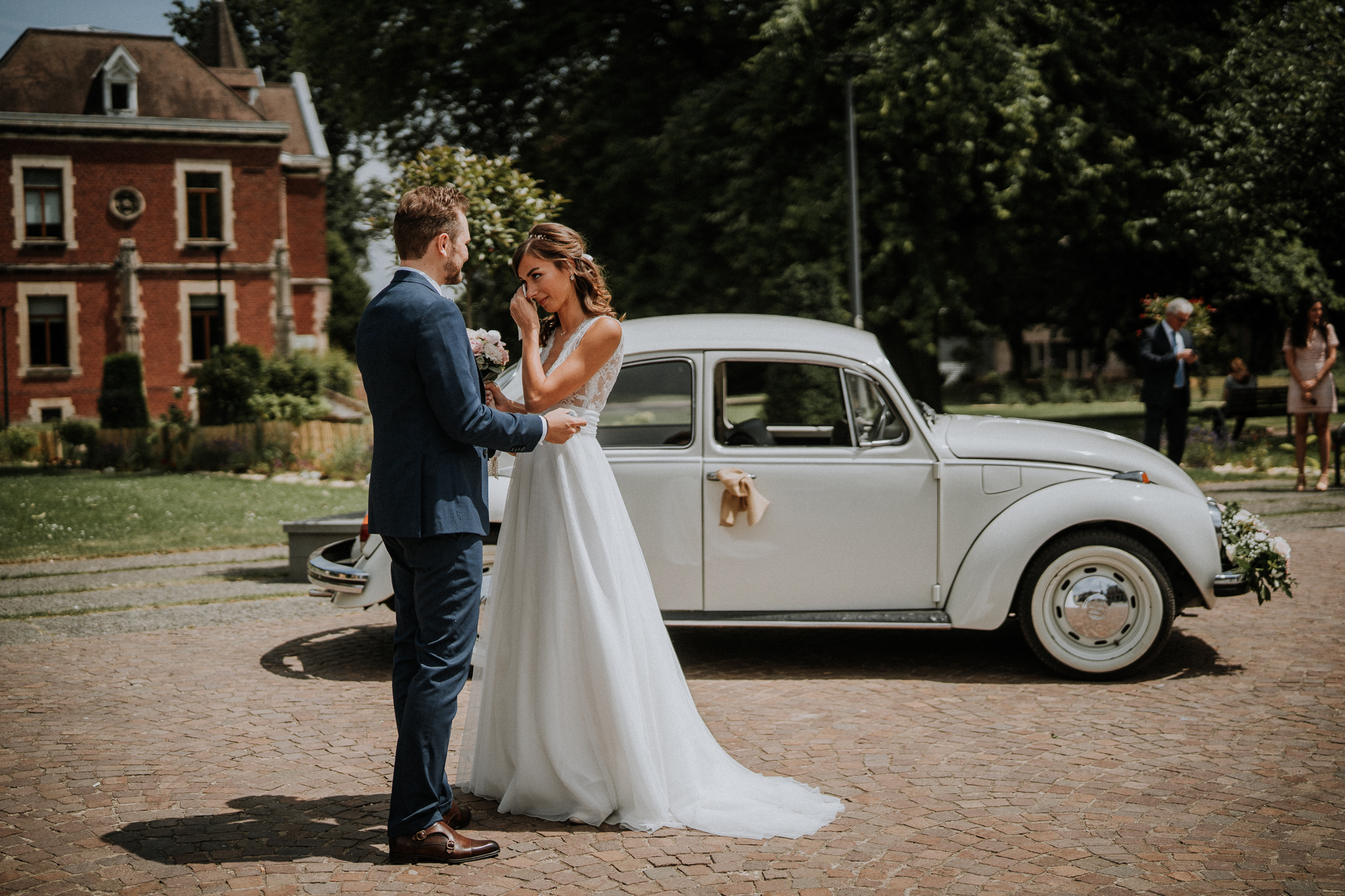 Pour Alexis, ce fût le moment où il m’a découverte en mariée. Nous nous étions donnés rdv dans un petit parc devant la mairie pour la remise du bouquet. Ce fut un moment très fort.