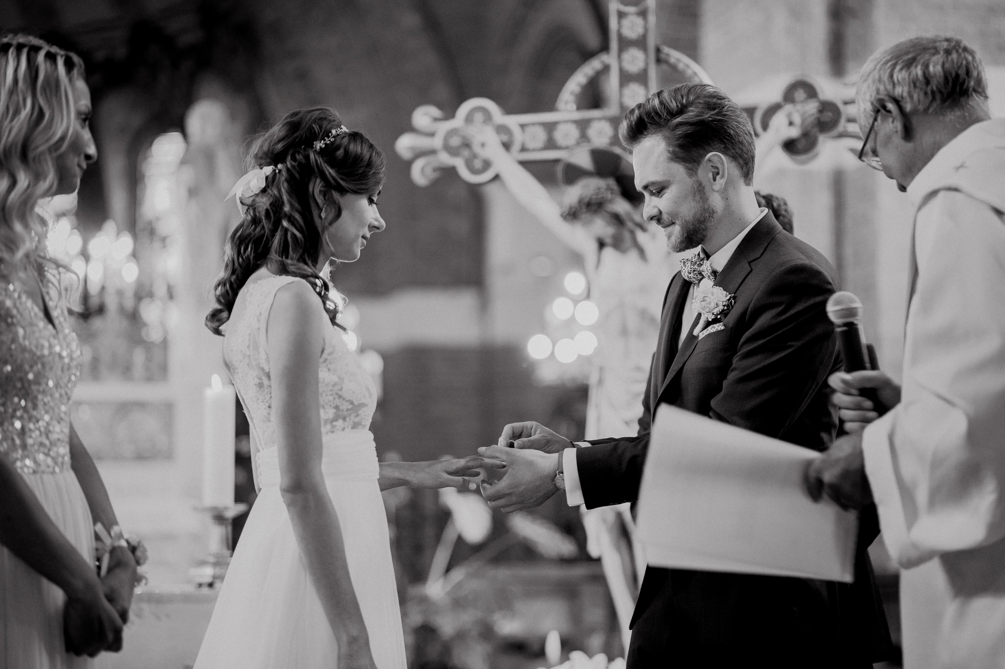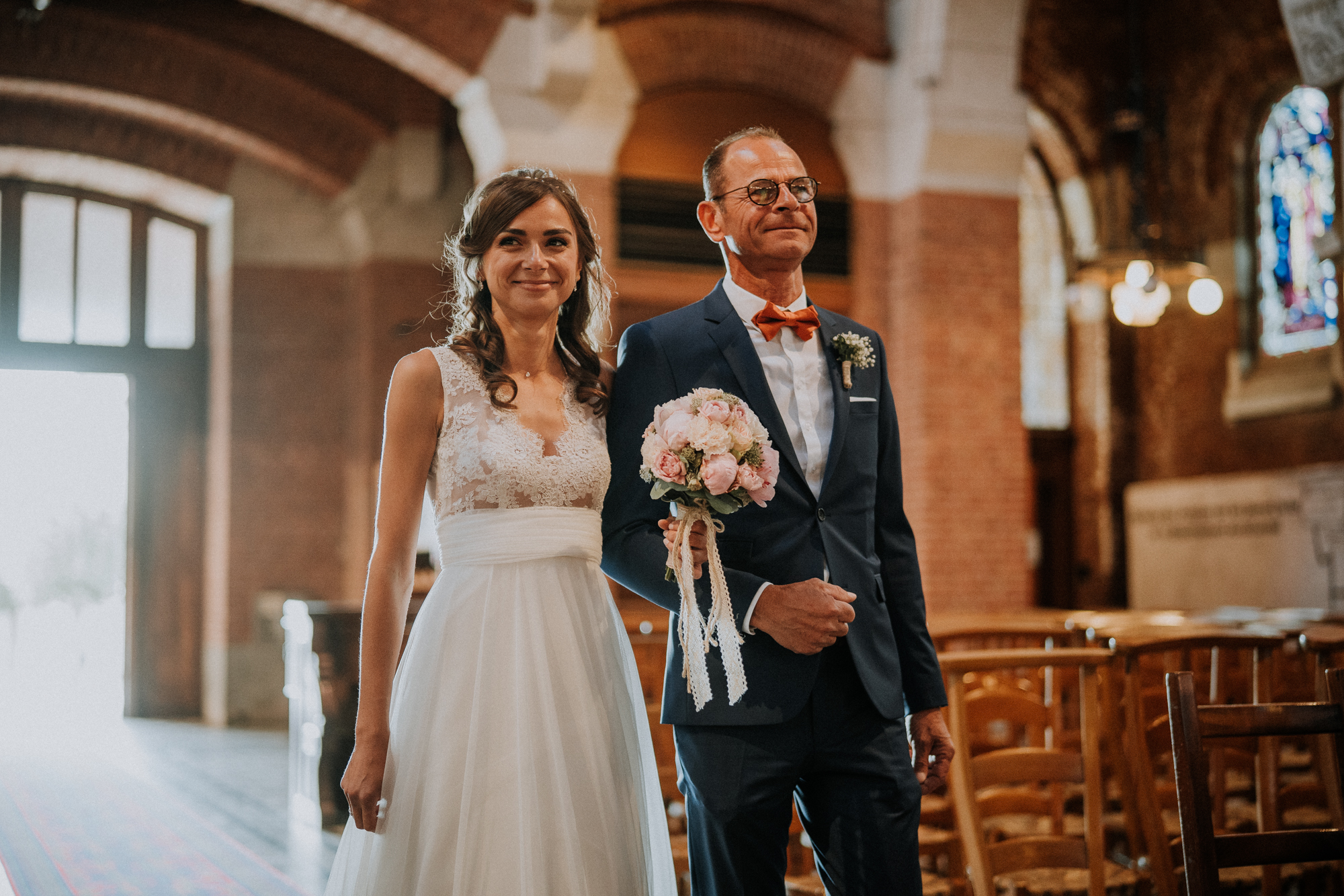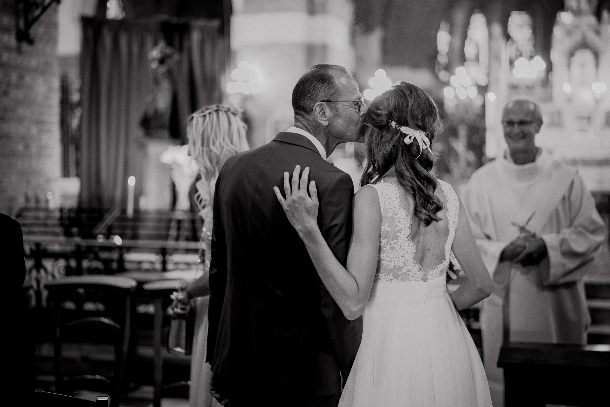 Pour moi, ce fut la cérémonie religieuse. L’arrivée dans l’église était riche en émotion, découvrir tous nos proches réunis et heureux m’a beaucoup ému… puis surtout découvrir mon futur mari à l’autel.