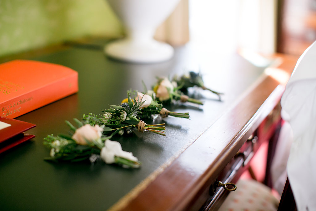 - Costume et accessoires du marié : les Francs-Tireurs, à Paris – costume trois pièces sur mesure, un grand merci à Yves qui a su s’adapter et être efficace sur le dernier mois avant le mariage pour réaliser le costume de Max à sa taille. Cravate verte en soie tissée et boutons de manchettes : boutons en forme de boussole offerts lors d’un voyage au Portugal.