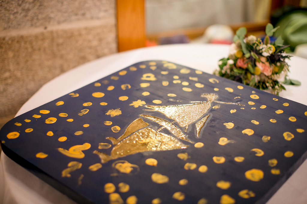 Nous avons essayé de penser au maximum à « l’après-mariage » pour tout ce qui est décoration afin que tout soit réutilisable et utile. Entre autres, « l’arbre à empreinte » était un plateau tournant avec notre symbole afin qu’ensuite nous nous en servions pour les grands repas à la maison et la balancelle (arche de cérémonie), nous l’avons imaginée pour qu’ensuite elle se retrouve dans notre jardin avec nos futurs enfants dessus ! (Rendez-vous ici pour découvrir en détail la cérémonie laïque de Faustine et Maxime).