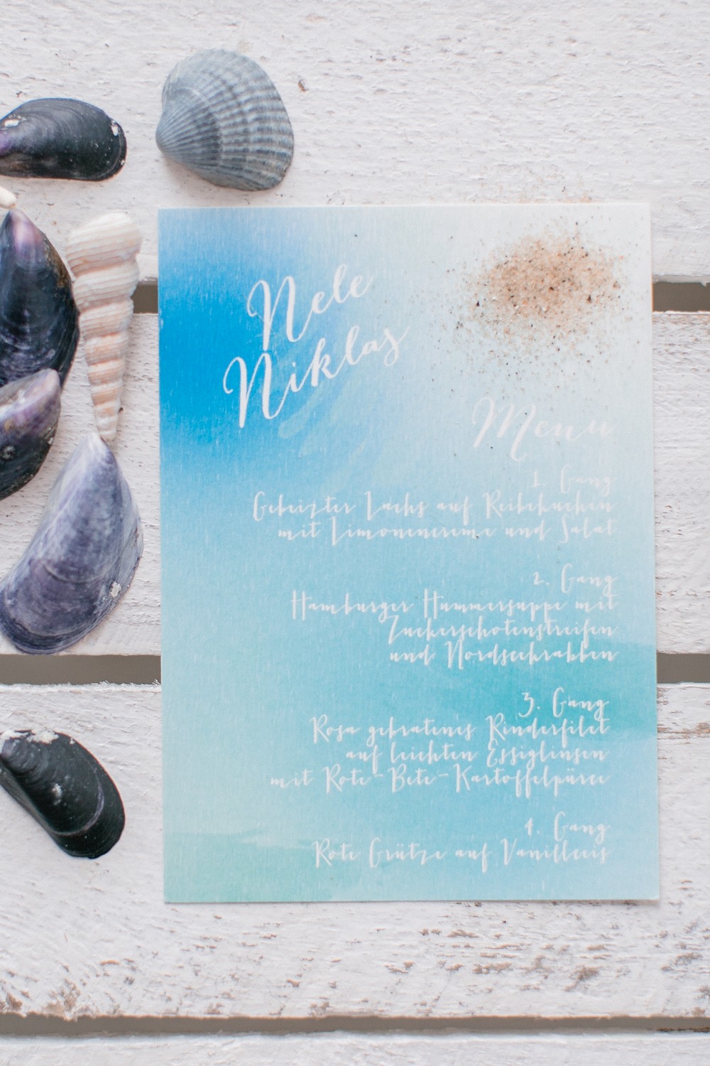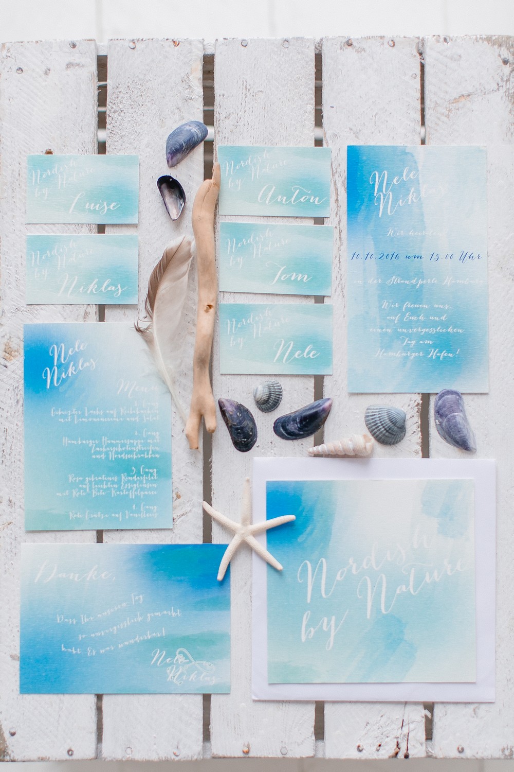 J’ai découvert ce shooting grâce à Crystelle, de Petite Marquise-Carterie de mariage qui signe ici une très belle collaboration. Avec la création d’une très belle papeterie de mariage, Crystelle utilise la douceur et la transparence de l’aquarelle pour symboliser la douceur de la mer et j’adore le résultat !