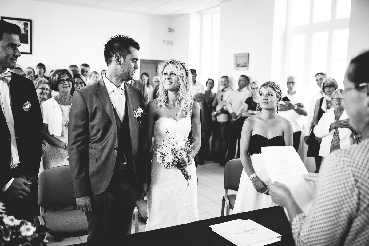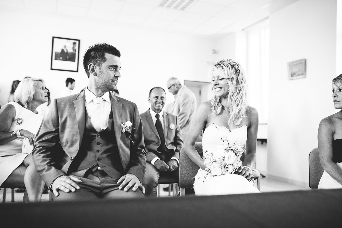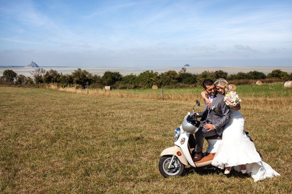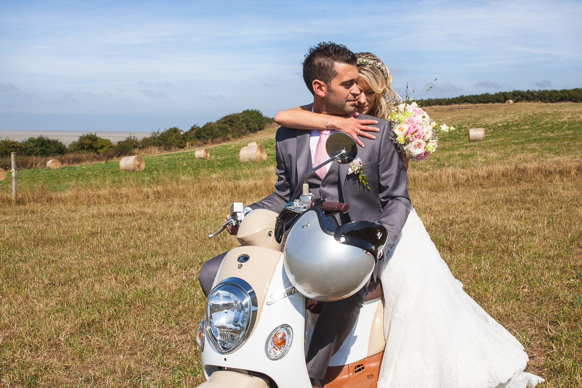 Pour ma part, ce fût un petit moment d’intimité avec mon mari, le seul moment que nous avons pu partager seuls pendant cette journée. En chemin vers la Mairie sur notre Vespa (un petit clin d’œil à notre faire part), alors que nous étions en pleine campagne, lui en costume et moi en mariée, il m’a dit : « Tu as vu comme nous sommes libres, là, tous les deux… et on va se marier aujourd’hui ». Ce fût un moment très fort en émotion.