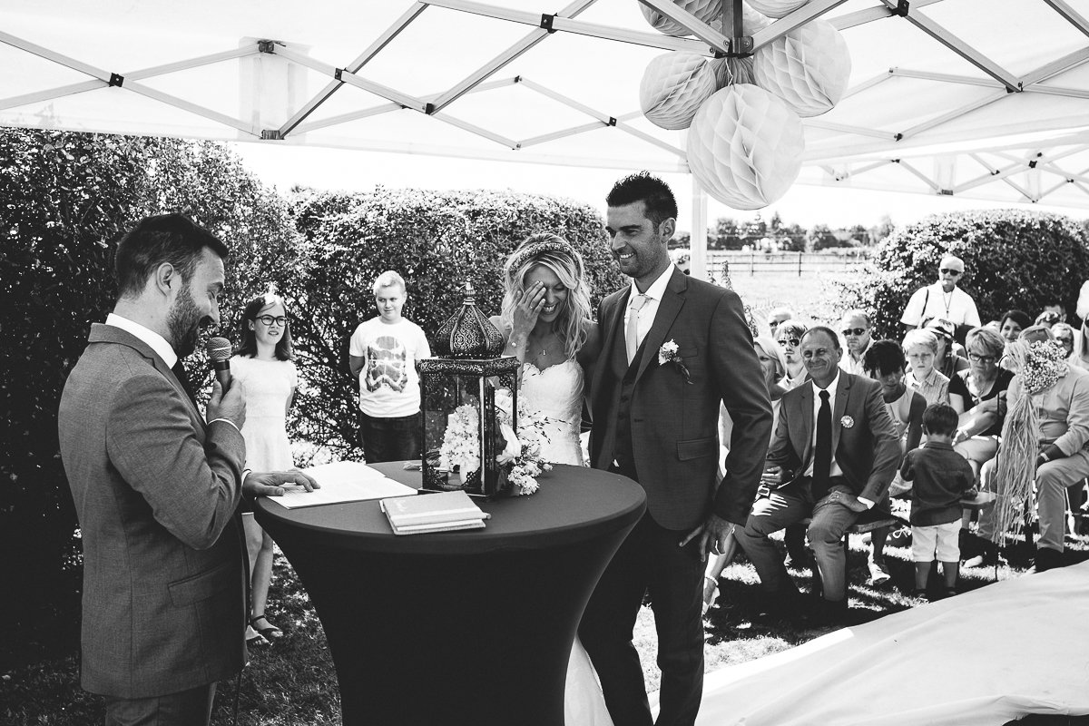 Pour Julien, le moment le plus riche en émotion a été l’échange de nos vœux lors de la cérémonie laïque célébrée dans le jardin.