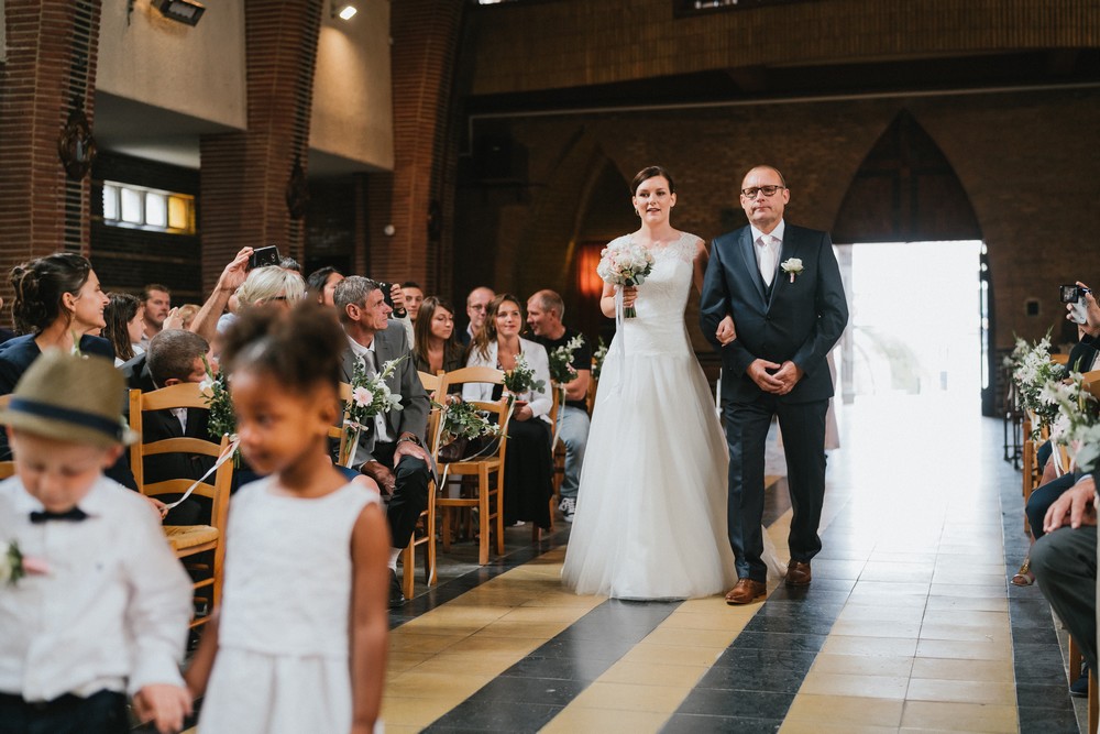 L’entrée de Mélanie à l’église, elle a changé de tenue après la mairie, j’ai été très ému par la découverte de sa robe !