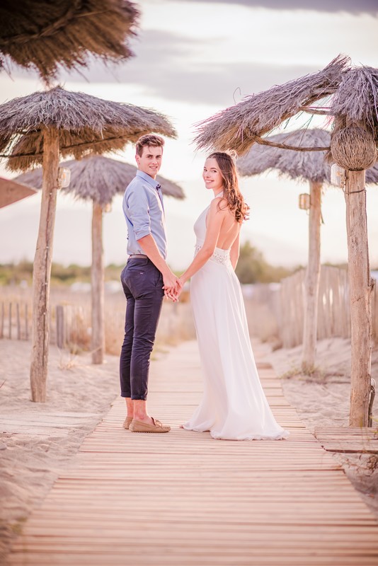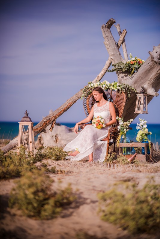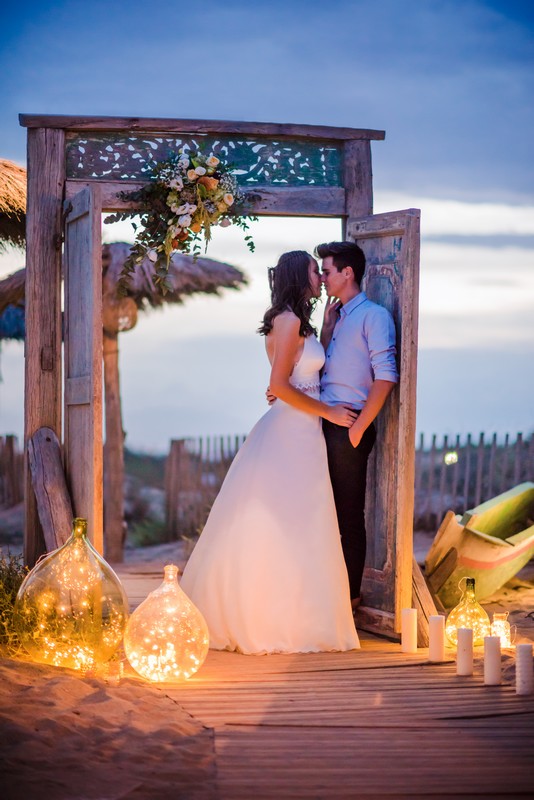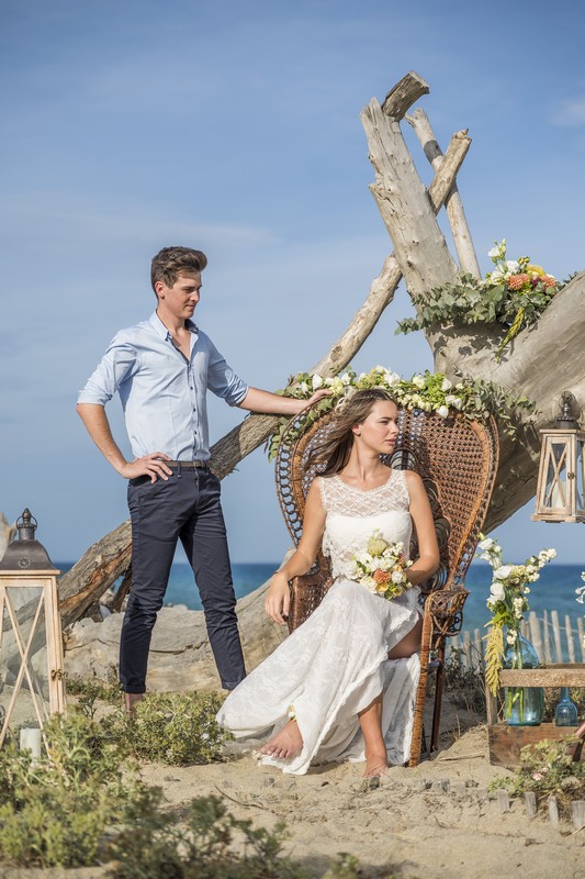 Avec les cérémonies laïques, il est tout à fait possible de célébrer votre mariage sur du sable chaud ! Comme ici à Torreilles, où le Maya Club mets à la disposition des mariés sa plage privée, pour une cérémonie en toute intimité, face à la mer… Bois flotté, dames Jeanne et fauteuil Emmanuelle apportent à ce mariage une ambiance marine et naturelle.