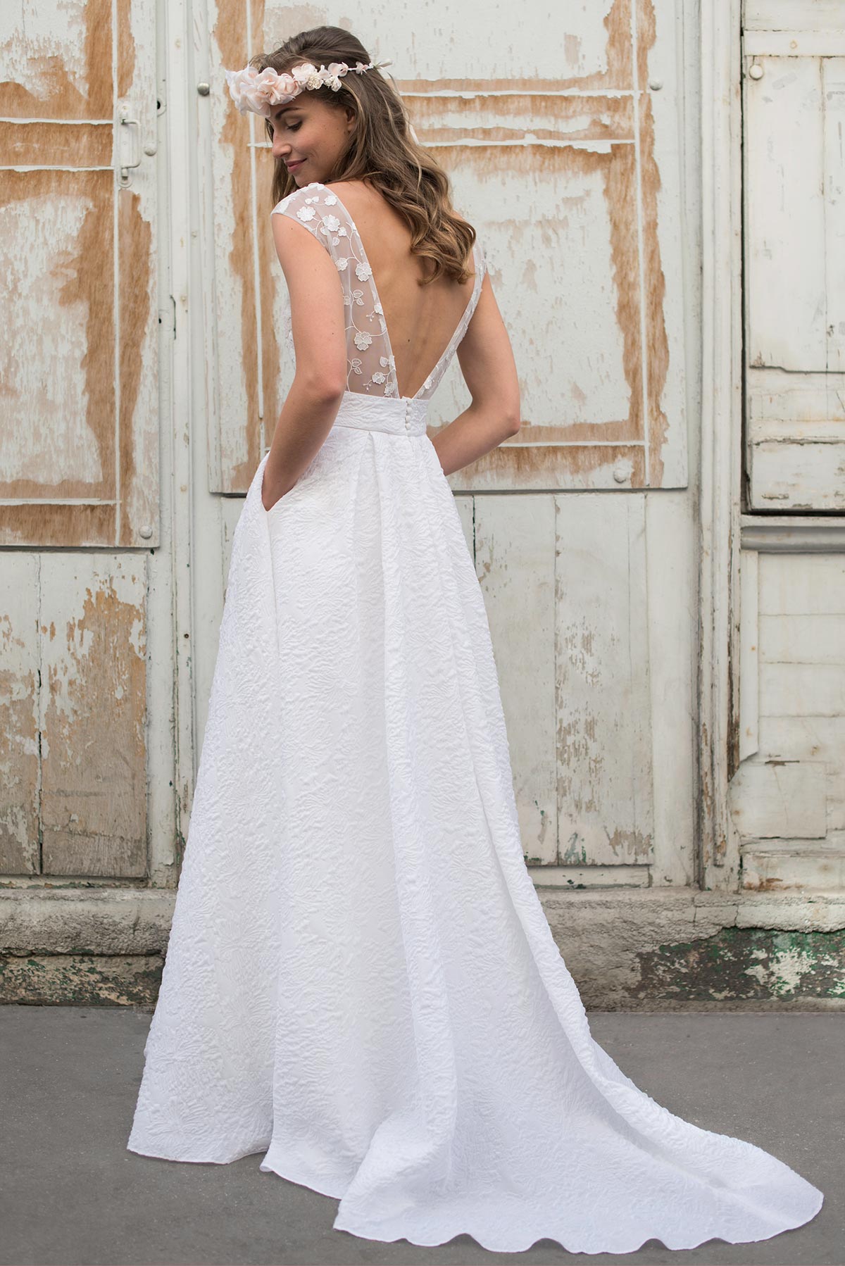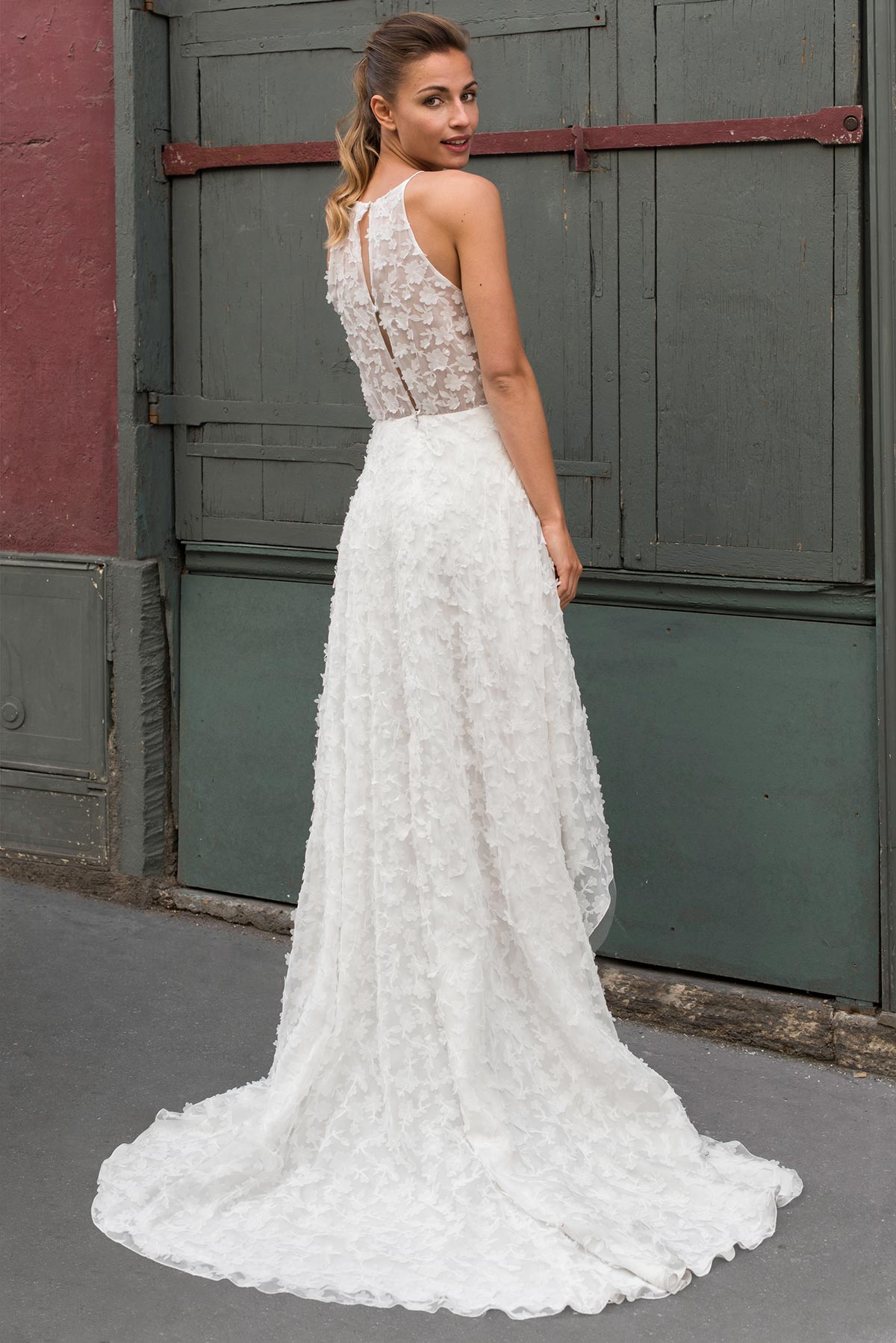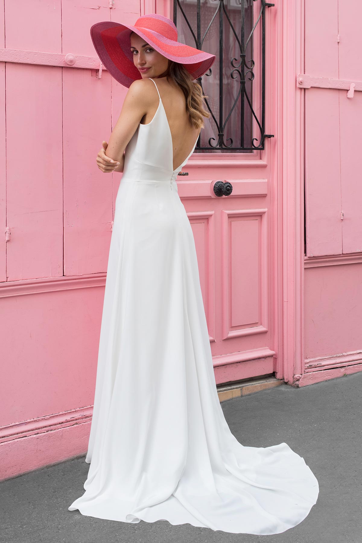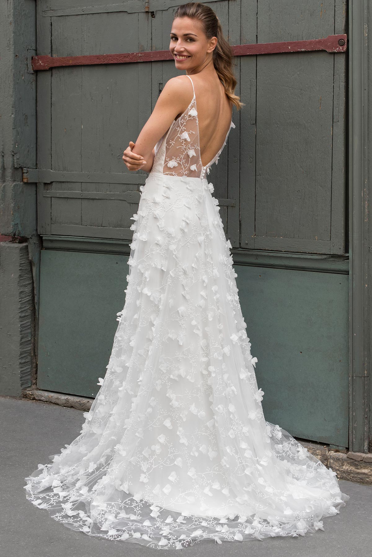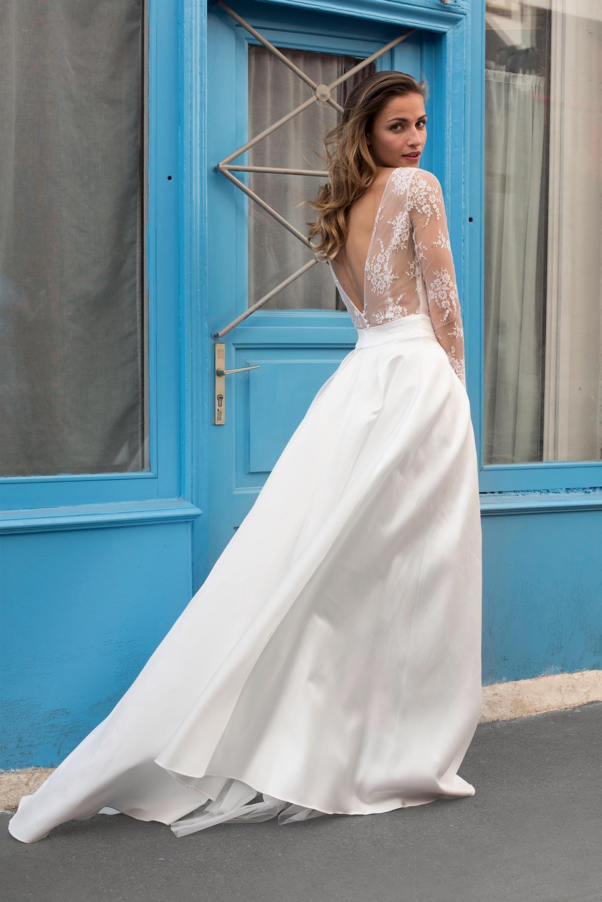 Ma mariée 2018 est amoureuse et libre, épanouie et indépendante. Elle aime les belles matières sans pour autant que celles-ci soient figées, au contraire, elle aime que sa robe suive le mouvement, vive avec elle. »