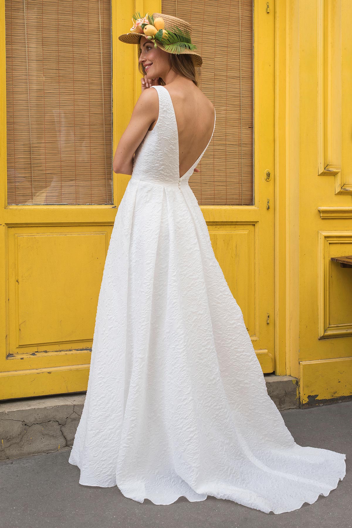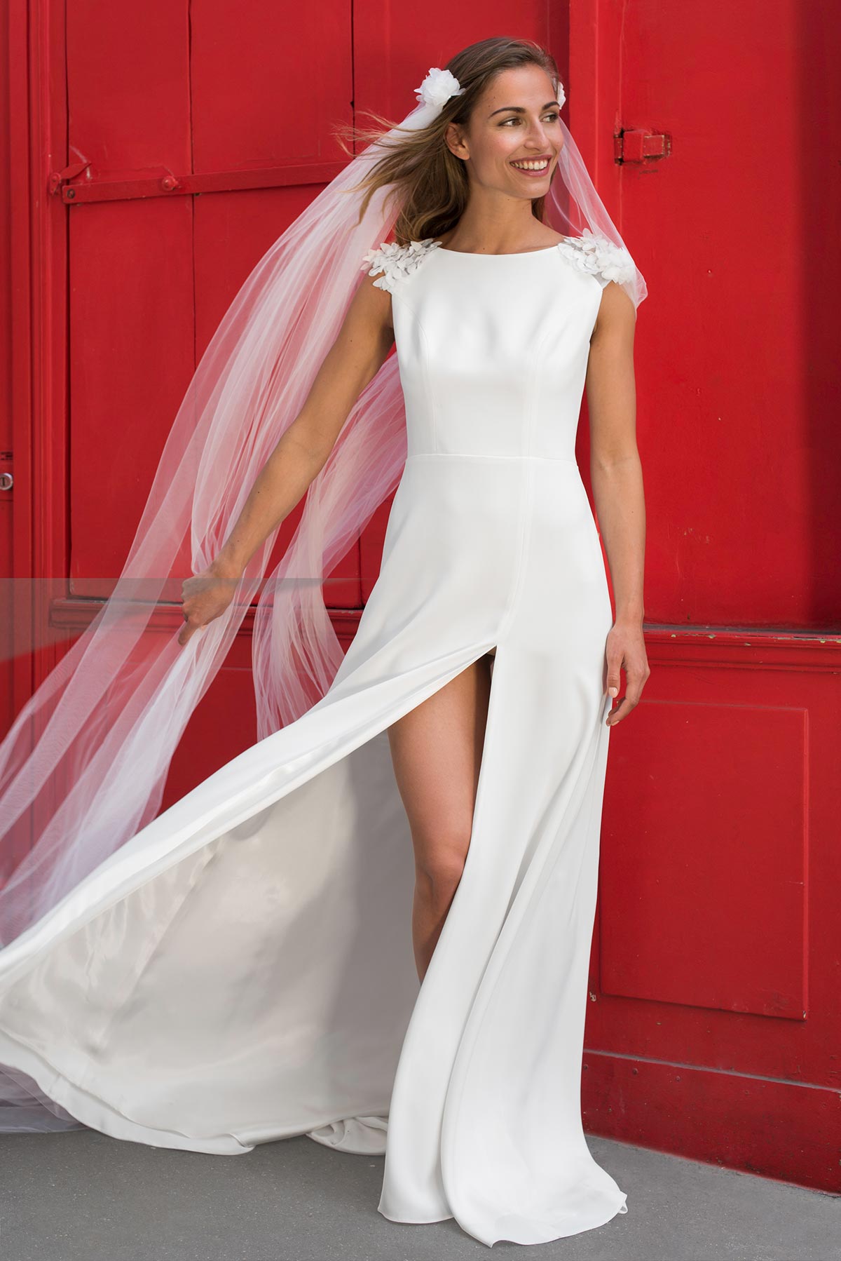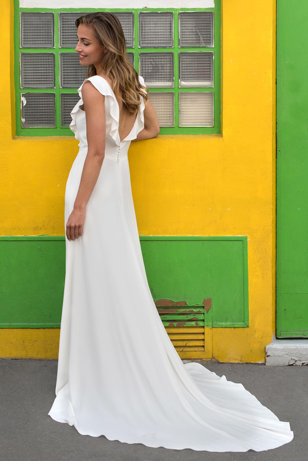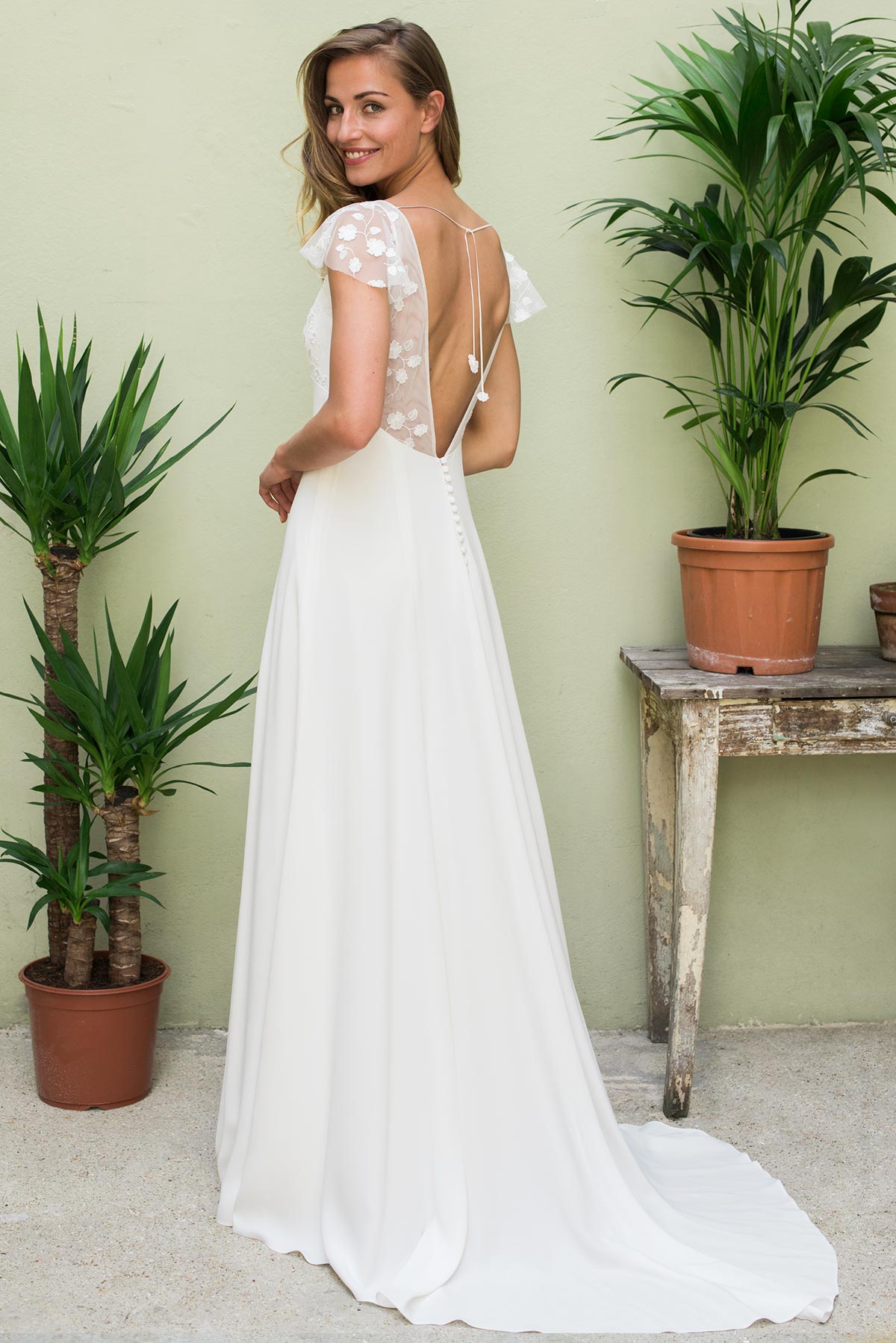 Ma mariée 2018 est amoureuse et libre, épanouie et indépendante. Elle aime les belles matières sans pour autant que celles-ci soient figées, au contraire, elle aime que sa robe suive le mouvement, vive avec elle. »