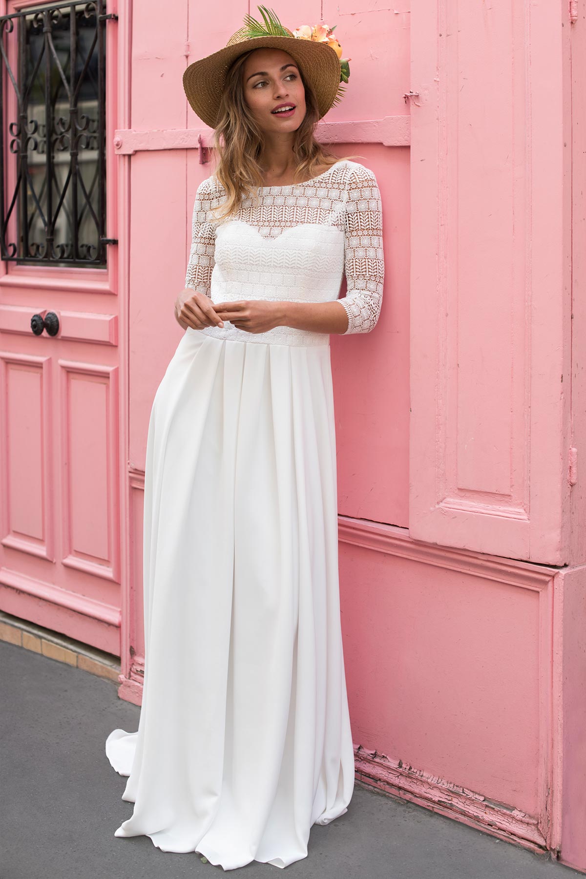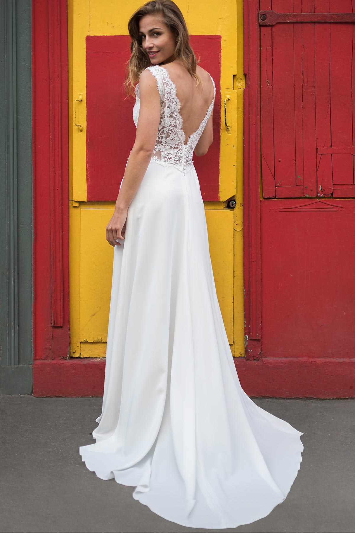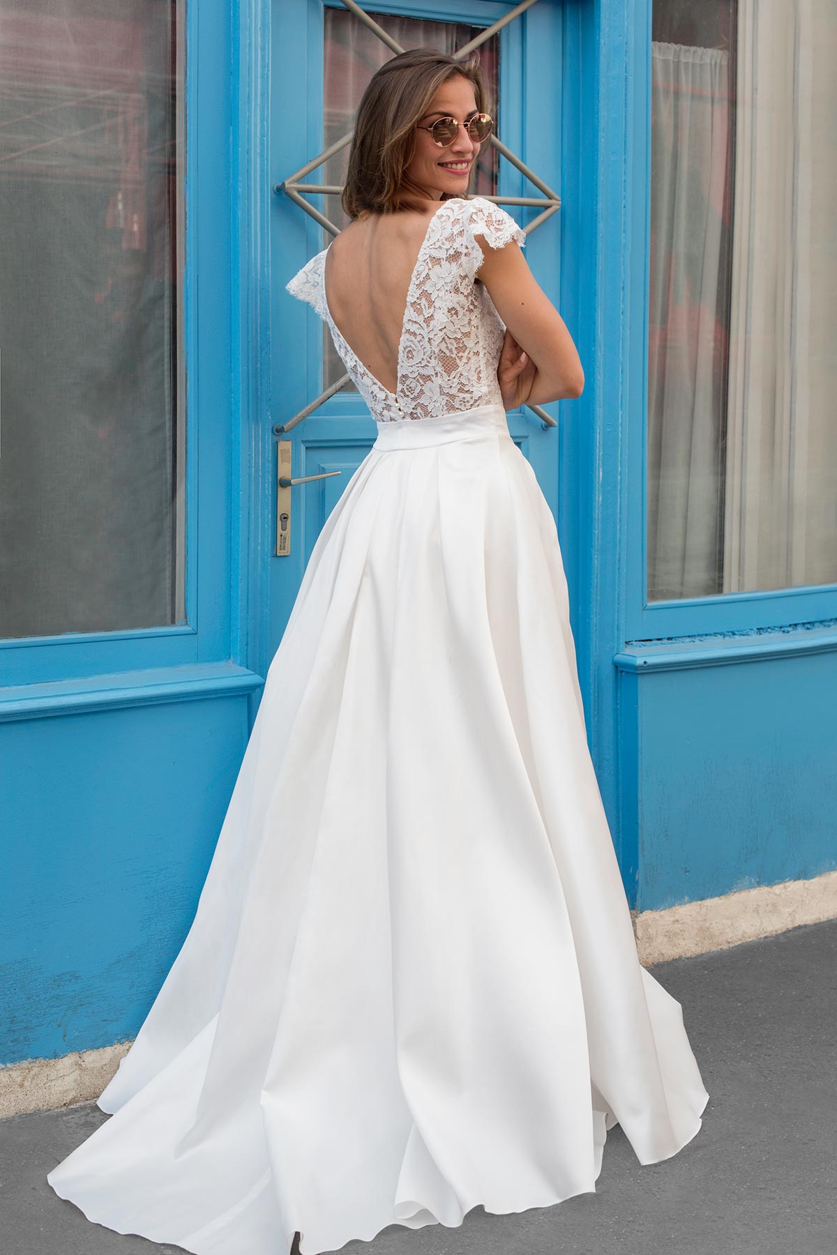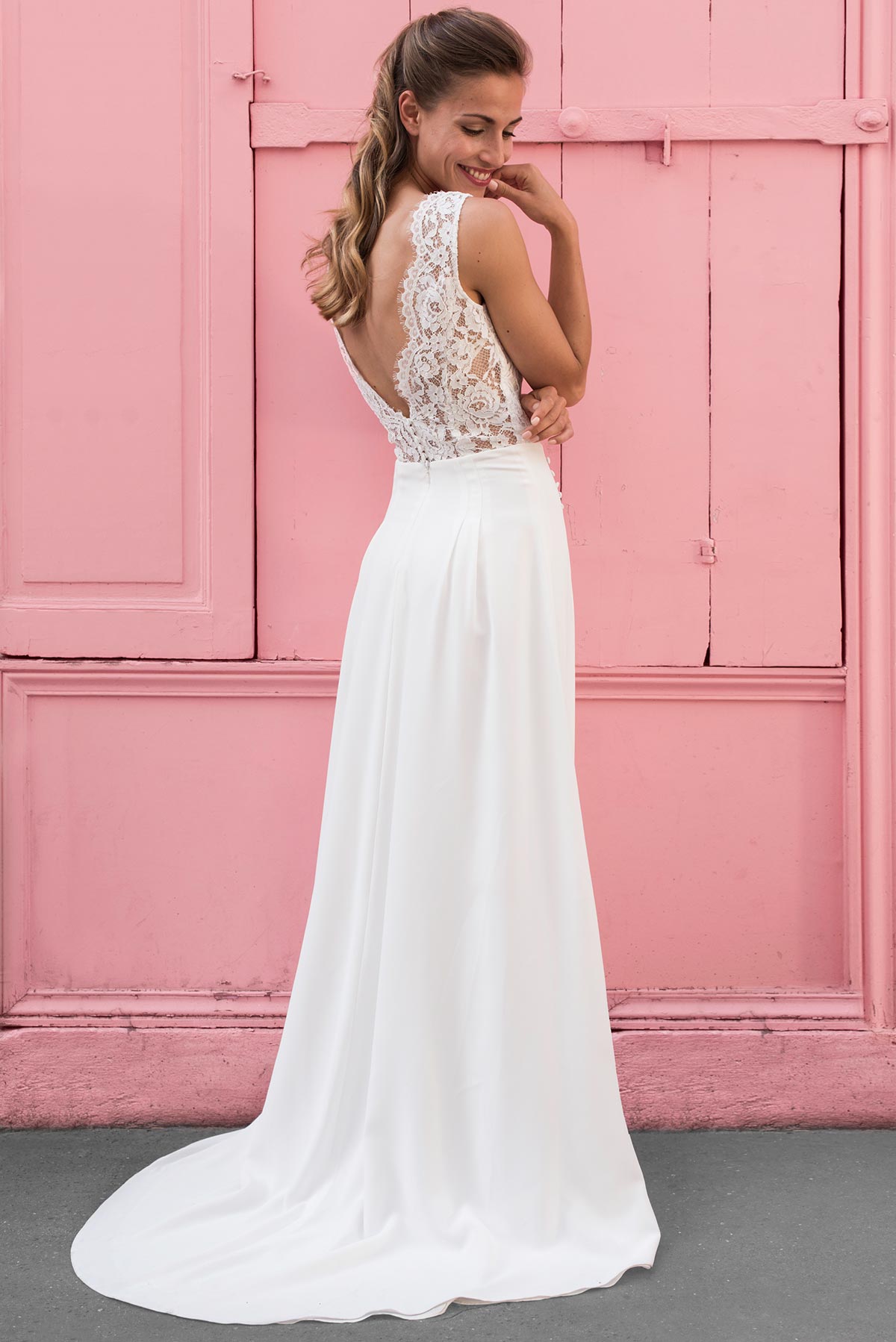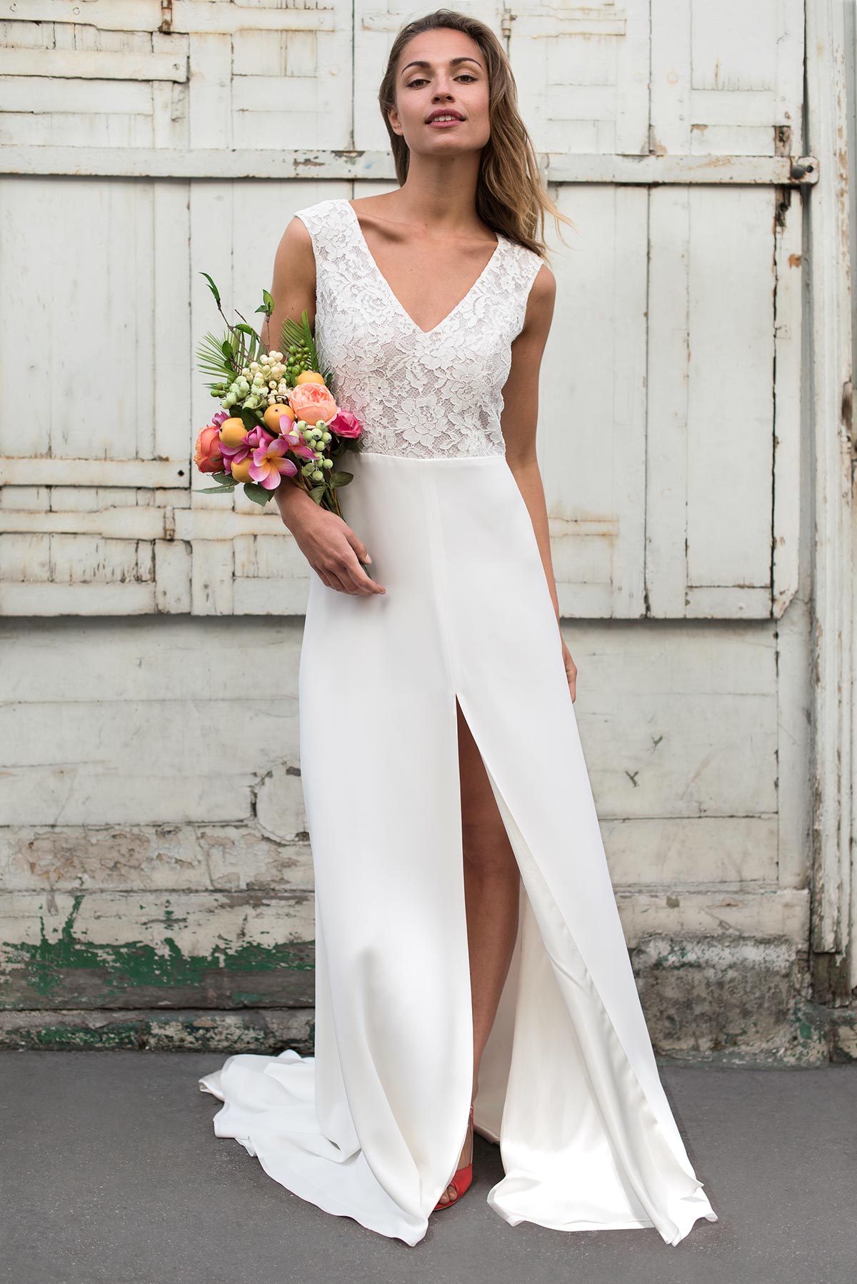 Ma mariée 2018 est amoureuse et libre, épanouie et indépendante. Elle aime les belles matières sans pour autant que celles-ci soient figées, au contraire, elle aime que sa robe suive le mouvement, vive avec elle. »