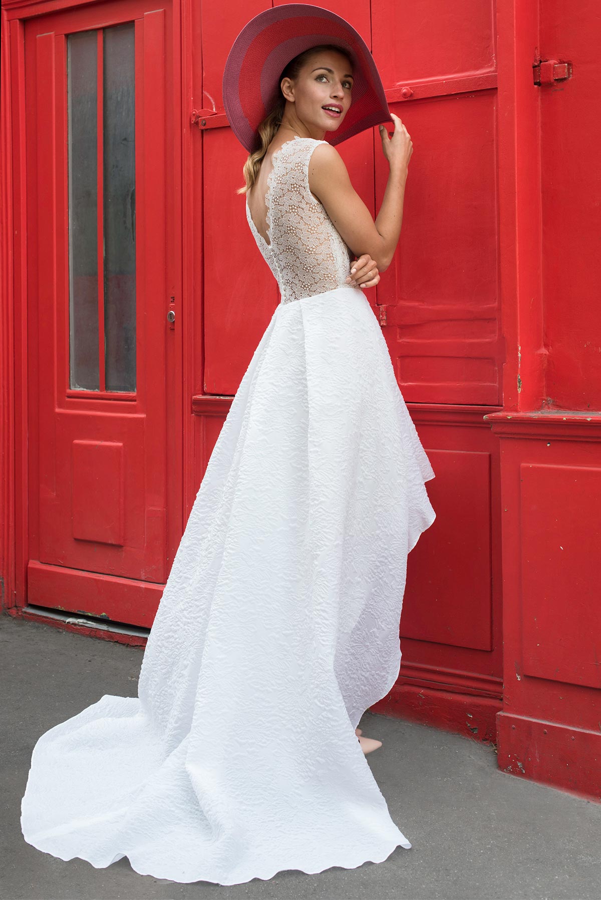 Il y a 15 ans, Marie Laporte ouvrait son atelier pour offrir aux futures mariées des robes délicates. Depuis, de nombreuses mariées ont fait appel à ses services et sont passés sous son œil créatif. Marie Laporte conçoit la robe de mariée parfaite comme une seconde peau, une robe qui accompagne la future mariée dans sa folle journée, en suivant ses courbes et ses gestes. Ce sont de ces inspirations que la créatrice a lancé sa nouvelle collection, pleine de fraîcheur, de modernité et d’élégance avec des coupes ultra-féminines.