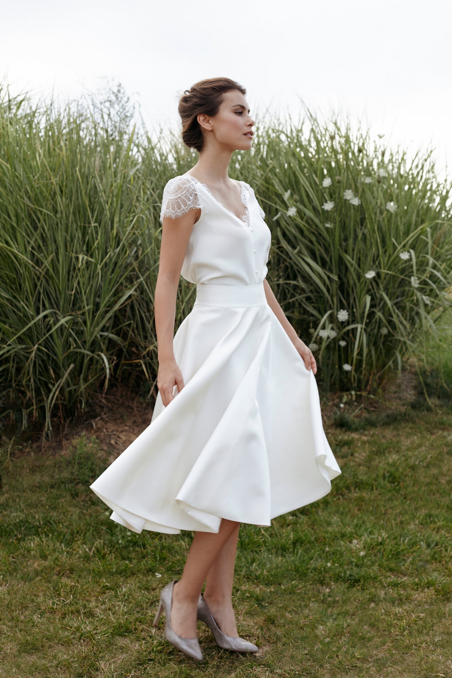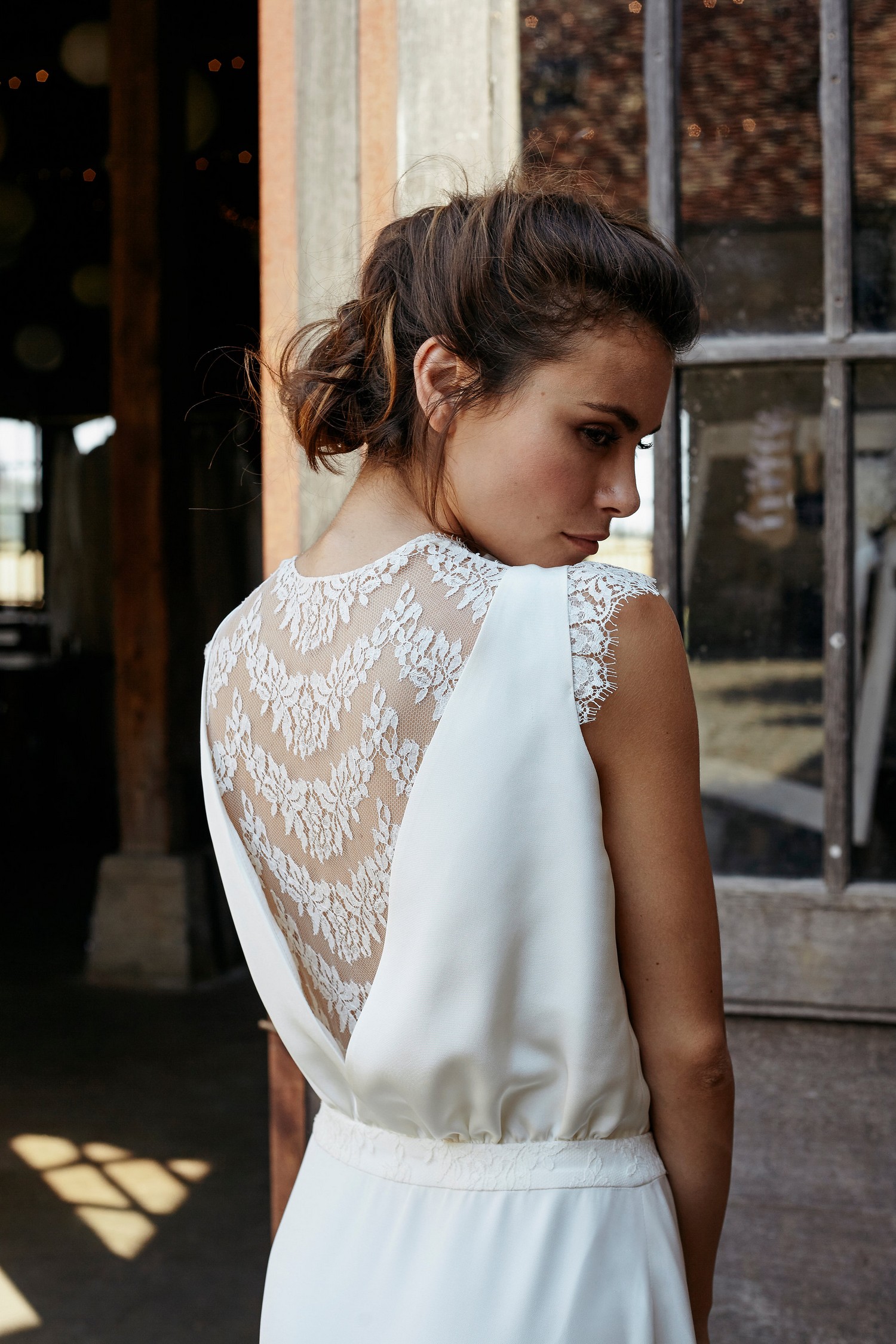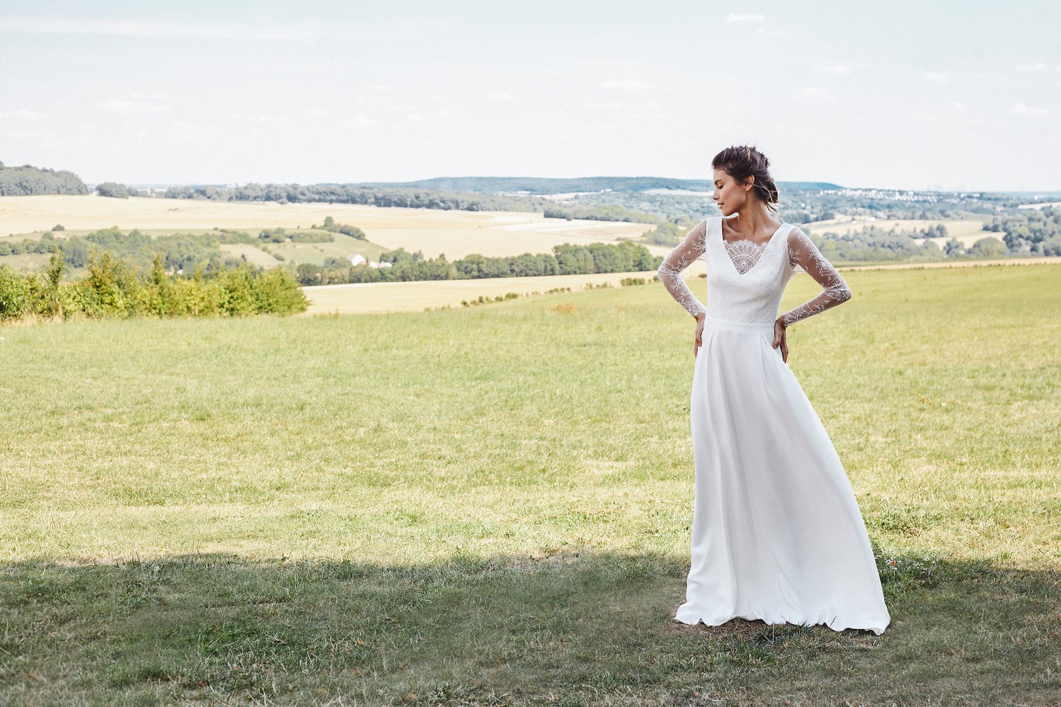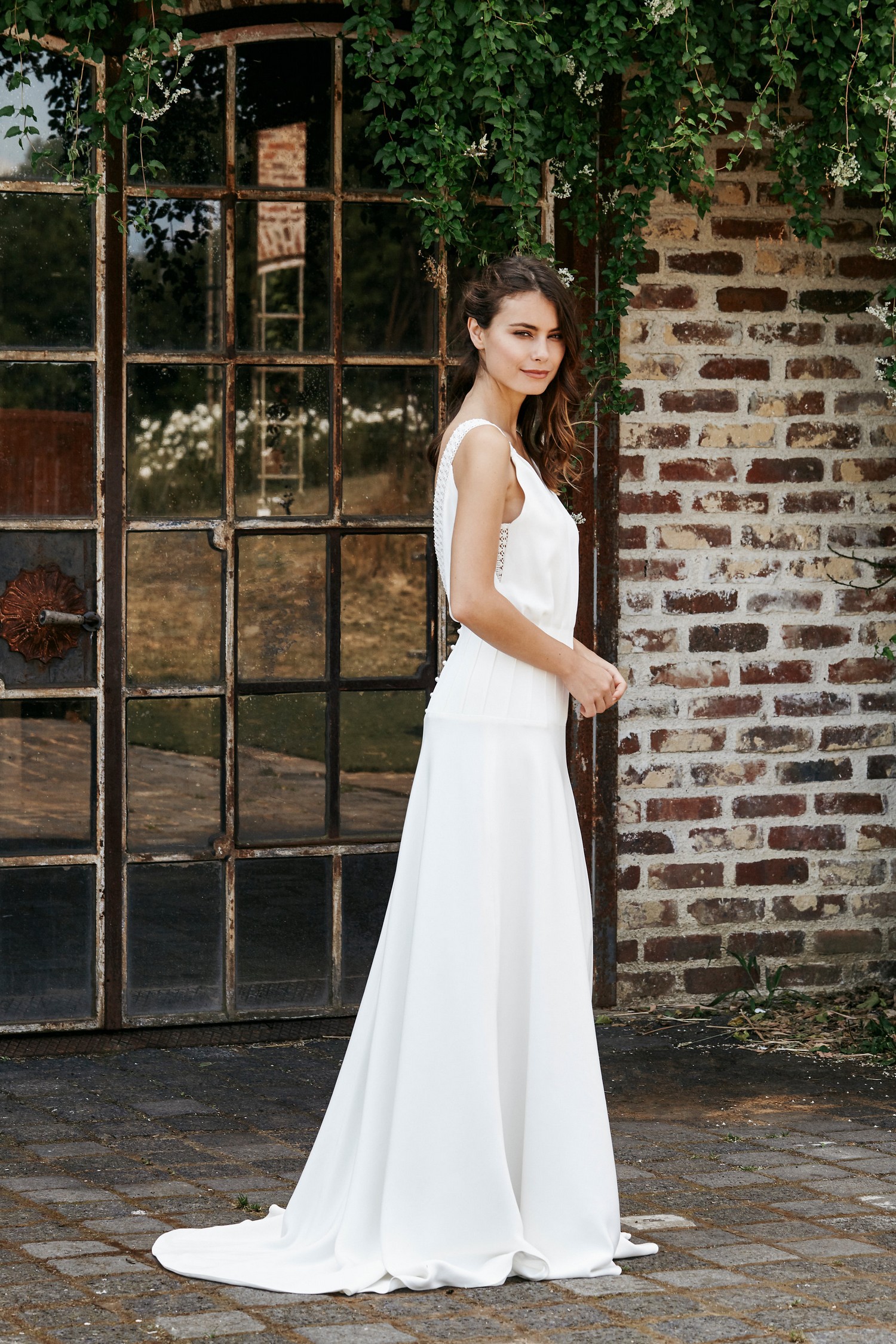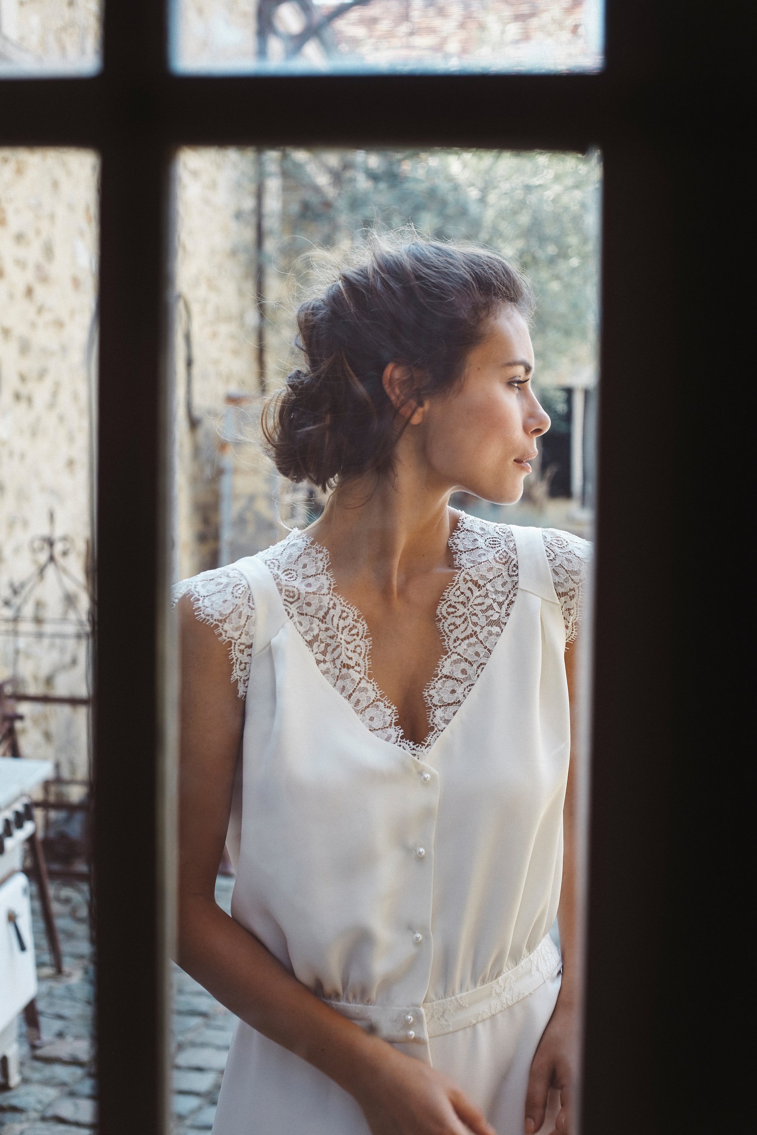 Pour cette collection 2018, mon cœur a chaviré de nombreuses fois, cependant j’ai eu un coup de foudre pour le modèle « Jeanne ». J’adore la taille haute sublimée par une rangée de petits boutons et ce dos nu en V, très élégant, sans en dévoiler trop, offre à la robe une délicate élégance.