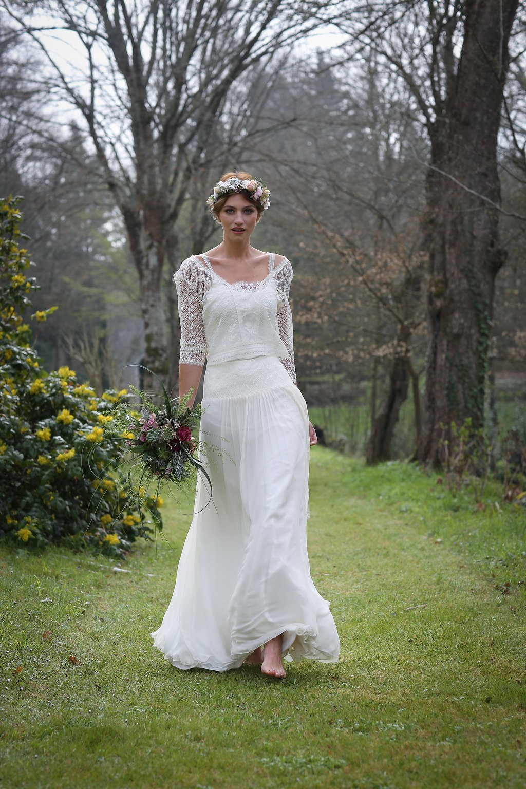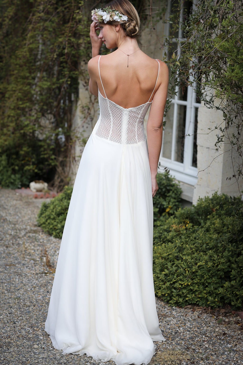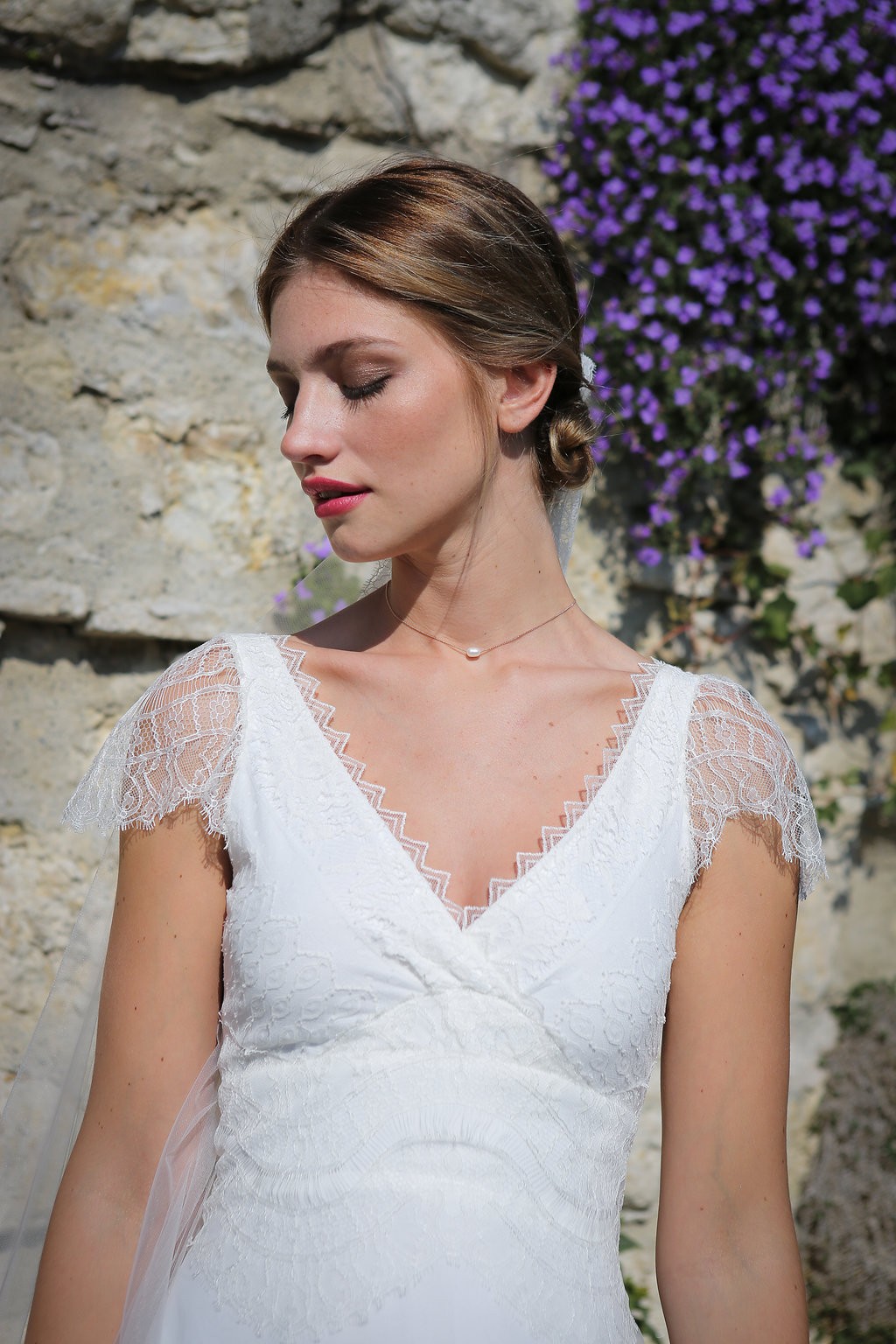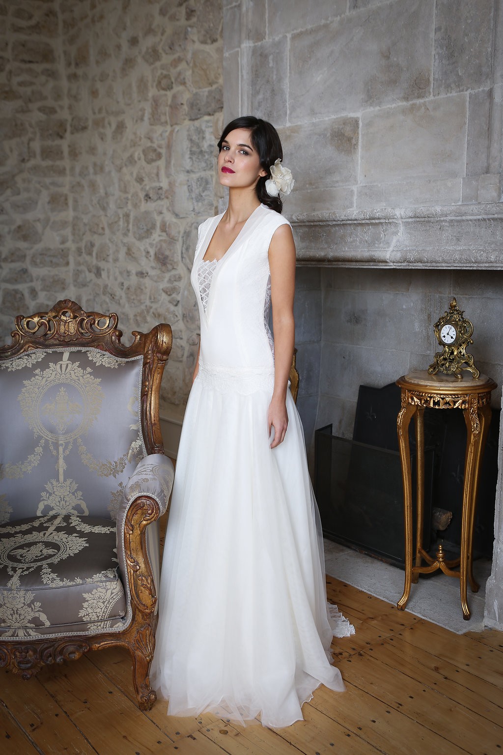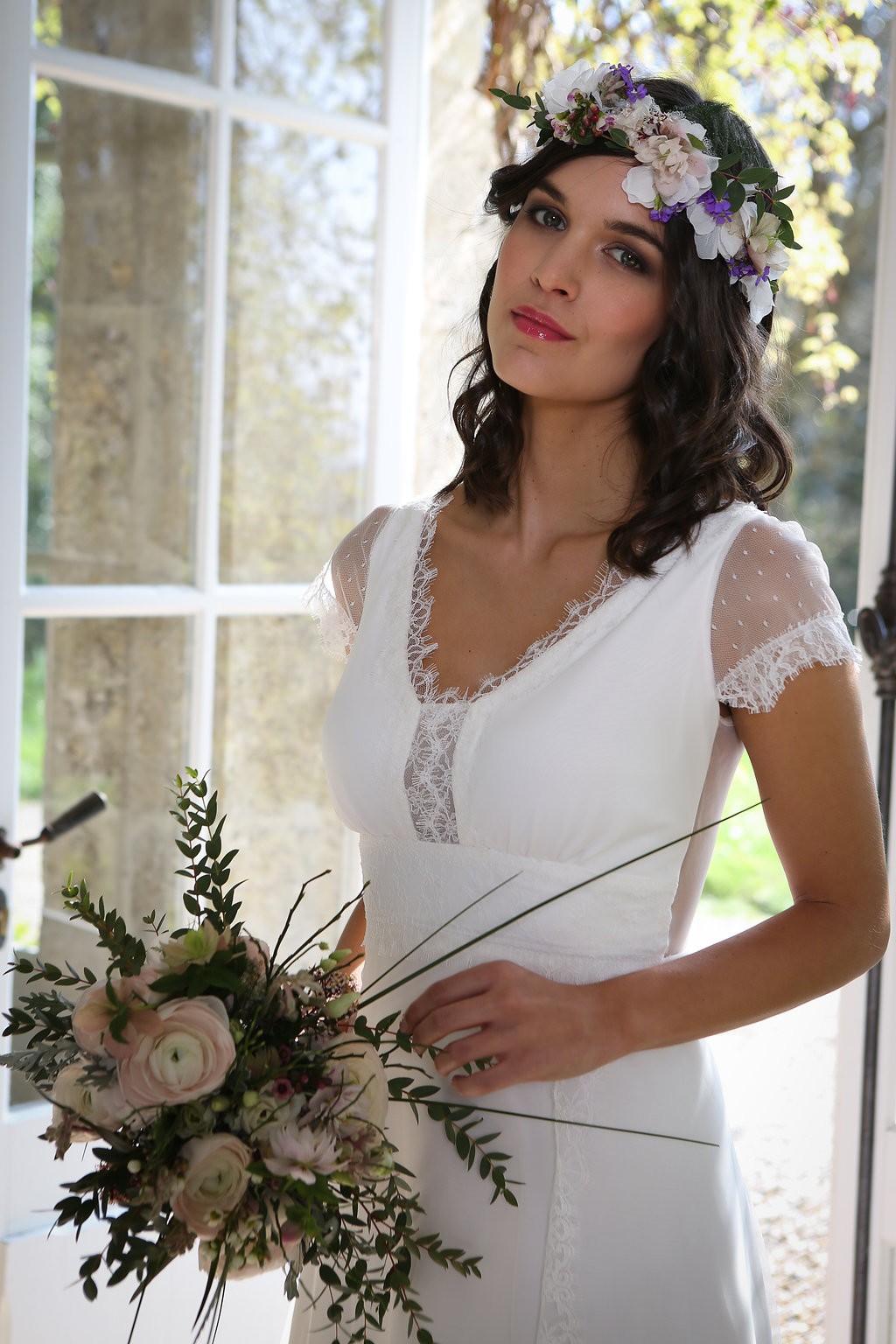 Cette année, la grande nouveauté est l’adaptabilité des robes ! Les créations se parent de manches amovibles pour les mariées d’hiver ou bien de tops, reportables après le mariage pour la vie quotidienne. Comme par exemple, le modèle Améthyste composée d’une robe près du corps un brin sexy qui se transforme en une création bohème avec son top transparent et ample.