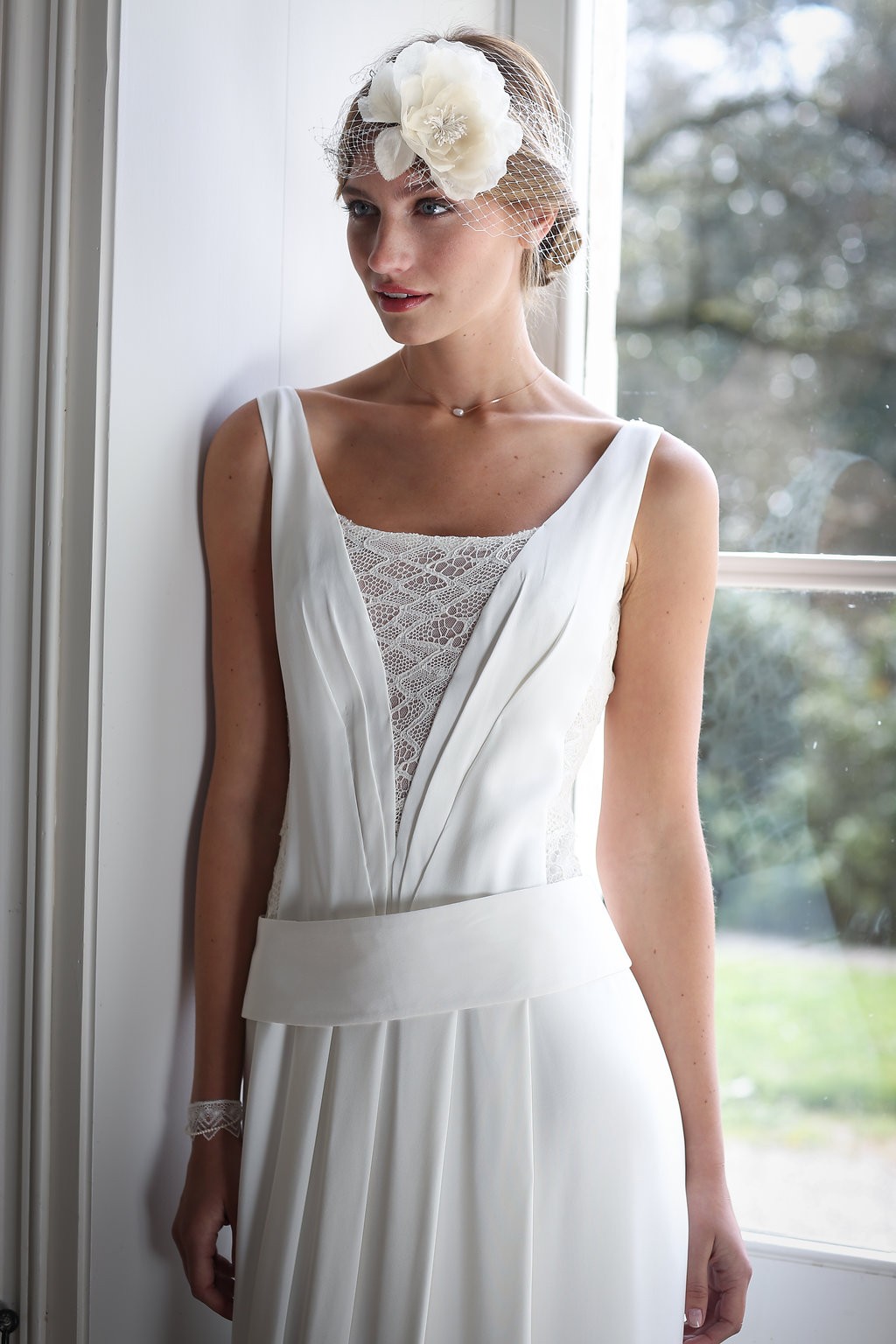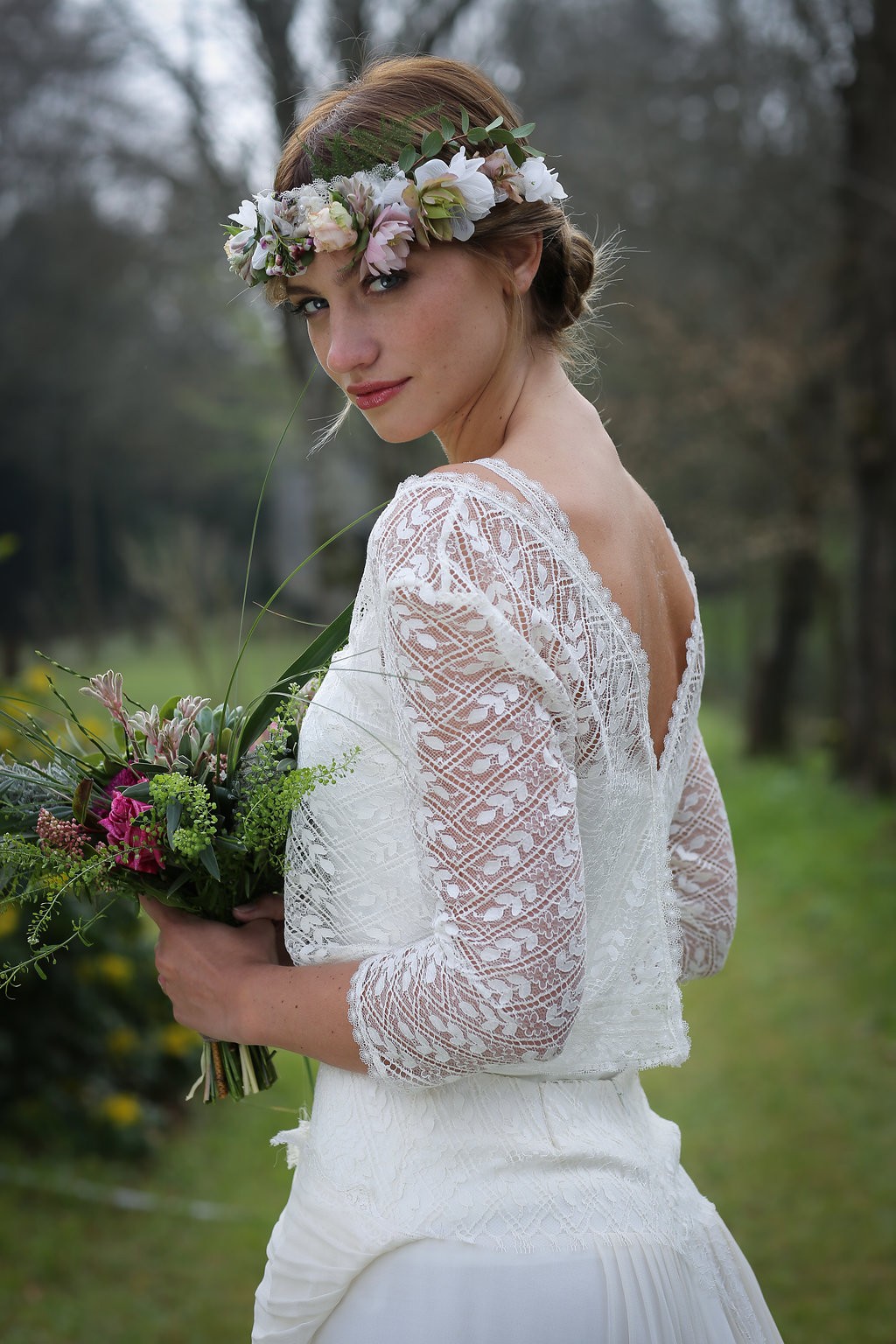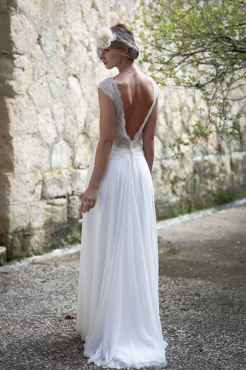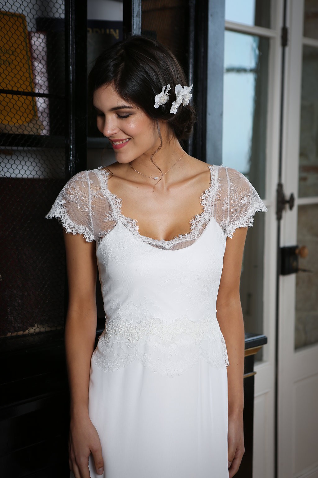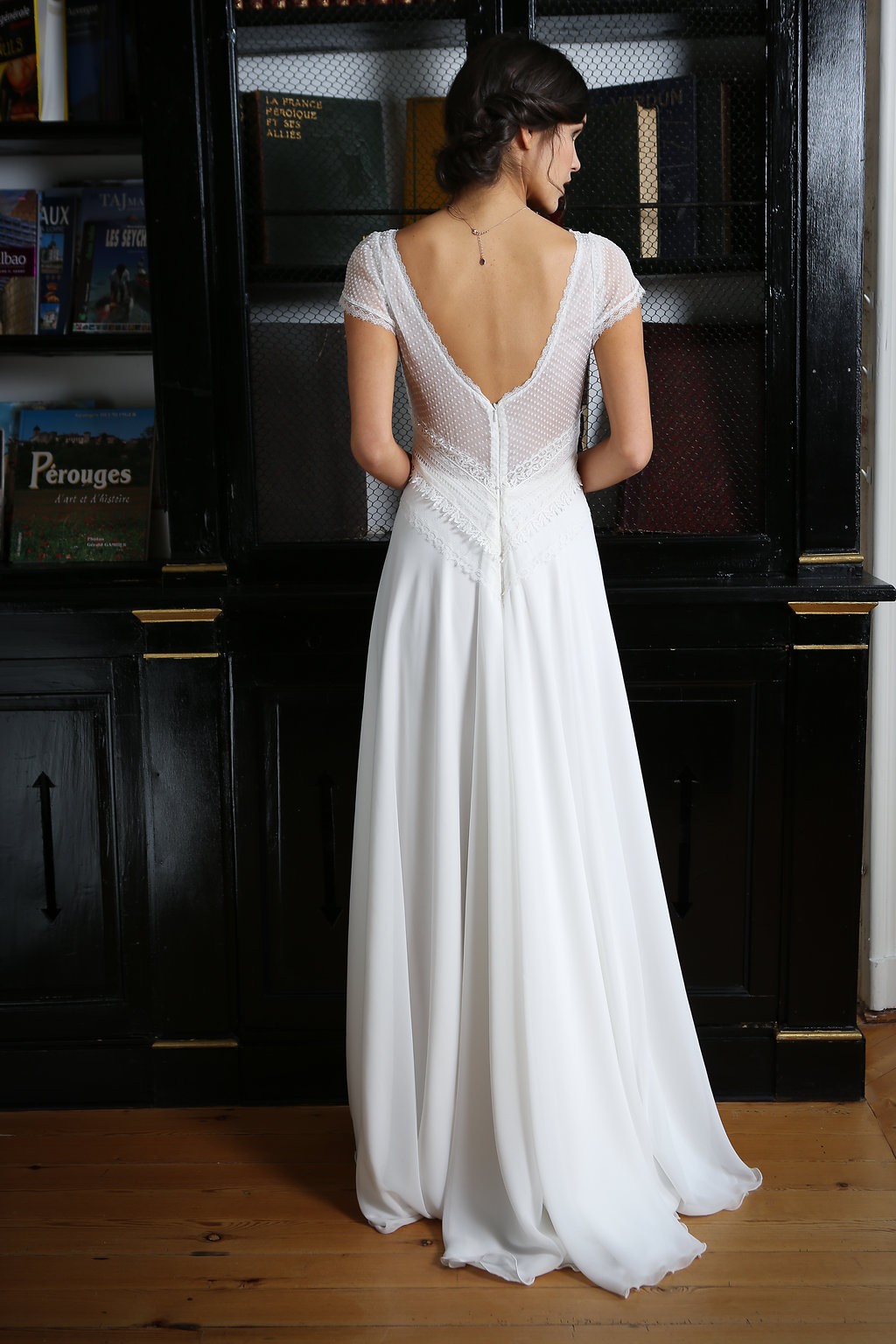 Cette année, la grande nouveauté est l’adaptabilité des robes ! Les créations se parent de manches amovibles pour les mariées d’hiver ou bien de tops, reportables après le mariage pour la vie quotidienne. Comme par exemple, le modèle Améthyste composée d’une robe près du corps un brin sexy qui se transforme en une création bohème avec son top transparent et ample.