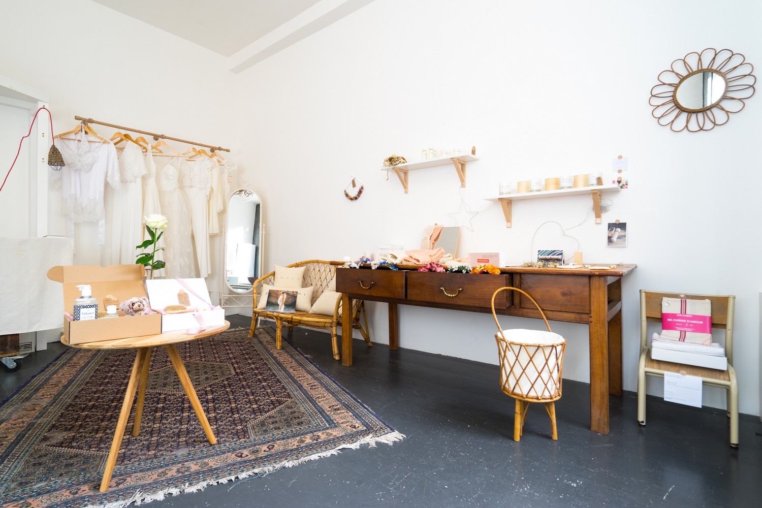 Voici une petite liste non-exhaustive des créateurs que vous pouvez découvrir sur place : les robes de mariée d’Elisa Ness, Mélodie Boitard ou Aurélia Hoang, les bijoux de La Chambre Blanche ou encore des couronnes de fleurs en tissu, en fleurs fraîches ou en fleurs naturelles stabilisées… Vous pouvez retrouver tous les produits de la boutique sur l’e-shop : www.pivoinesandlove.com