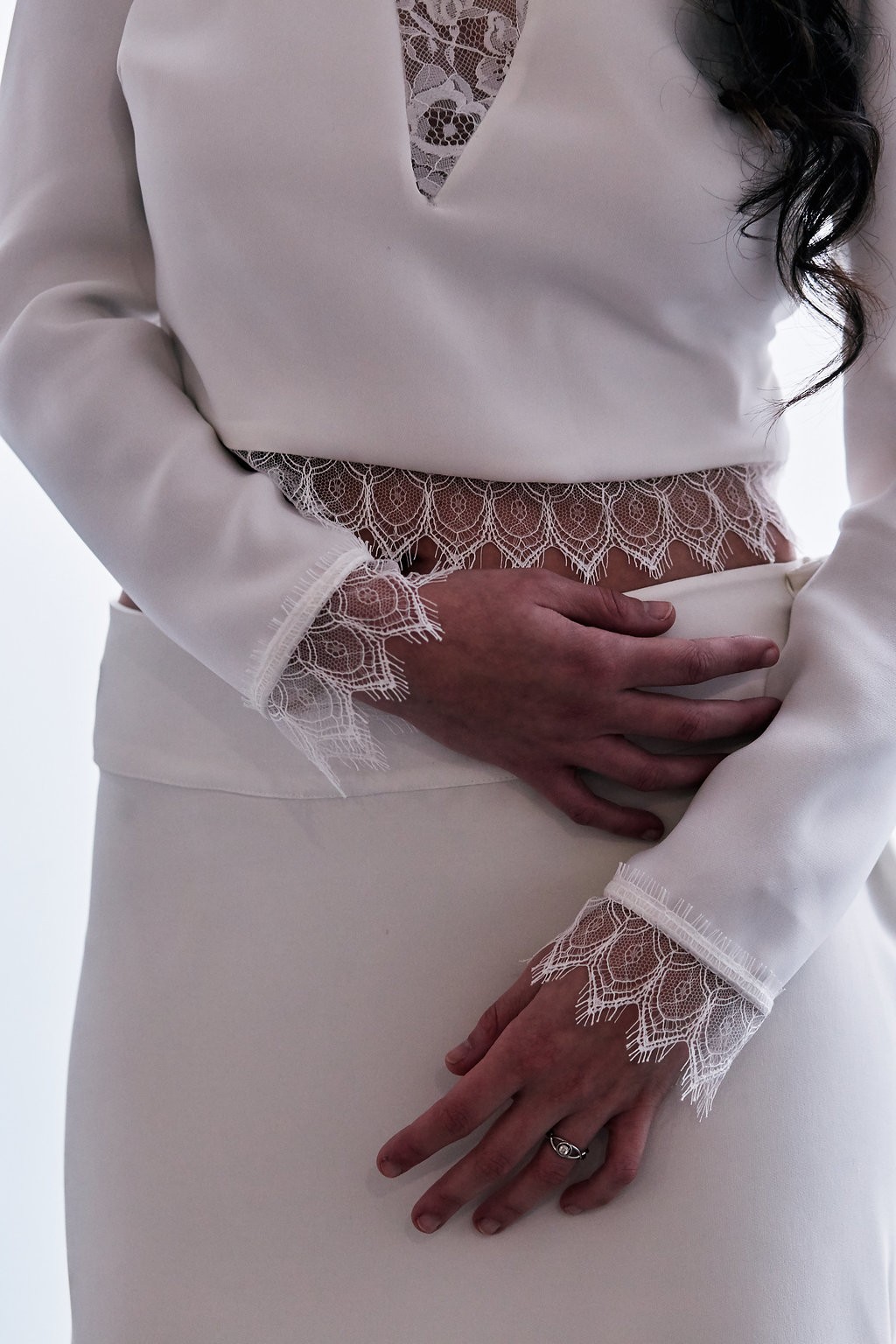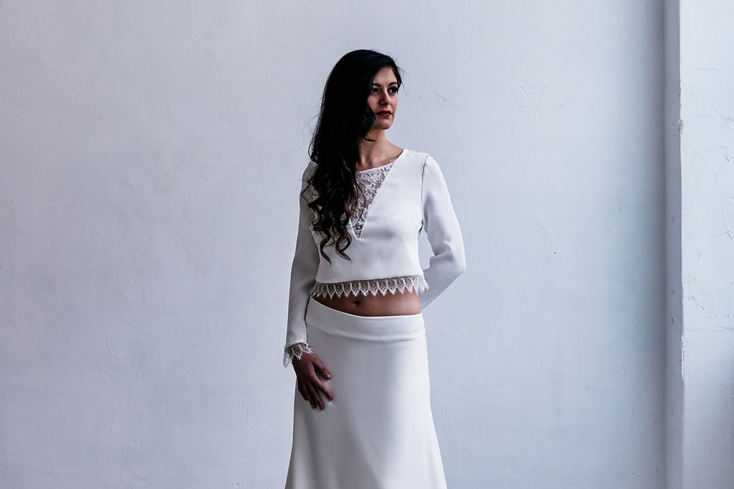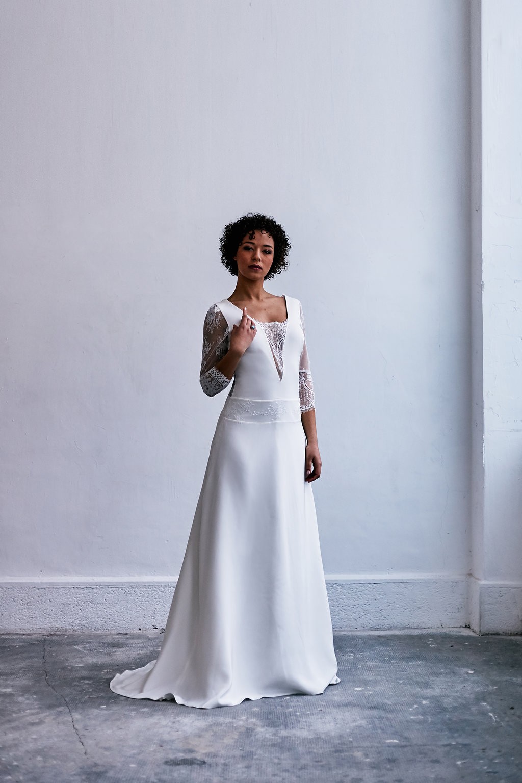 La nouvelle collection s’enrichit de lignes très contemporaines et urbaines. Les jupes longilignes de mousseline, très féminines et sensuelles, se marient désormais avec des tops modernes aux dentelles structurées. Minimaliste, la créatrice souhaite aller à l’essentiel en offrant aux futures mariées des créations sans superflu.