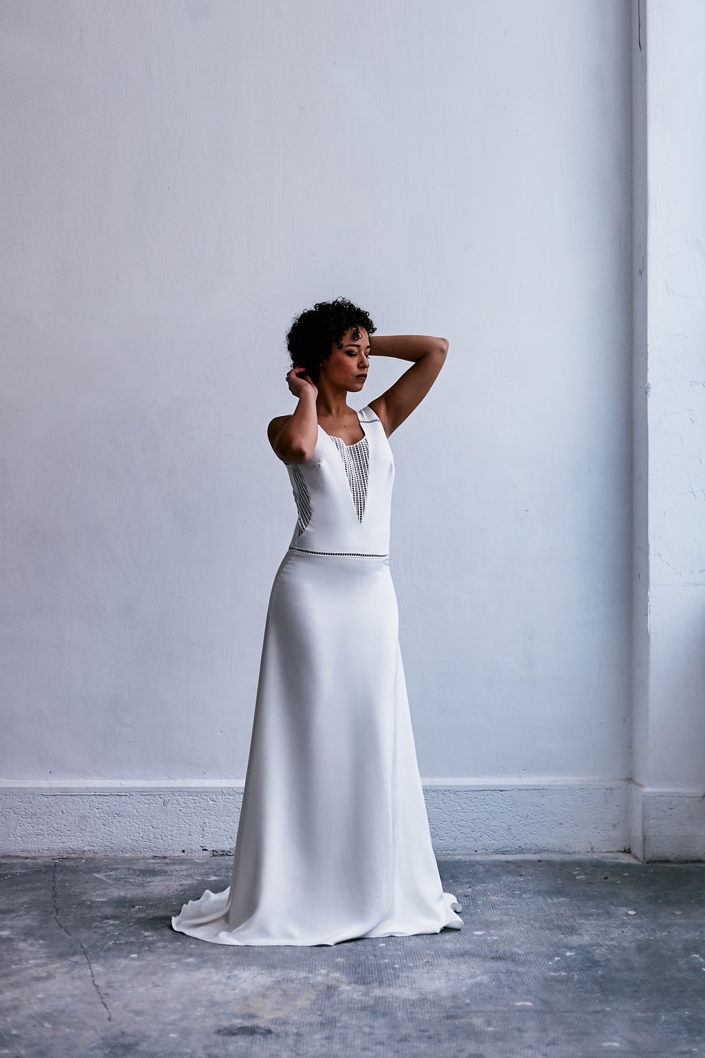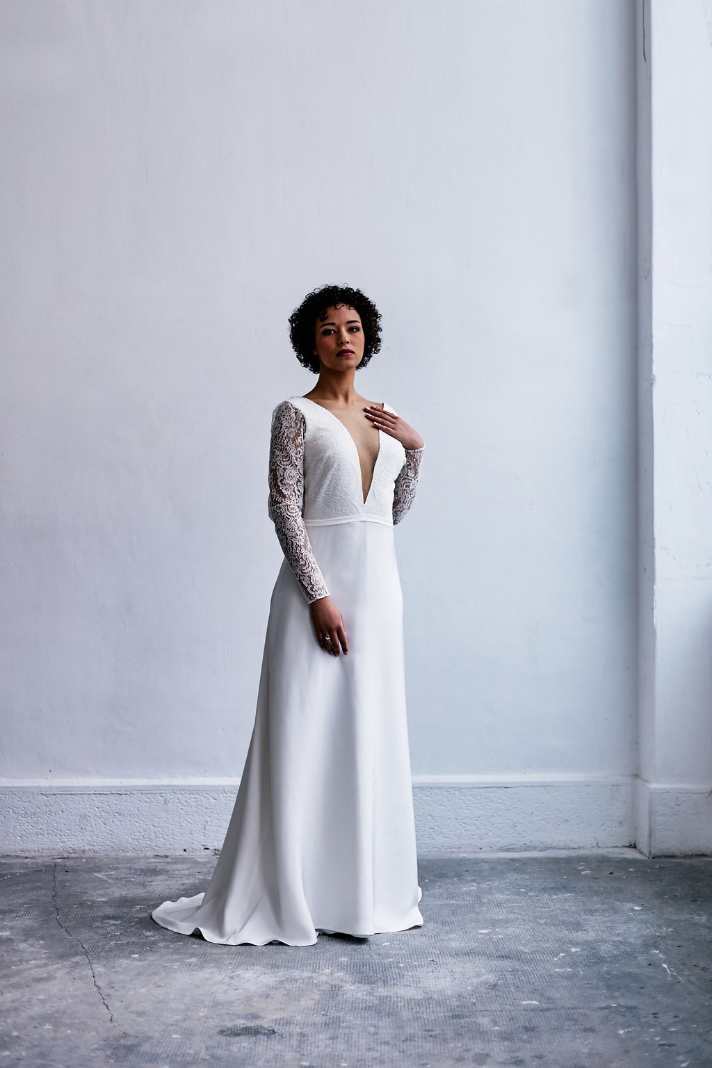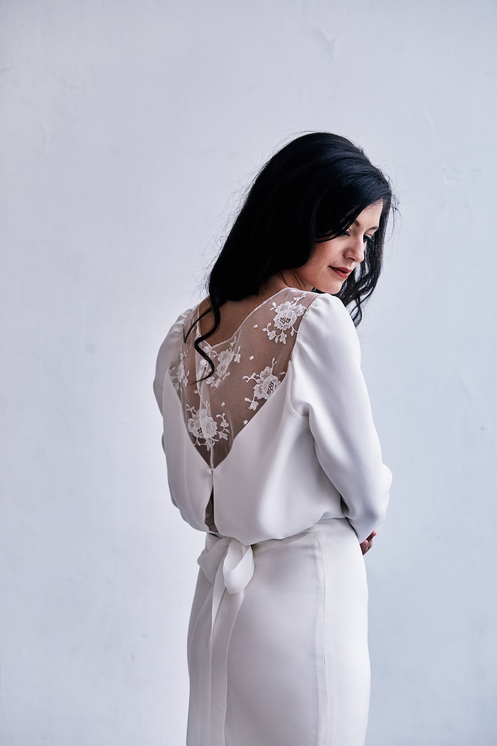 La nouvelle collection s’enrichit de lignes très contemporaines et urbaines. Les jupes longilignes de mousseline, très féminines et sensuelles, se marient désormais avec des tops modernes aux dentelles structurées. Minimaliste, la créatrice souhaite aller à l’essentiel en offrant aux futures mariées des créations sans superflu.