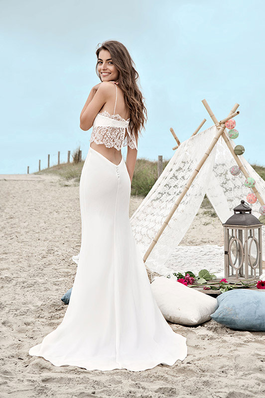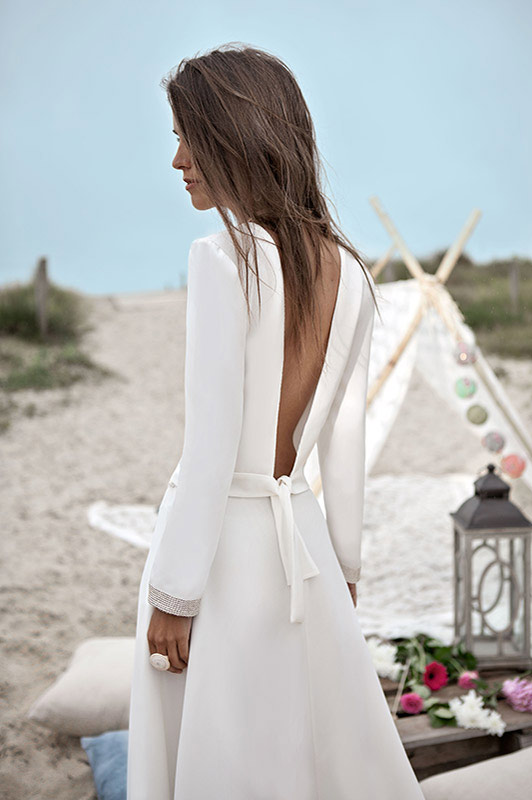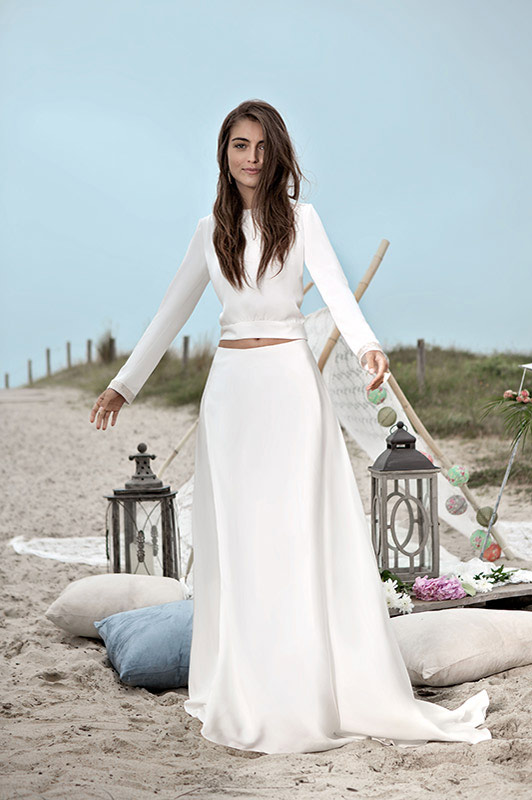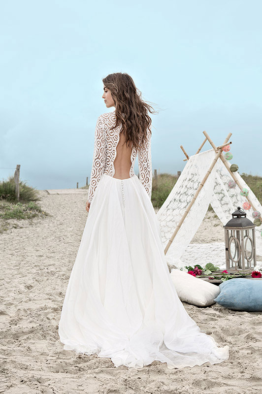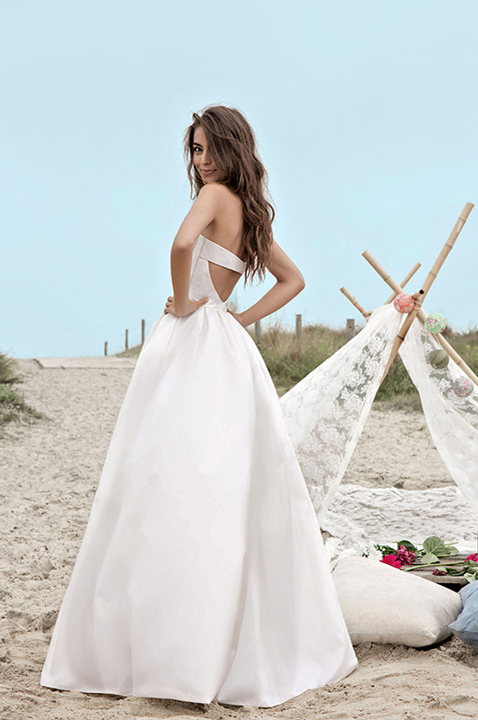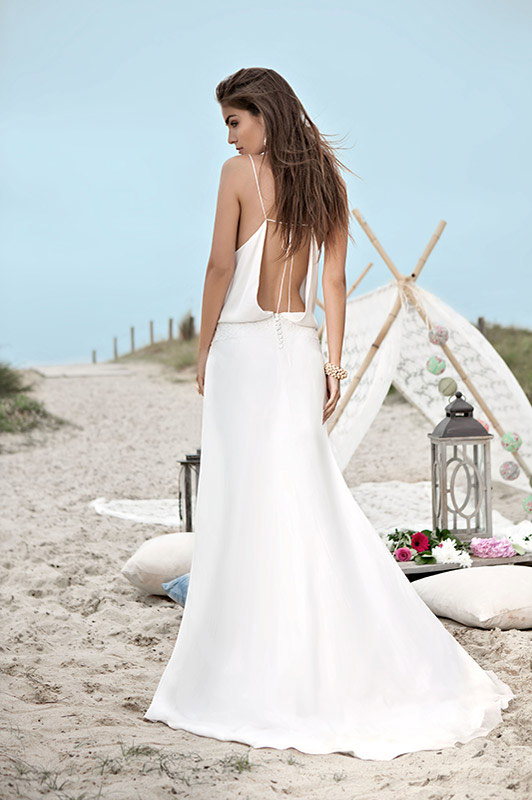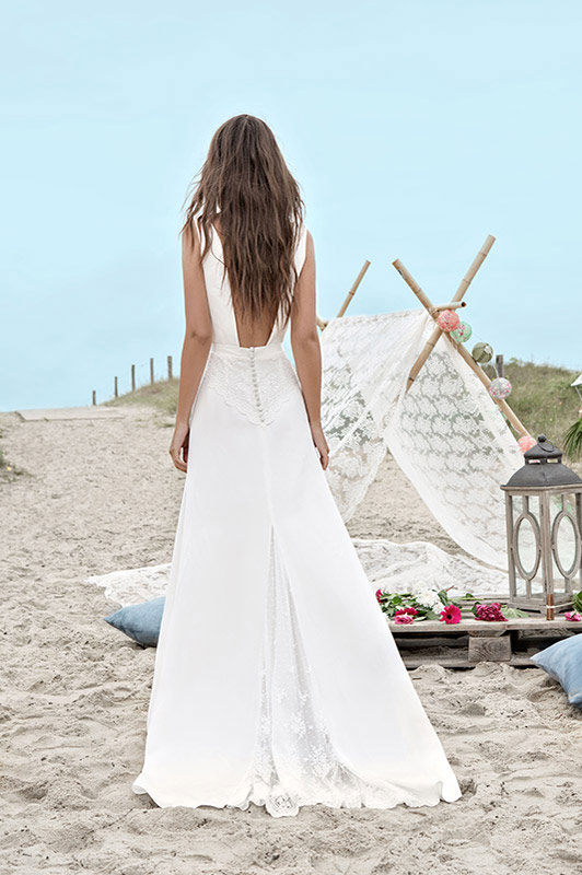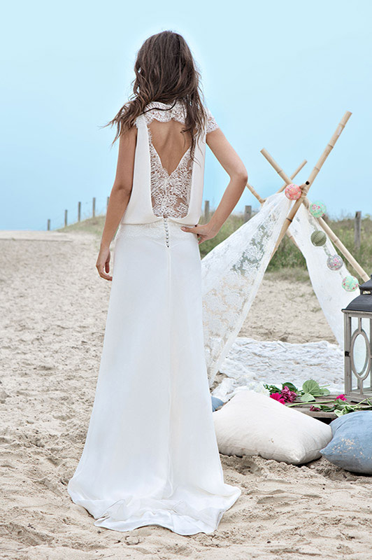 On retrouve ainsi des dos nus très élégants que la créatrice maîtrise depuis ses débuts mais aussi un goût prononcé pour la sobriété. Des coupes droites, légères sans trop de frivolité qui laisse place à la jolie silhouette de la jeune mariée (notamment les créations Bruce et Tyler que j’adore).
