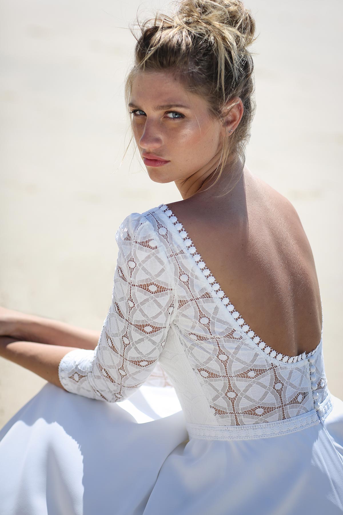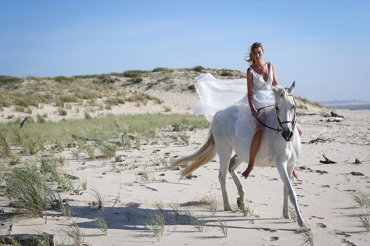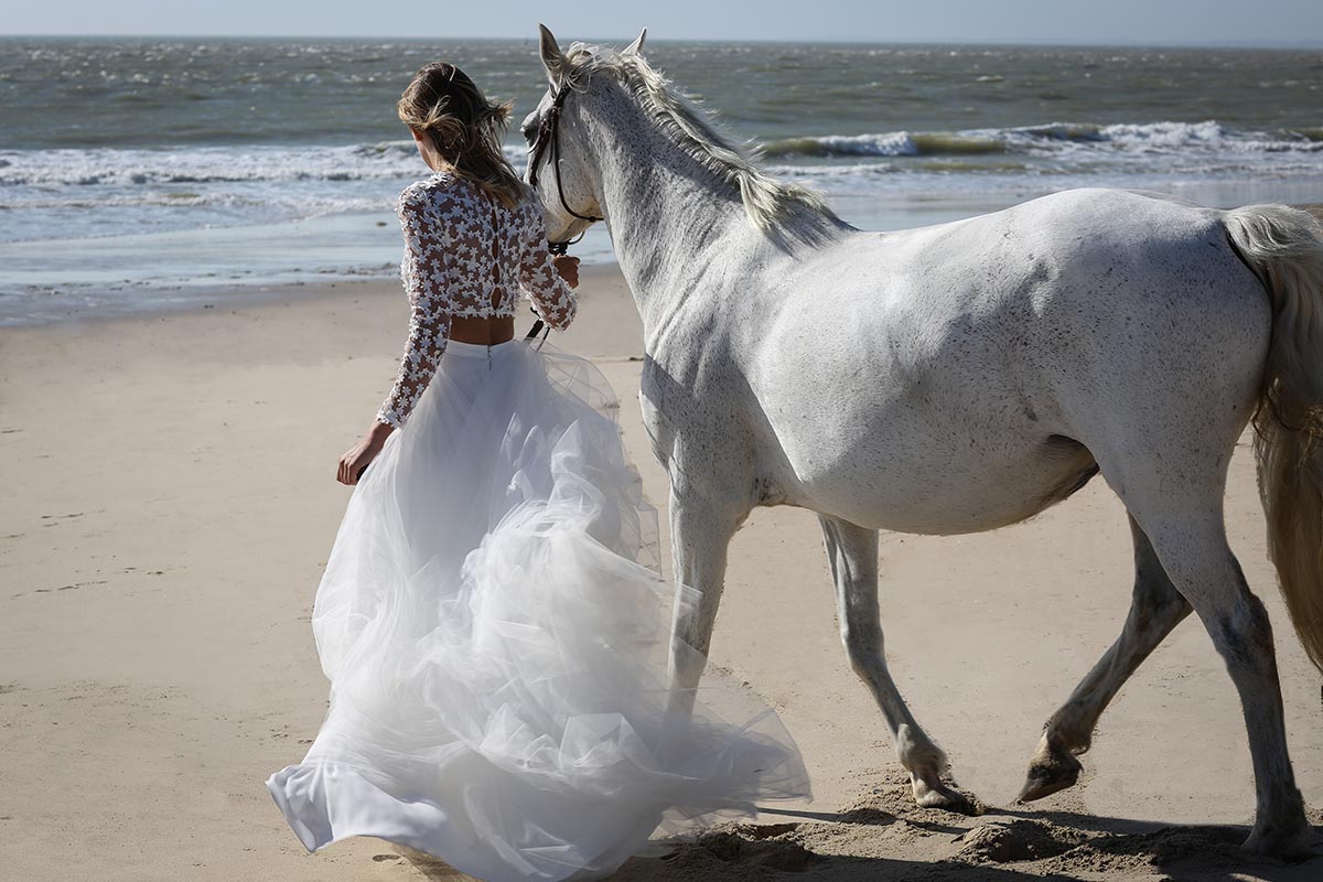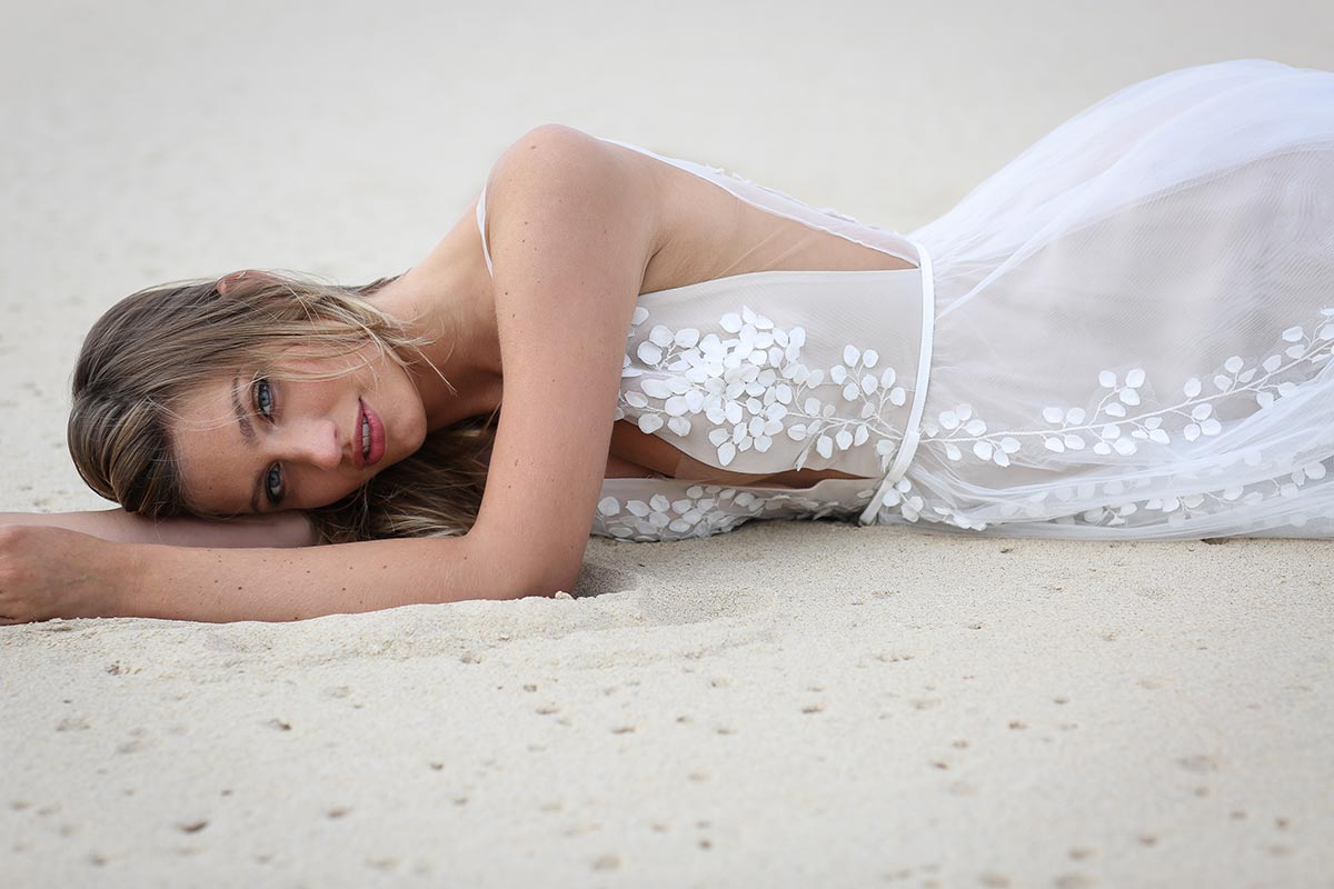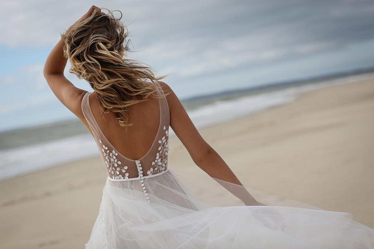 Jeu de transparence, dentelle fleurie, dos nu… La légèreté est au cœur de cette nouvelle collection de robes de mariée. Ici, on adore la superposition des matières et le style contemporain des dentelles. Les graphismes délicats se révèlent sur la peau basanée de nos mariées. Les coupes modernes s’envolent au vent… Entre l’asymétrie de la robe Californie en passant par l’association top-jupe de Colombus Phoenix, on adore les créations de Marie Laporte, entre féminité et impertinence…