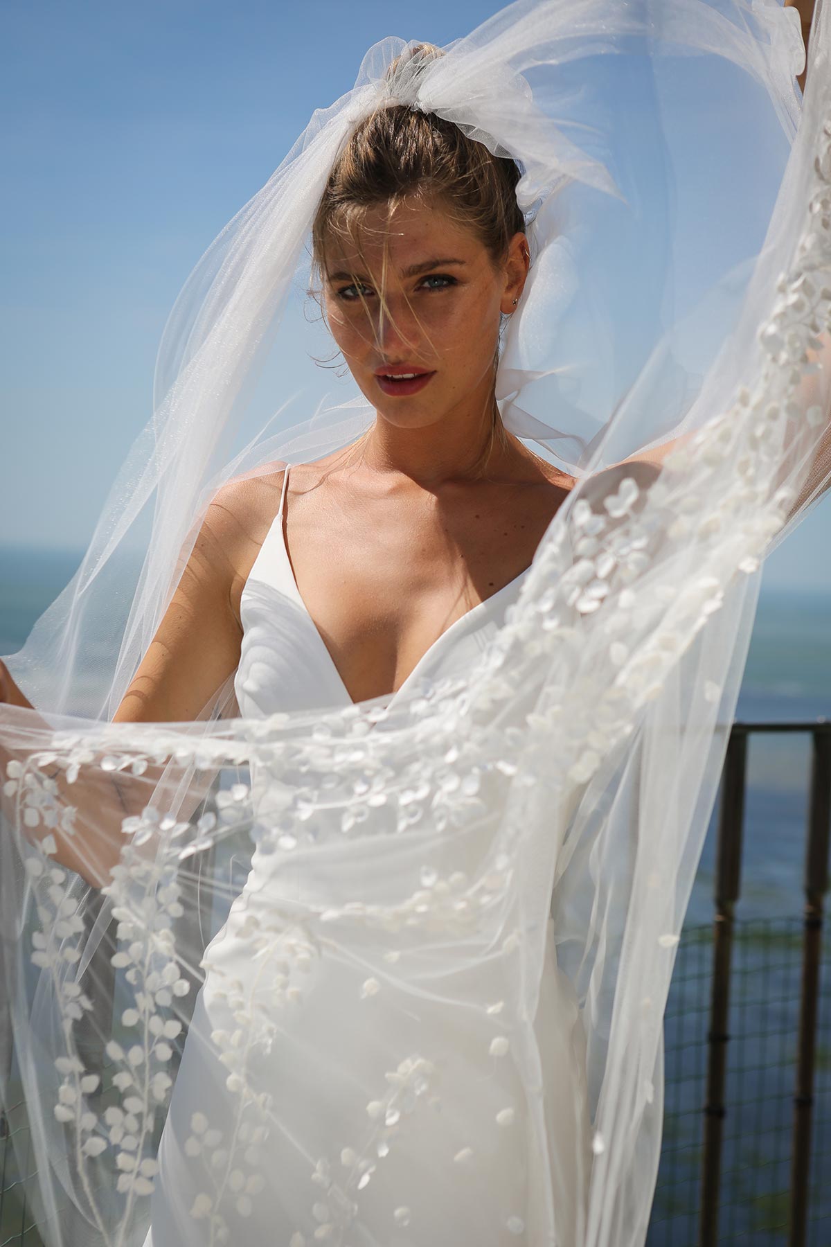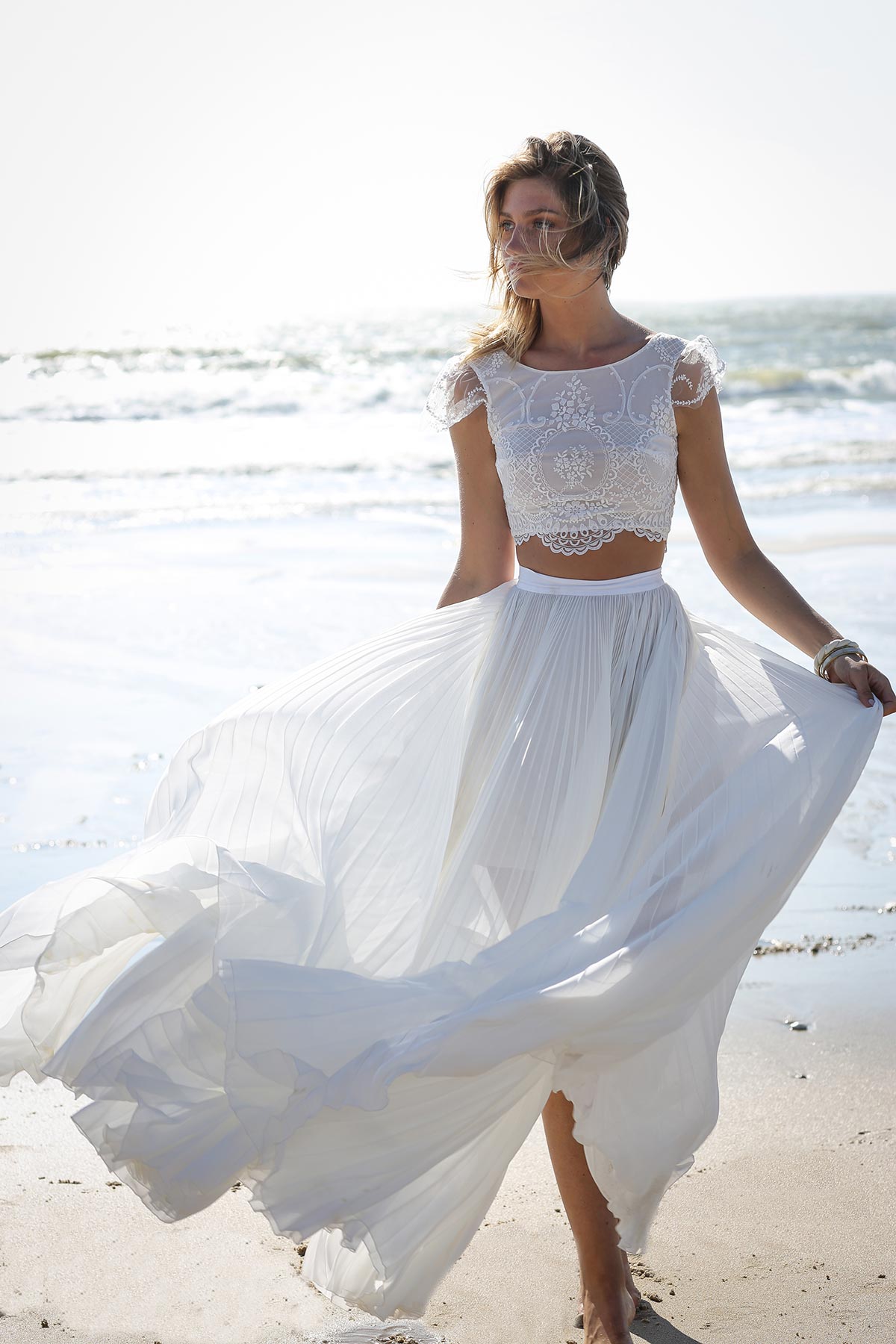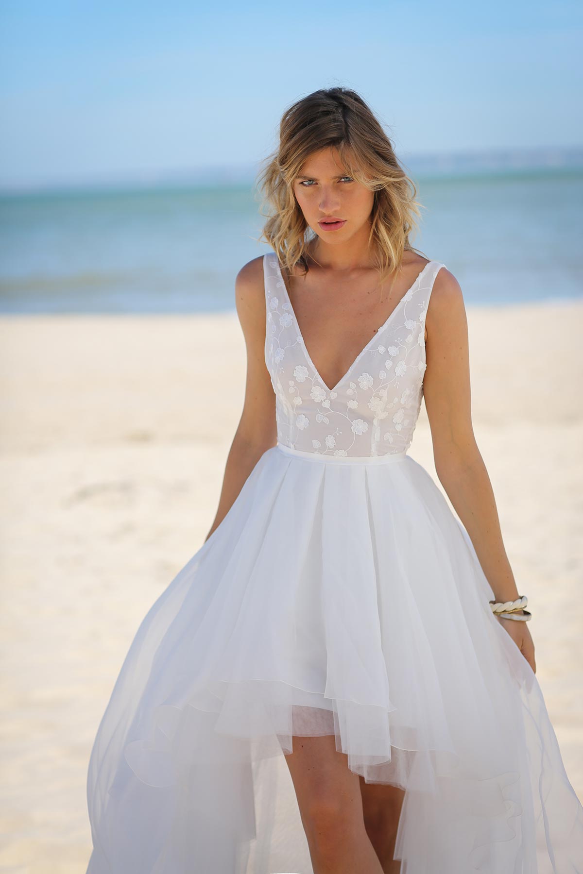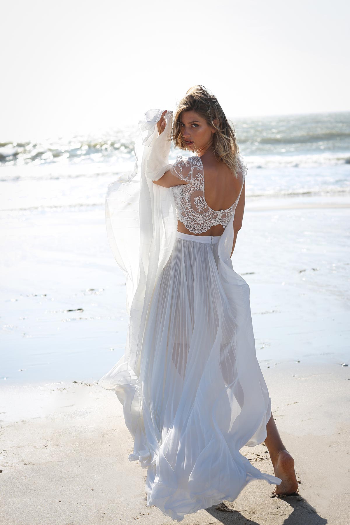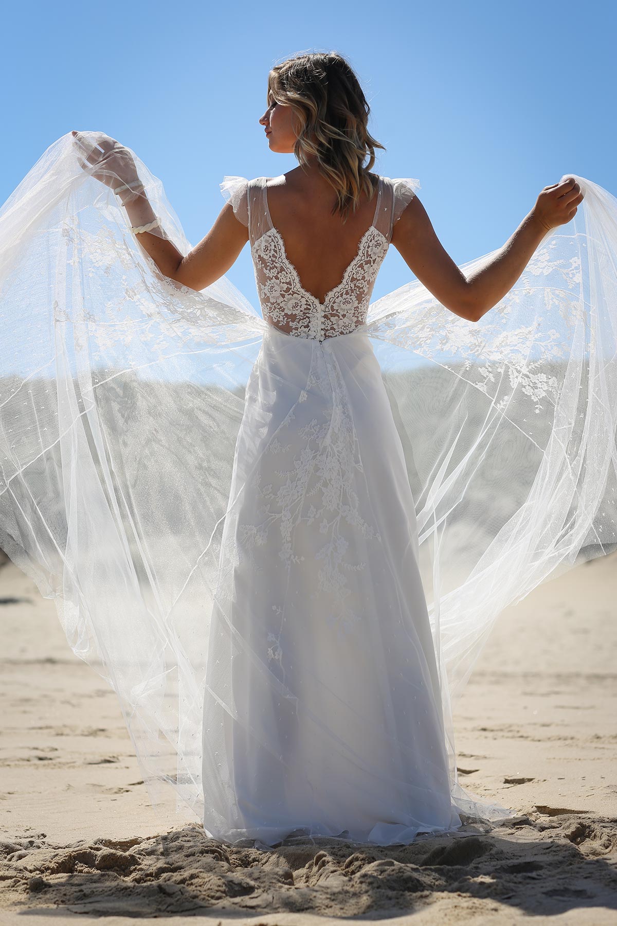 Jeu de transparence, dentelle fleurie, dos nu… La légèreté est au cœur de cette nouvelle collection de robes de mariée. Ici, on adore la superposition des matières et le style contemporain des dentelles. Les graphismes délicats se révèlent sur la peau basanée de nos mariées. Les coupes modernes s’envolent au vent… Entre l’asymétrie de la robe Californie en passant par l’association top-jupe de Colombus Phoenix, on adore les créations de Marie Laporte, entre féminité et impertinence…
