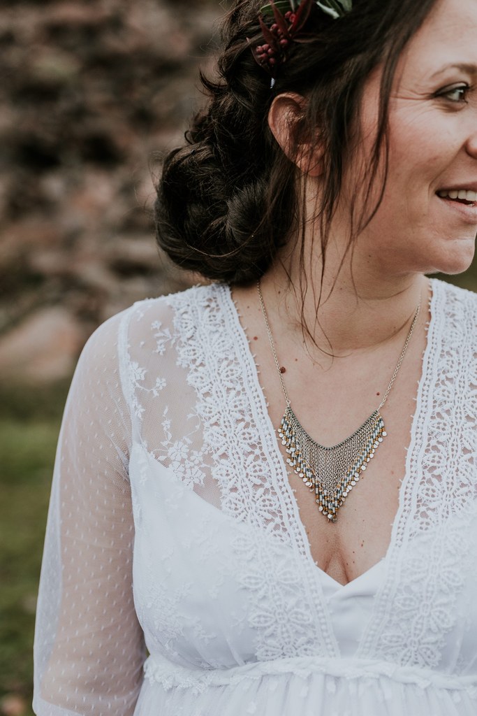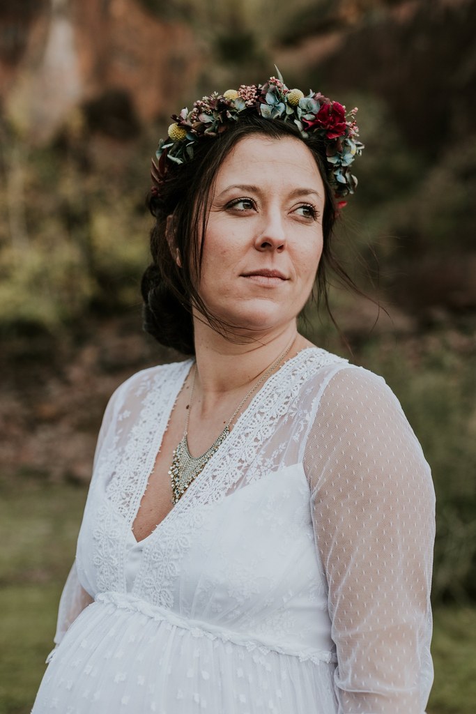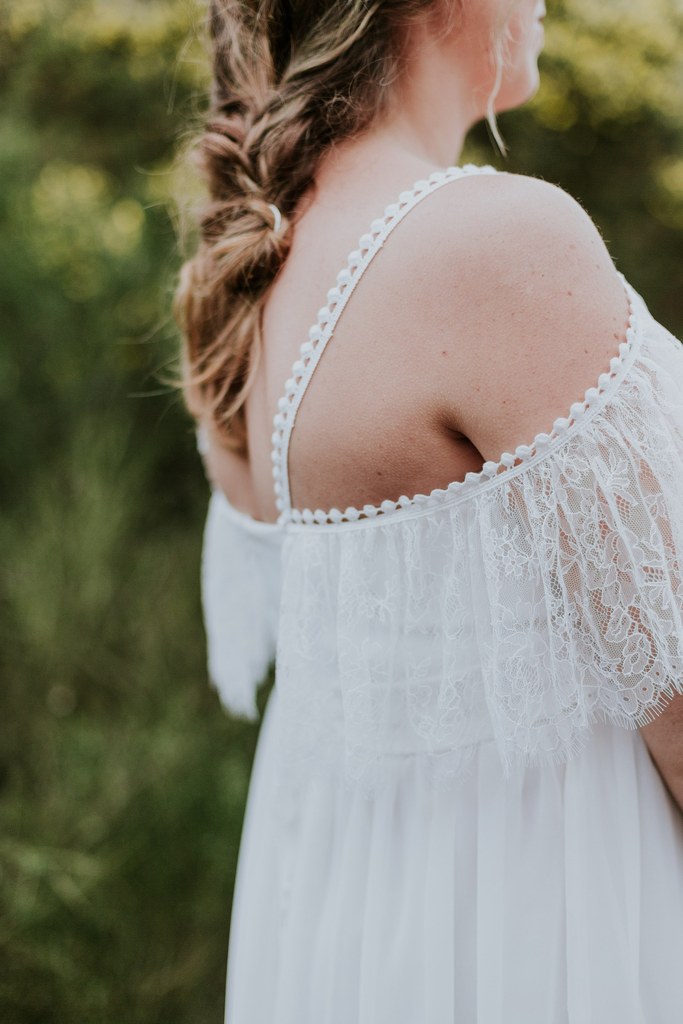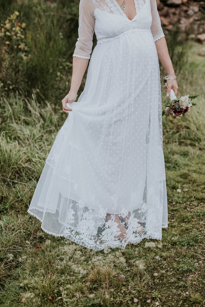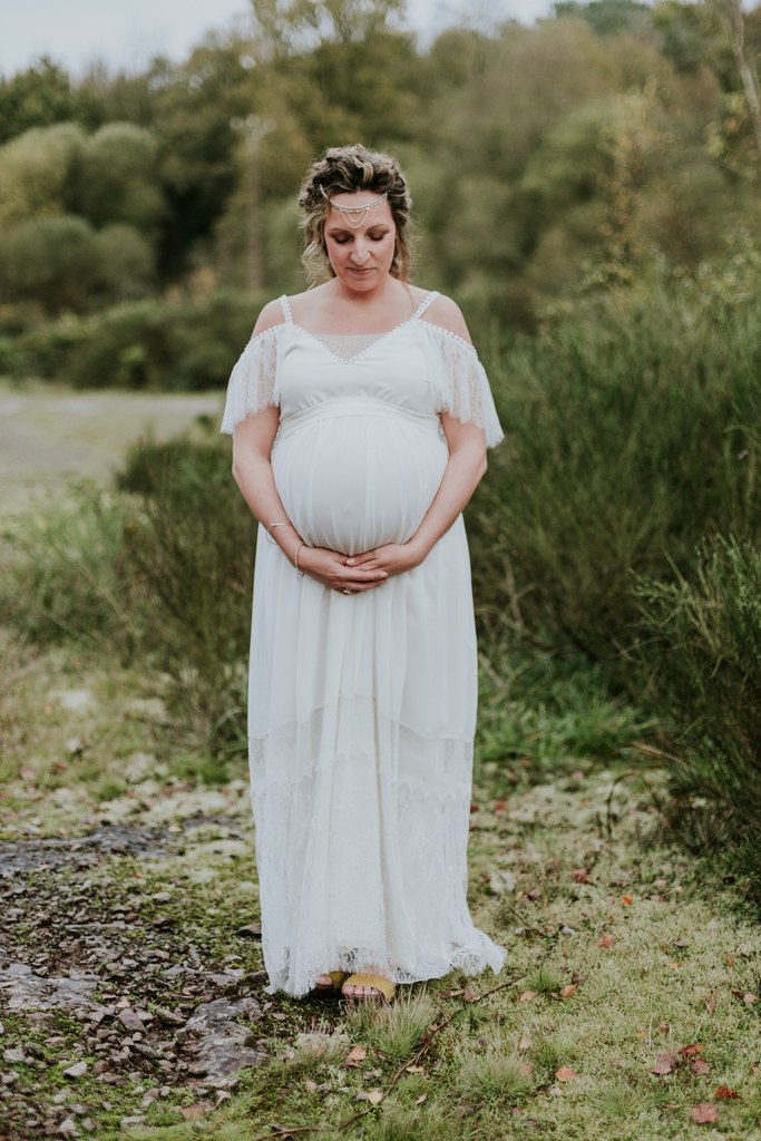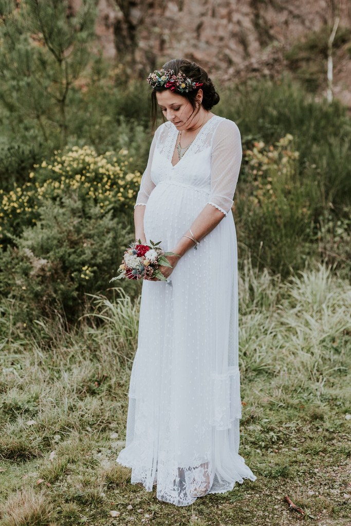 Ce shooting, c’est d’abord une rencontre, des projets communs, puis finalement une belle amitié entre Laetitia, photographe pour Les Histoires d’A et moi-même. Il y a quelques mois, j’apprends qu’un petit bonheur doit pointer le bout de son nez et c’est avec grande surprise que Laetitia m’annonce également la même bonne nouvelle. Un heureux hasard qui me donne une idée : depuis le temps que je rêve de proposer à mes futures clientes des robes de mariée pour les femmes enceintes, je me dis que c’est le moment ou jamais ! Je propose donc de réaliser un shooting « inspiration maternité hippie chic » à Laetitia. Avec enthousiasme, elle accepte de me suivre dans l’aventure et même de porter l’une de mes créations.